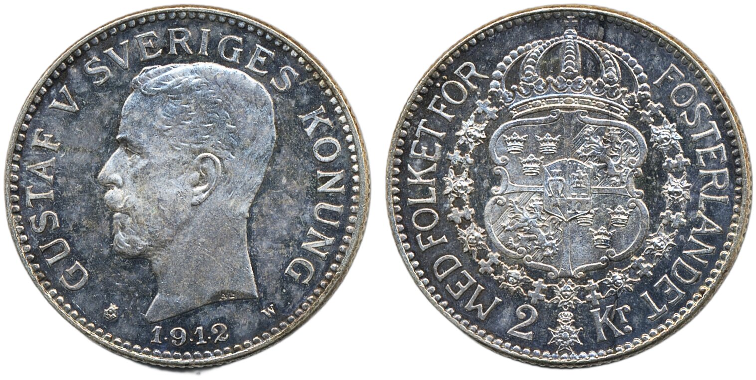 Coins, Sweden. Gustav V, MIS I.3, 2 kronor 1912. 1+/01.