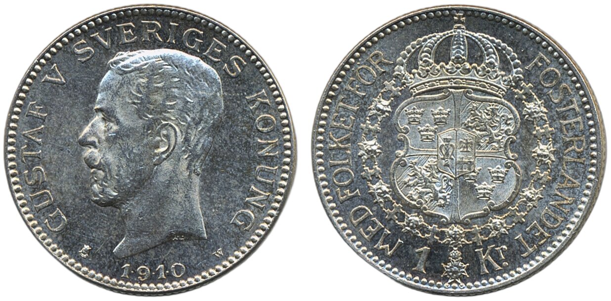 Coins, Sweden. Gustav V, MIS I.1, 1 krona 1910. 01.