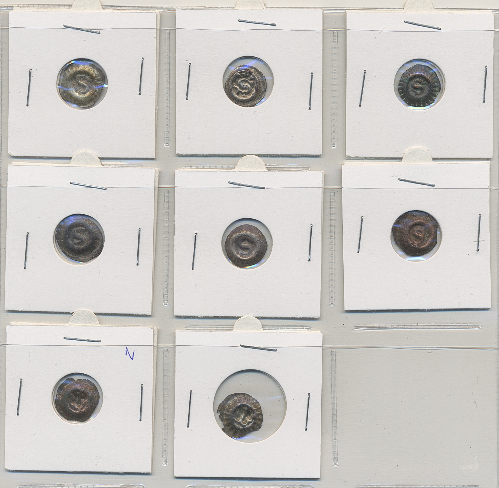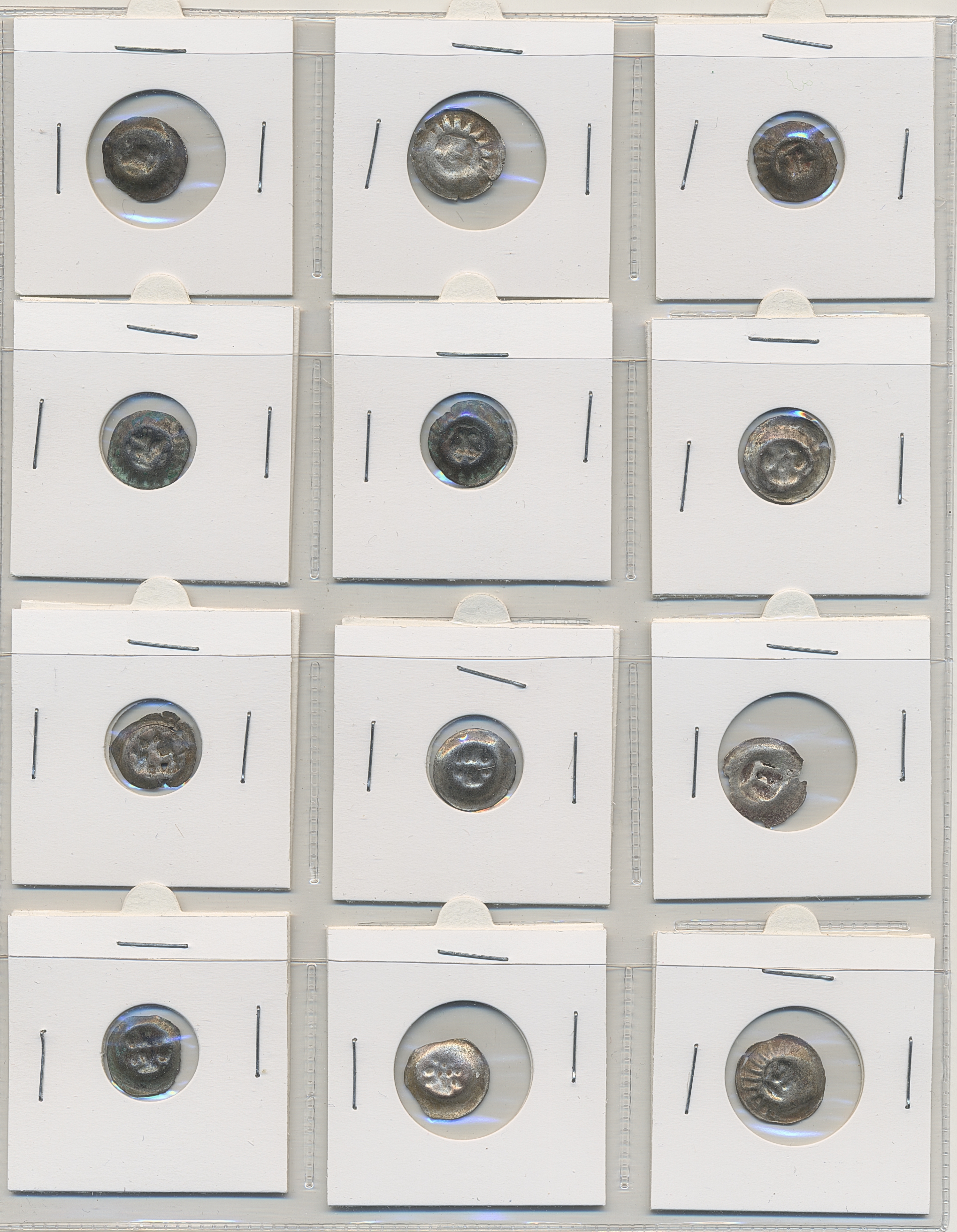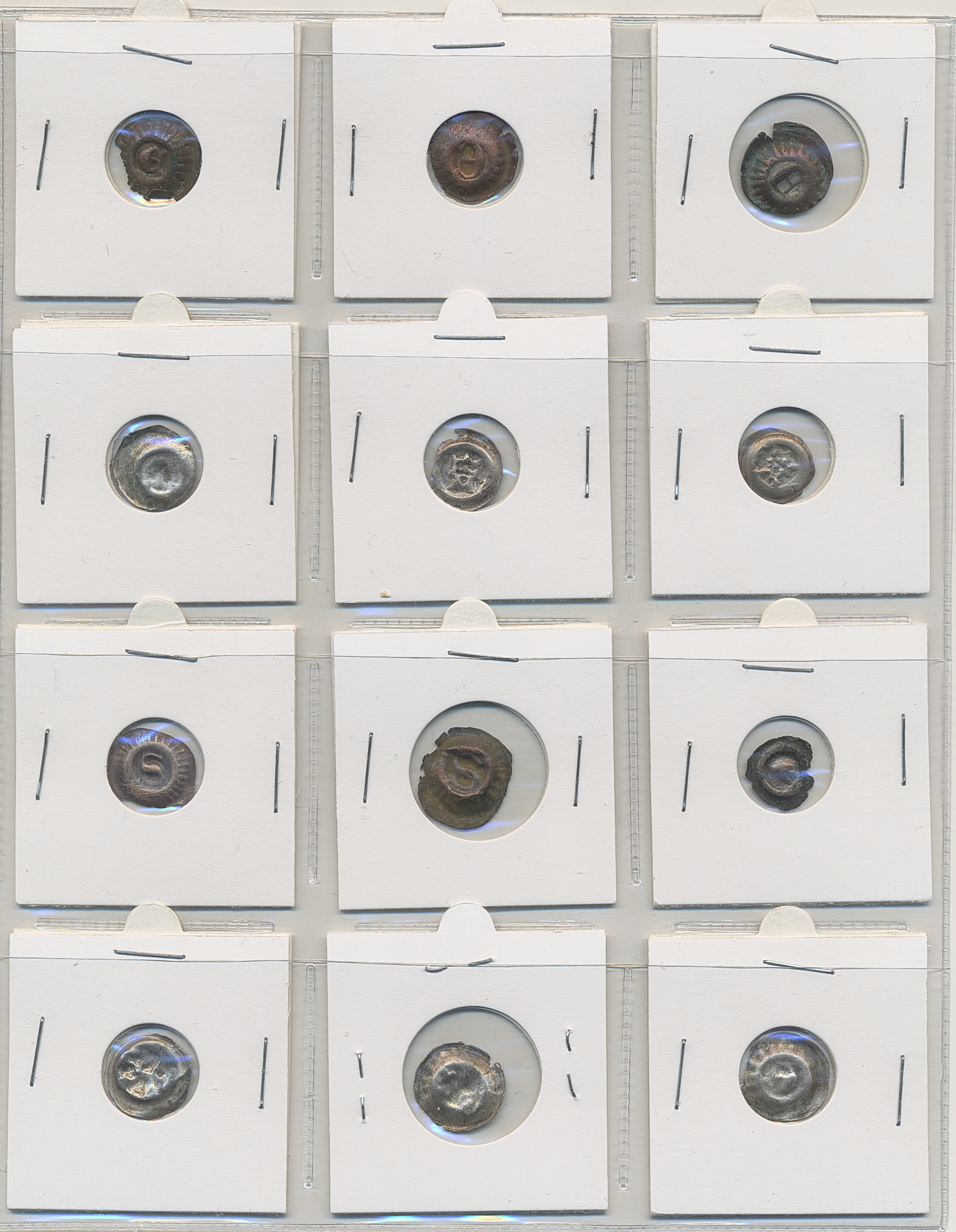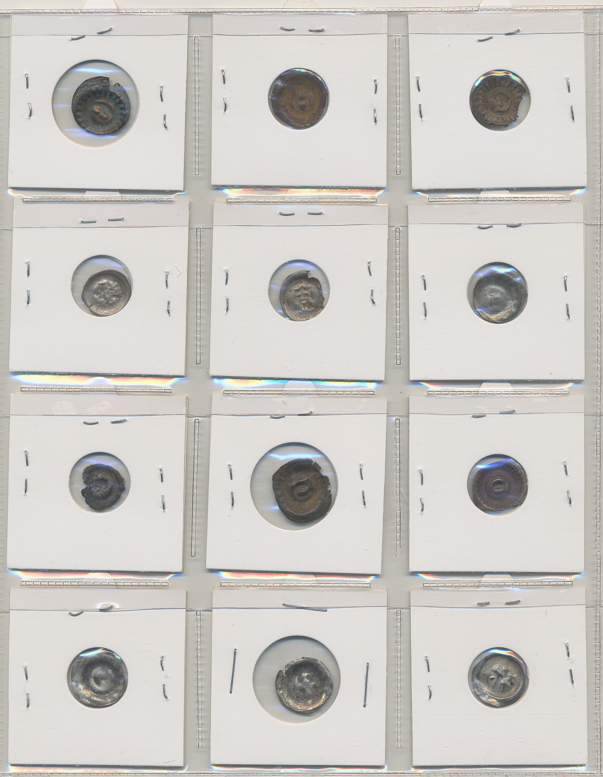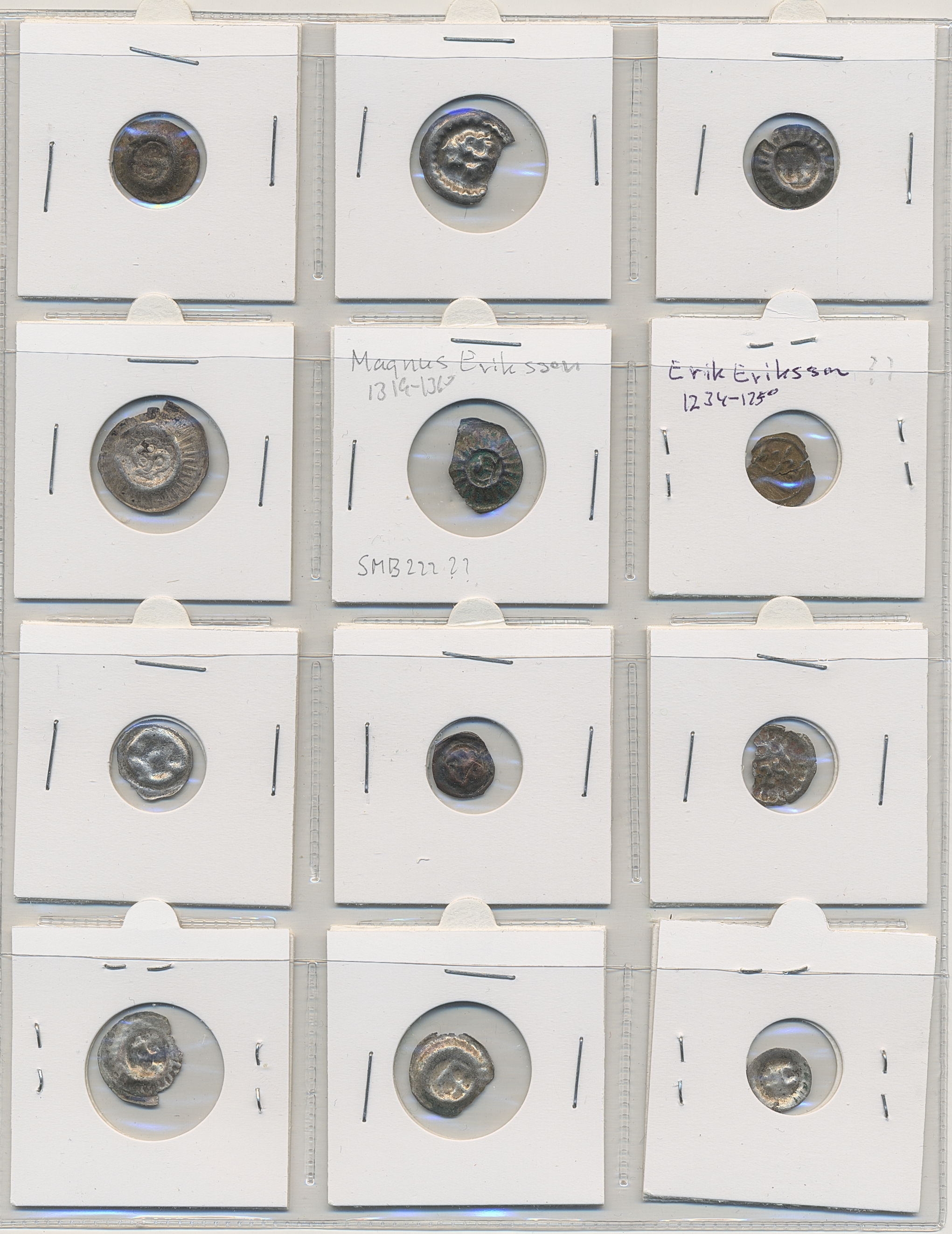 Coins, Sweden. Group of mostly Swedish bracteates 1200s–1400s in album. Many have damages or are hard to identify. A couple of items may be of foreign origin. In total 56 pcs. Please inspect! 2-1+.
