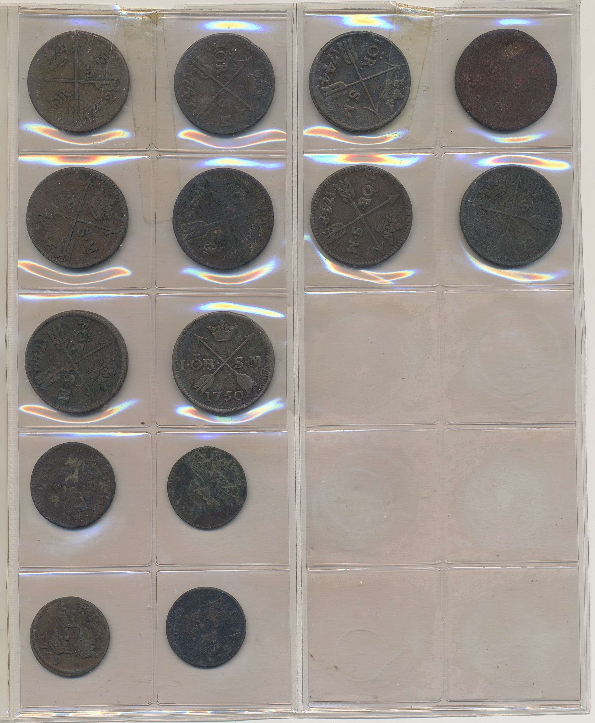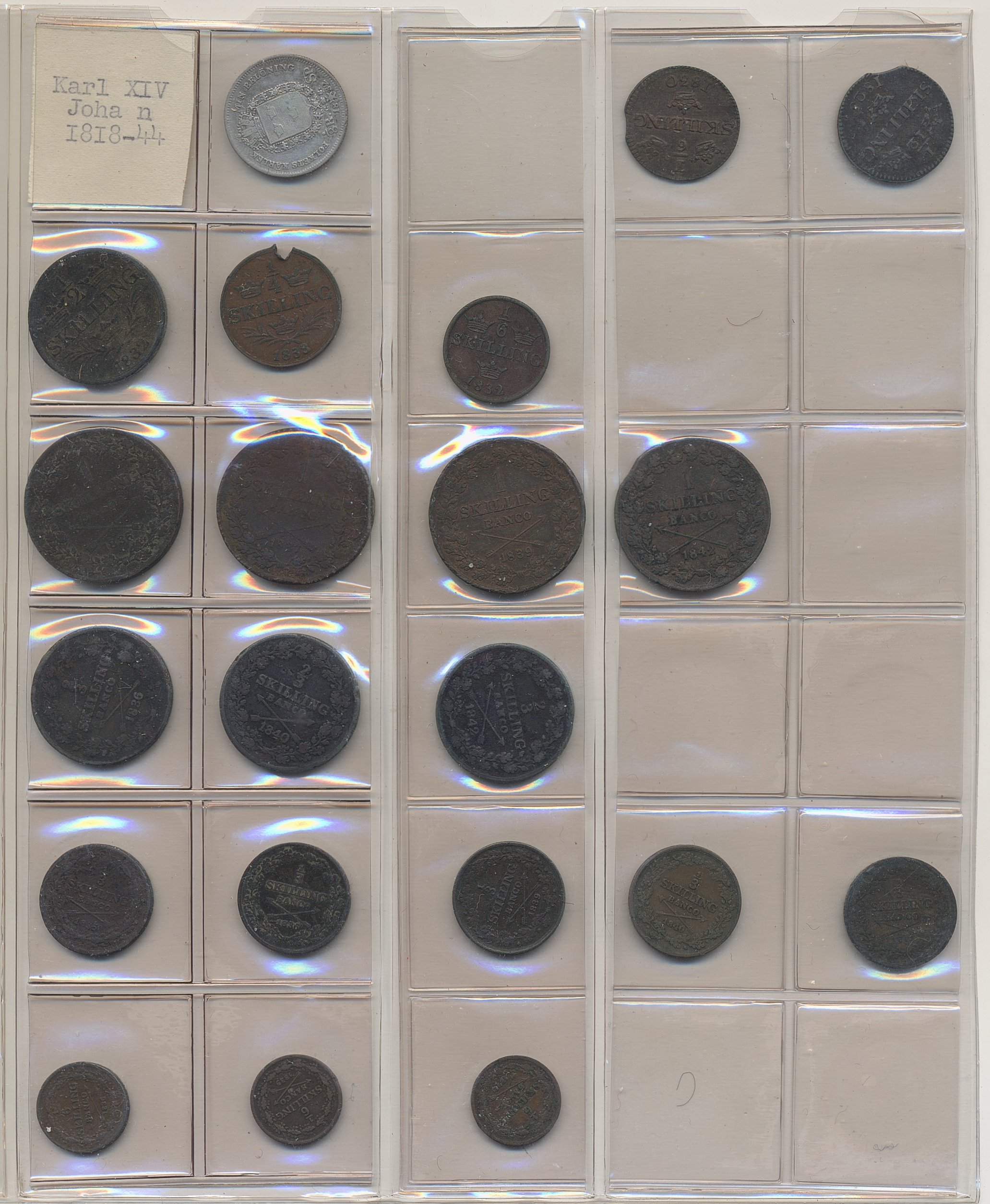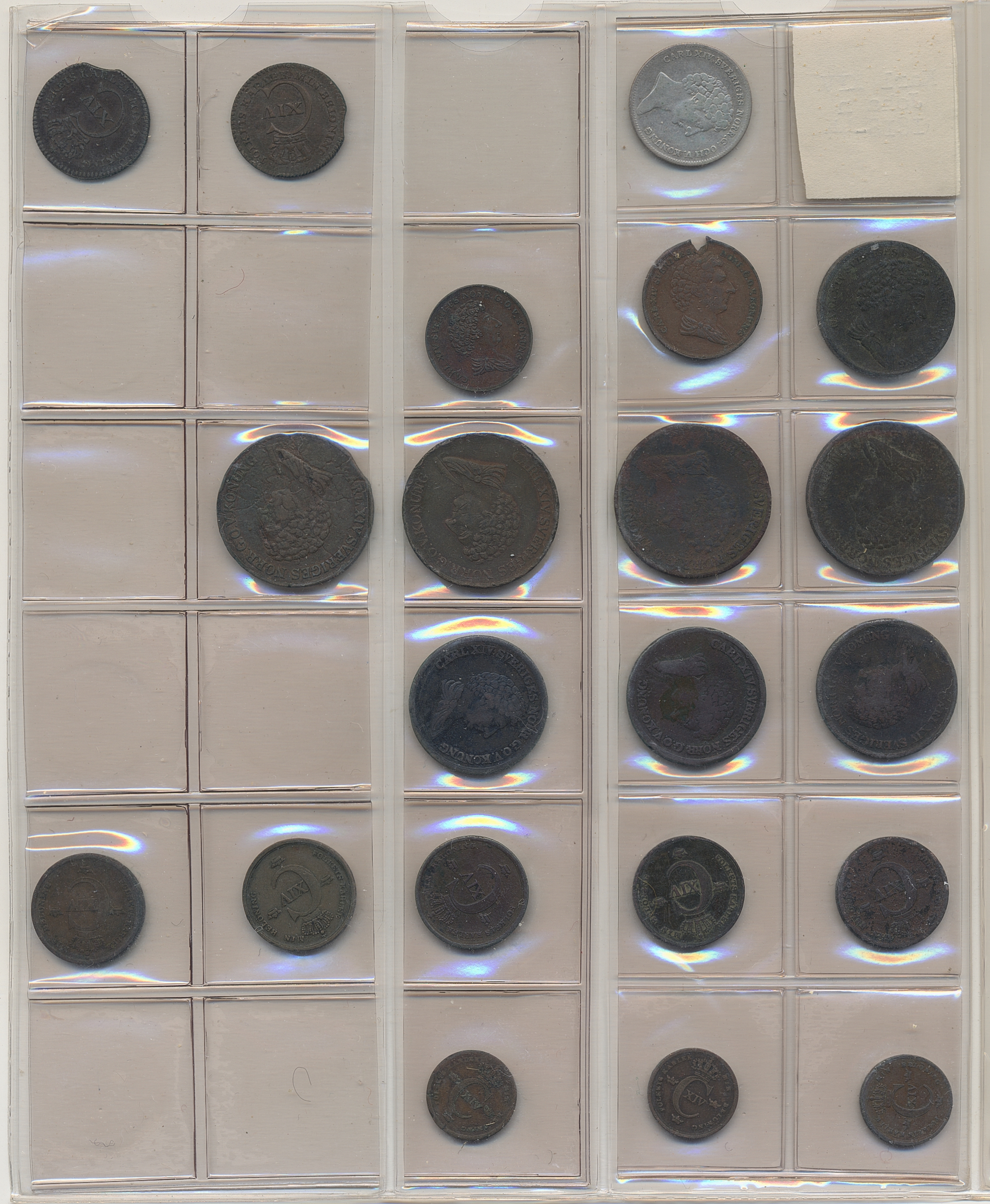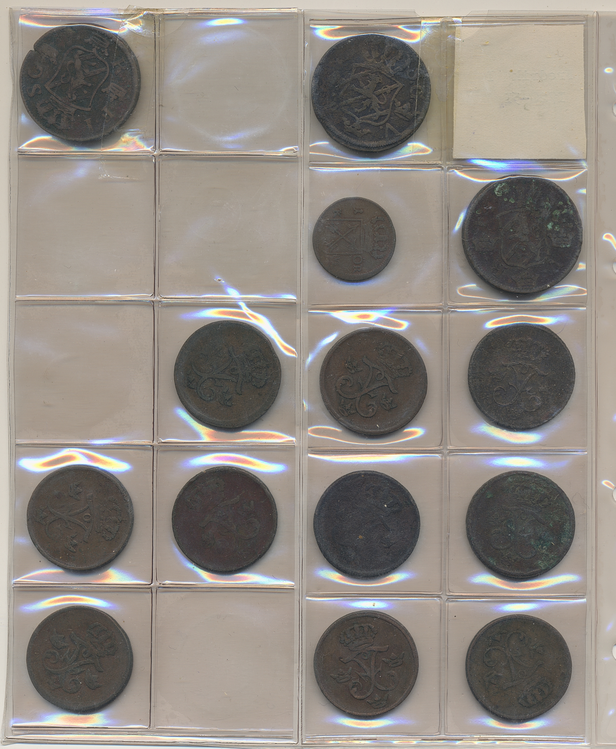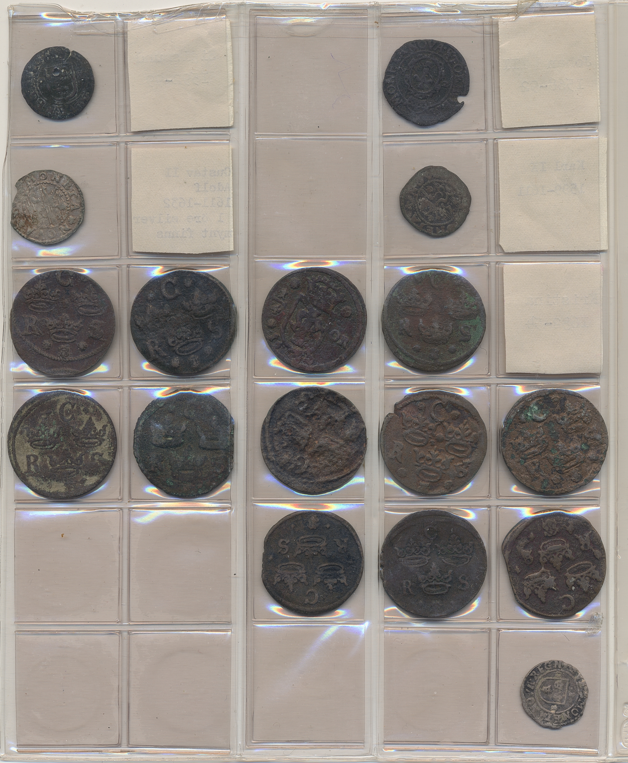 Coins, Sweden. Collection of mostly copper coins (but also some small denomination silvers) in album from Johan III to Carl XV. Please inspect! 2-1+.