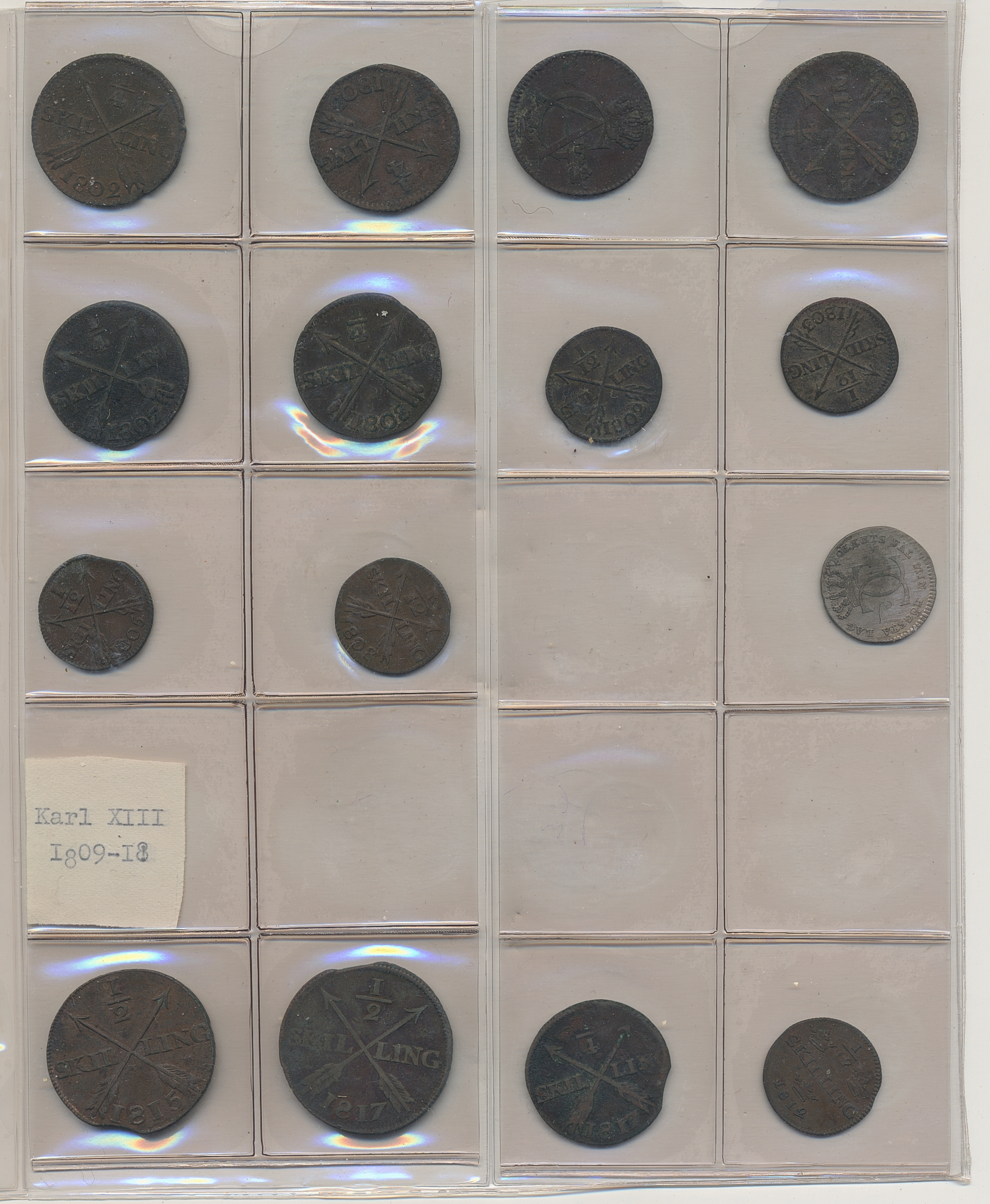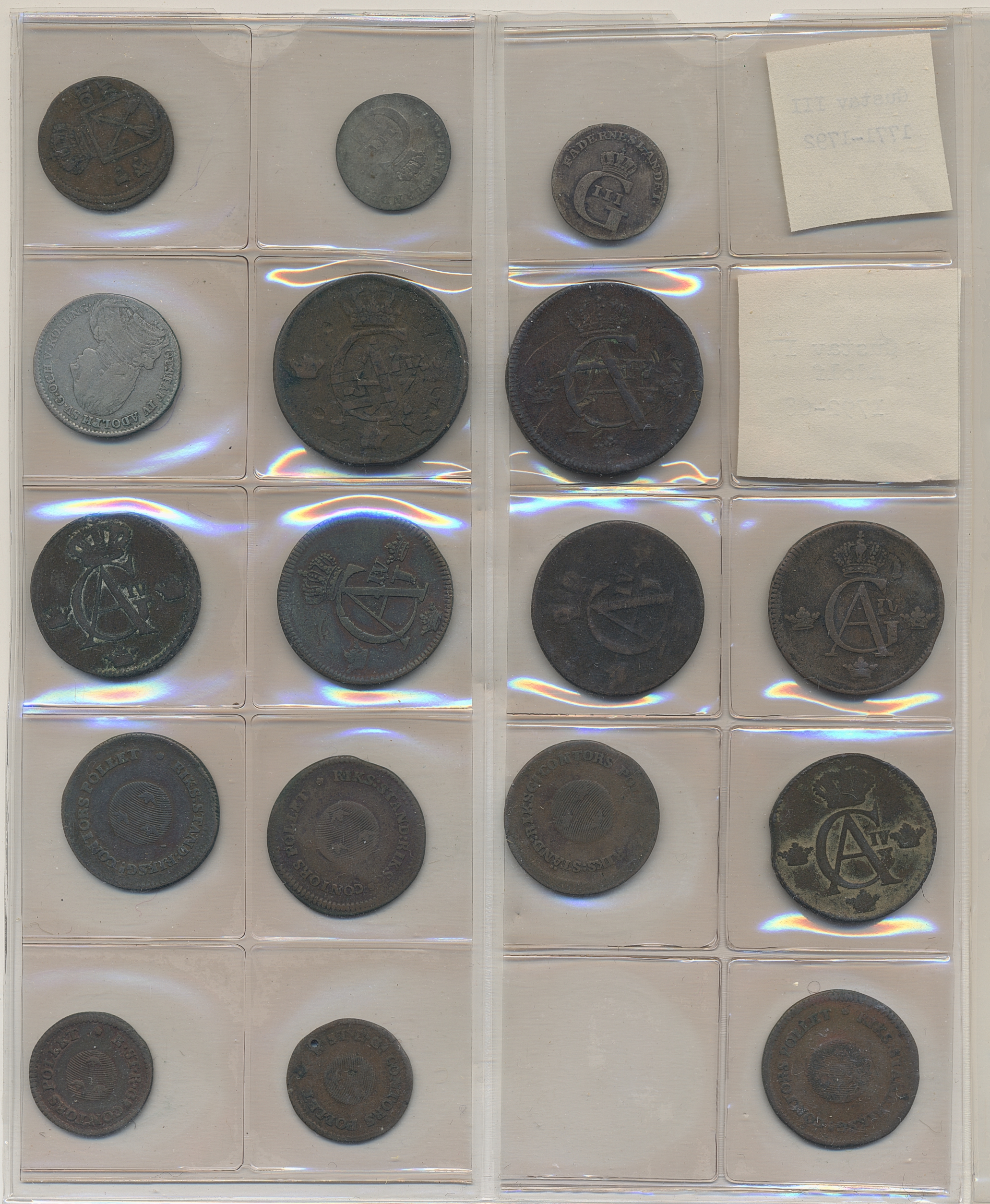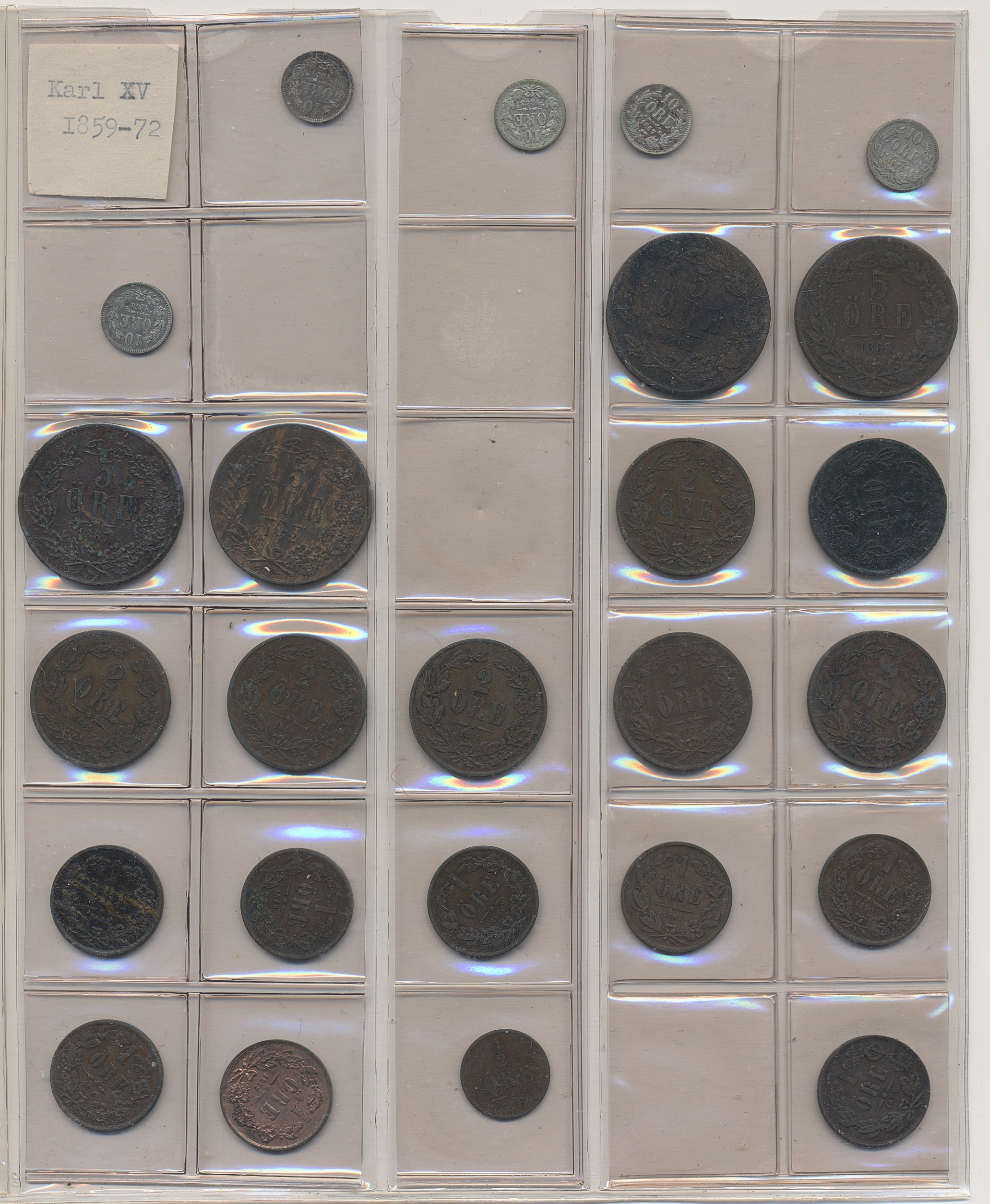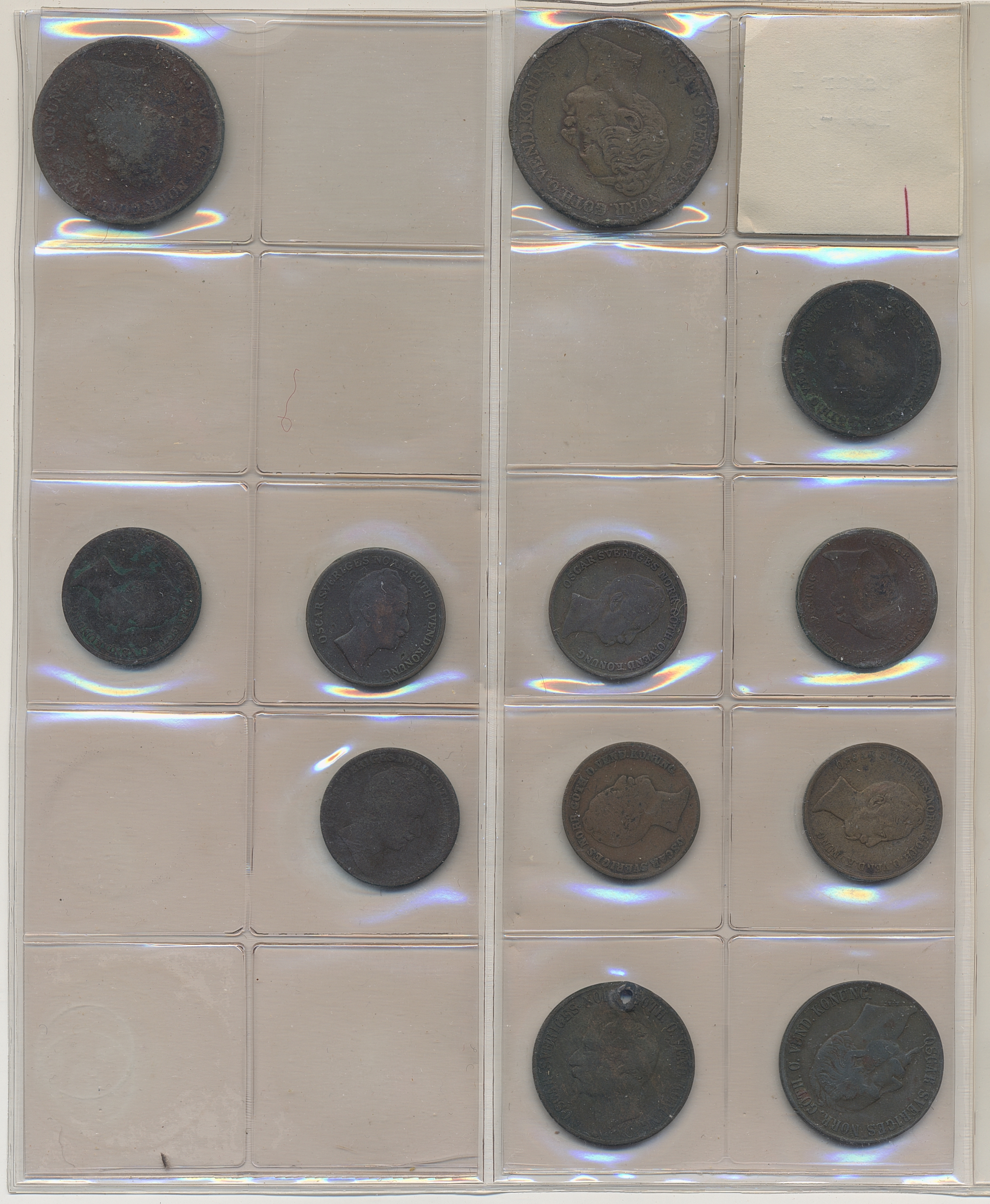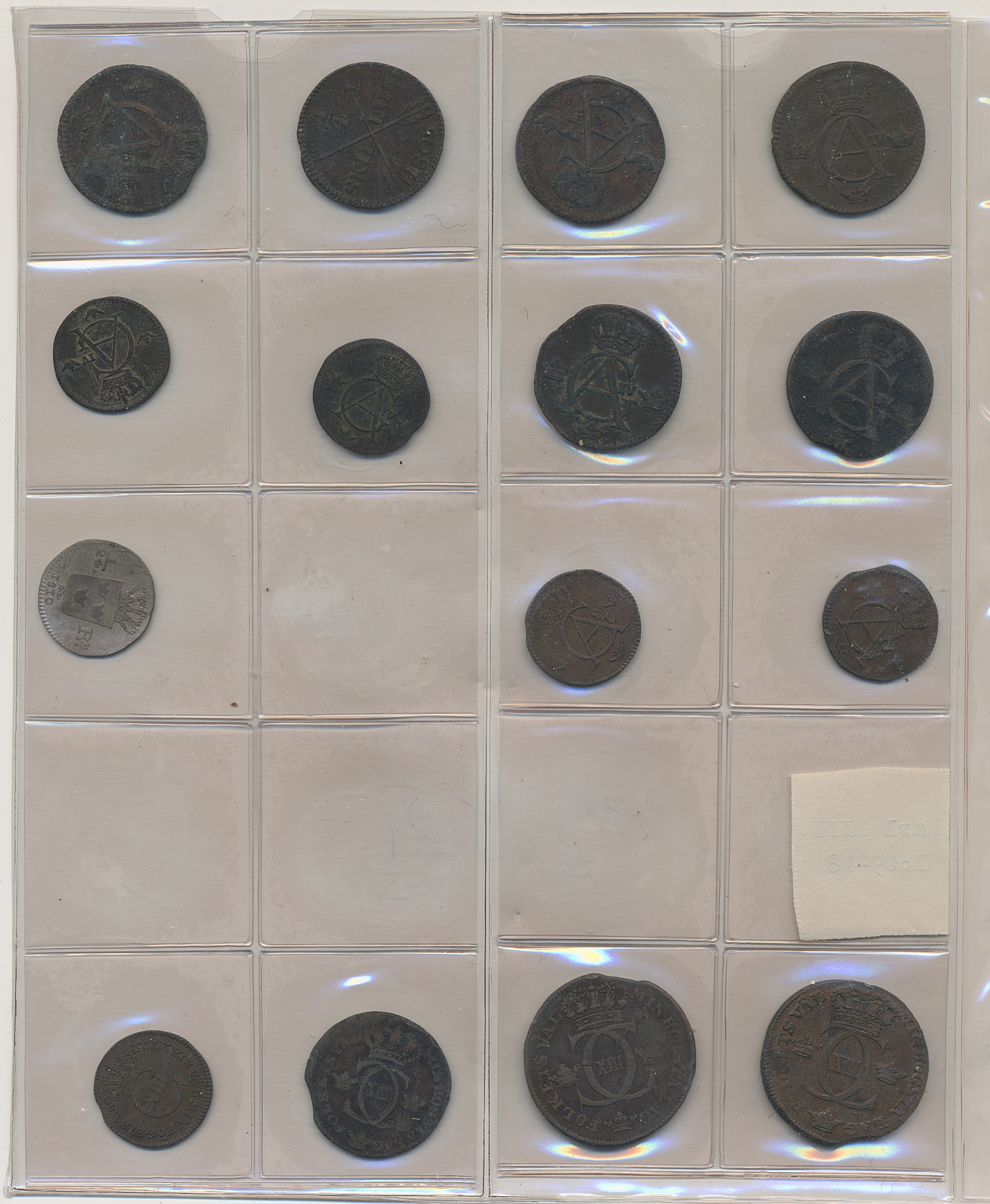 Coins, Sweden. Collection of mostly copper coins (but also some small denomination silvers) in album from Johan III to Carl XV. Please inspect! 2-1+.