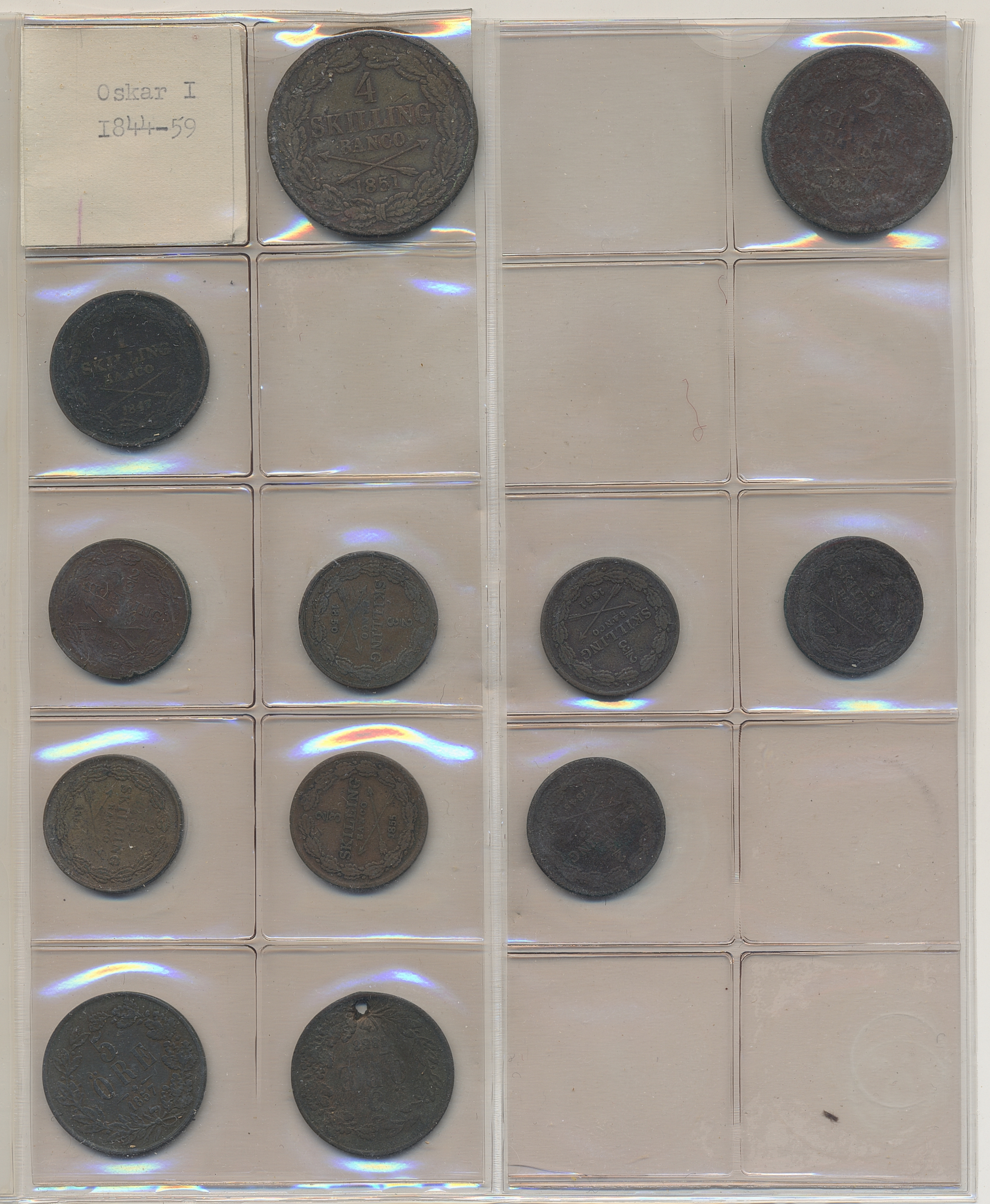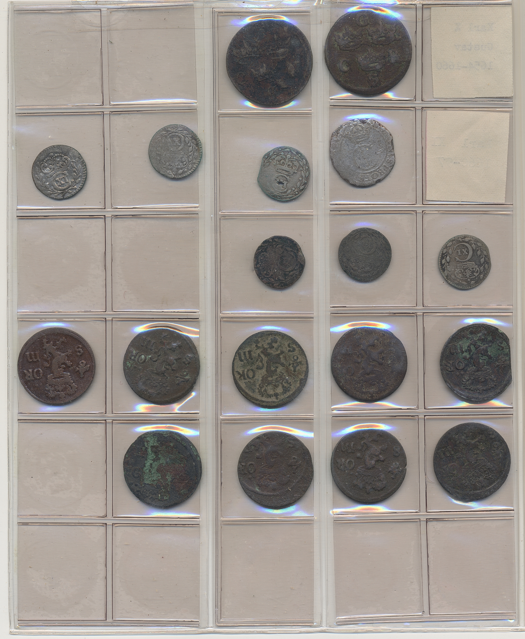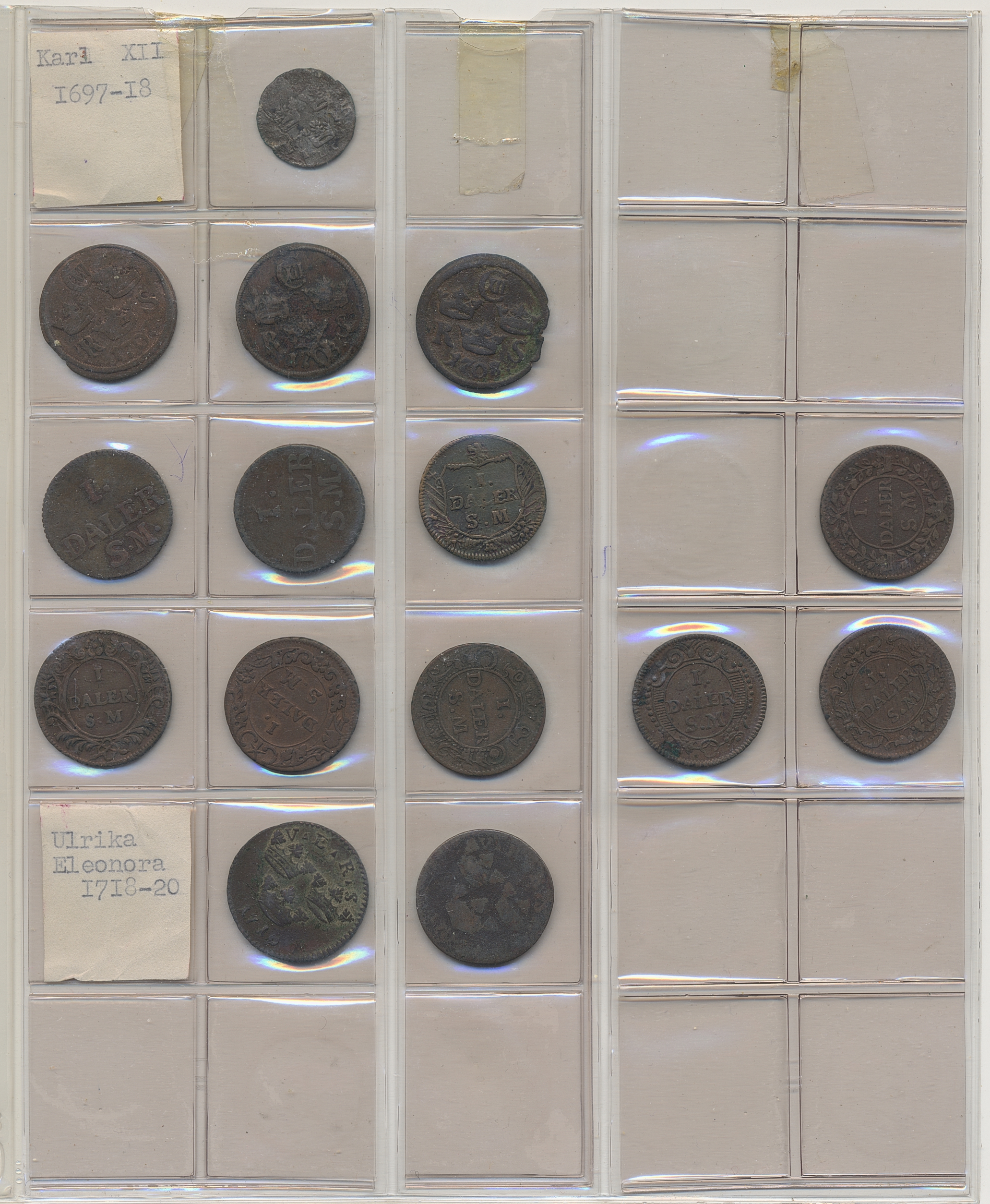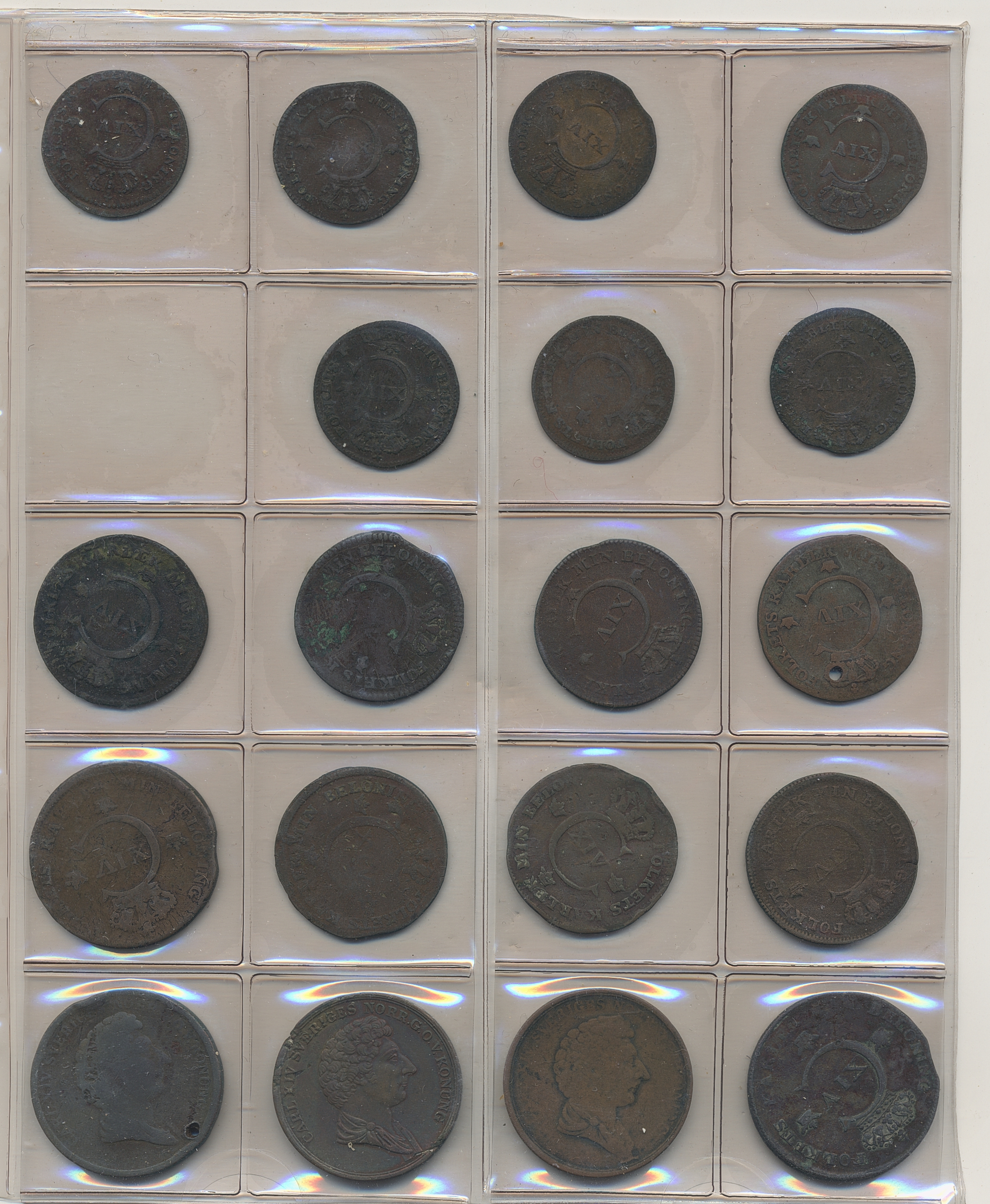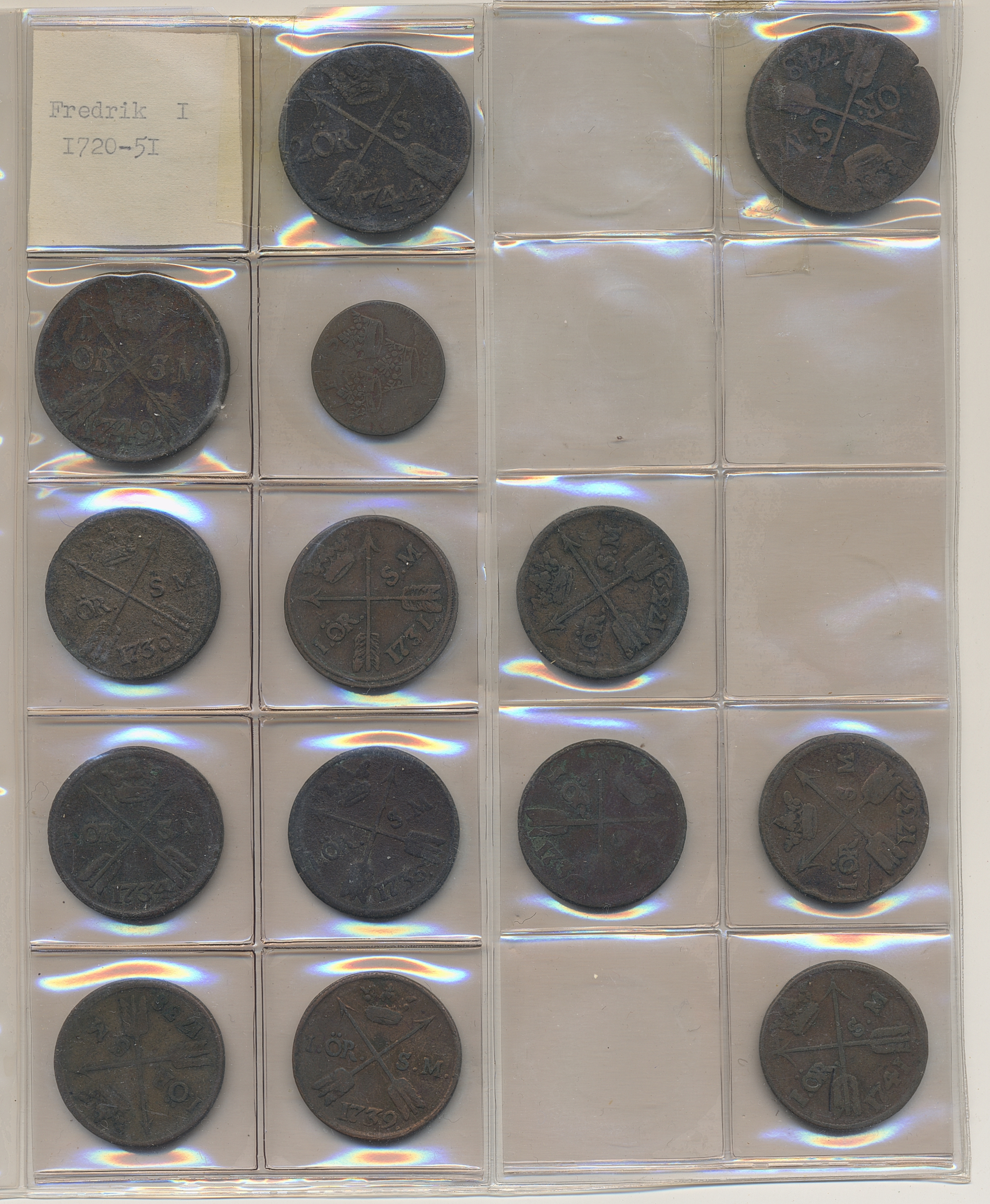 Coins, Sweden. Collection of mostly copper coins (but also some small denomination silvers) in album from Johan III to Carl XV. Please inspect! 2-1+.