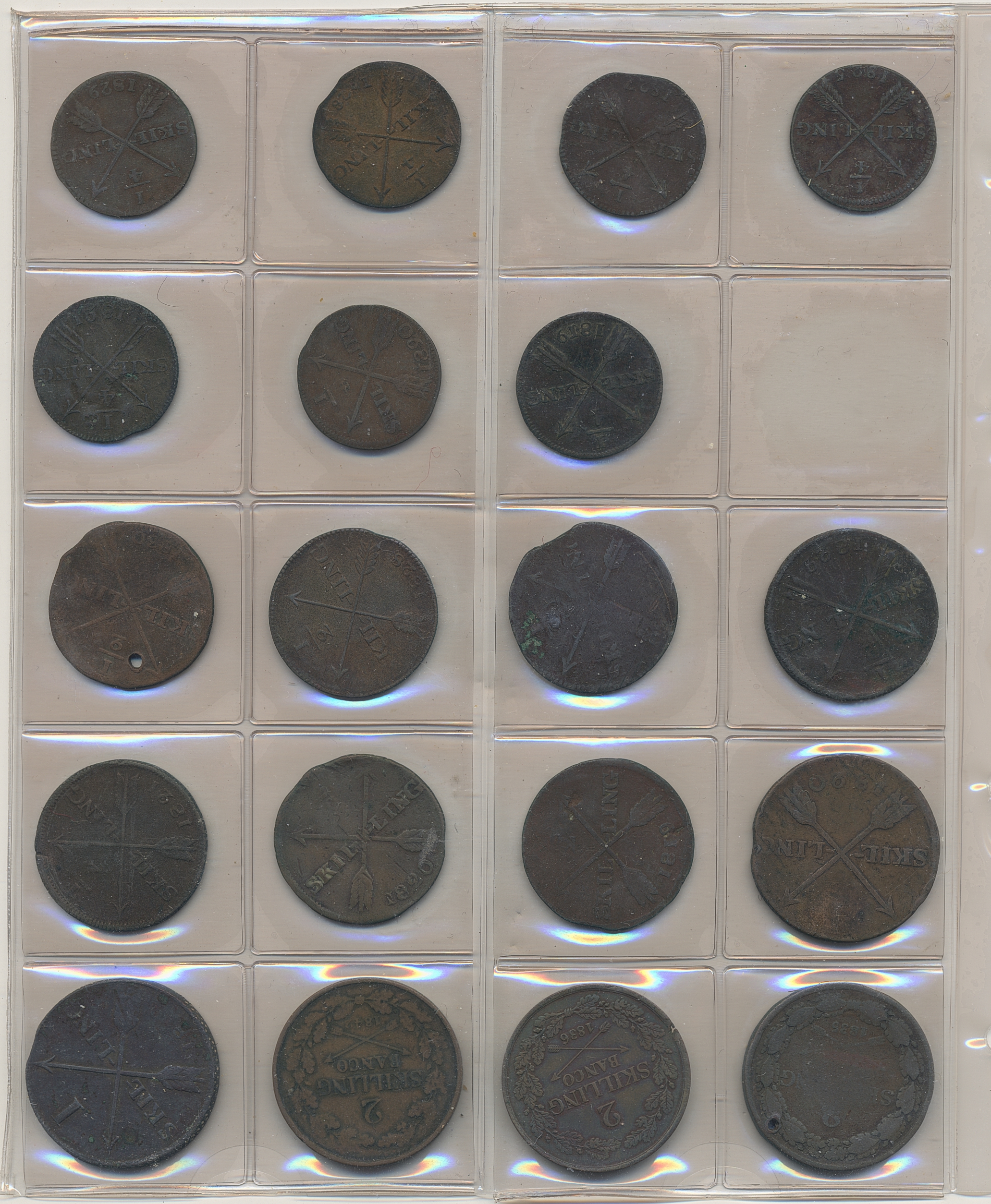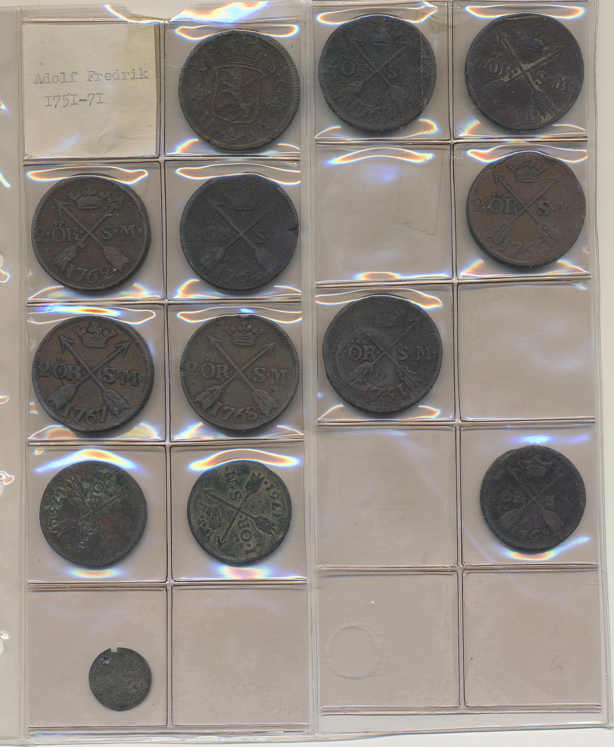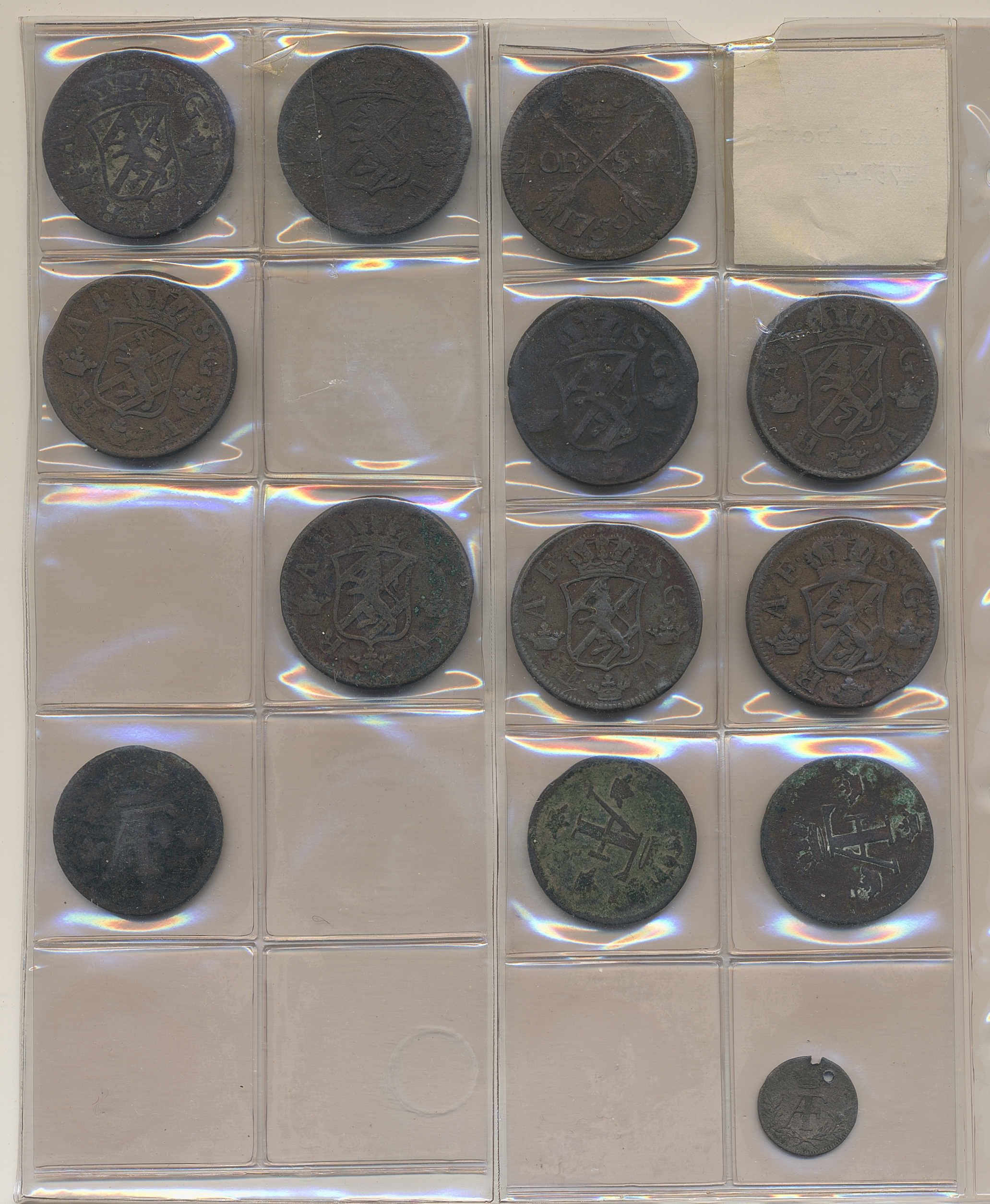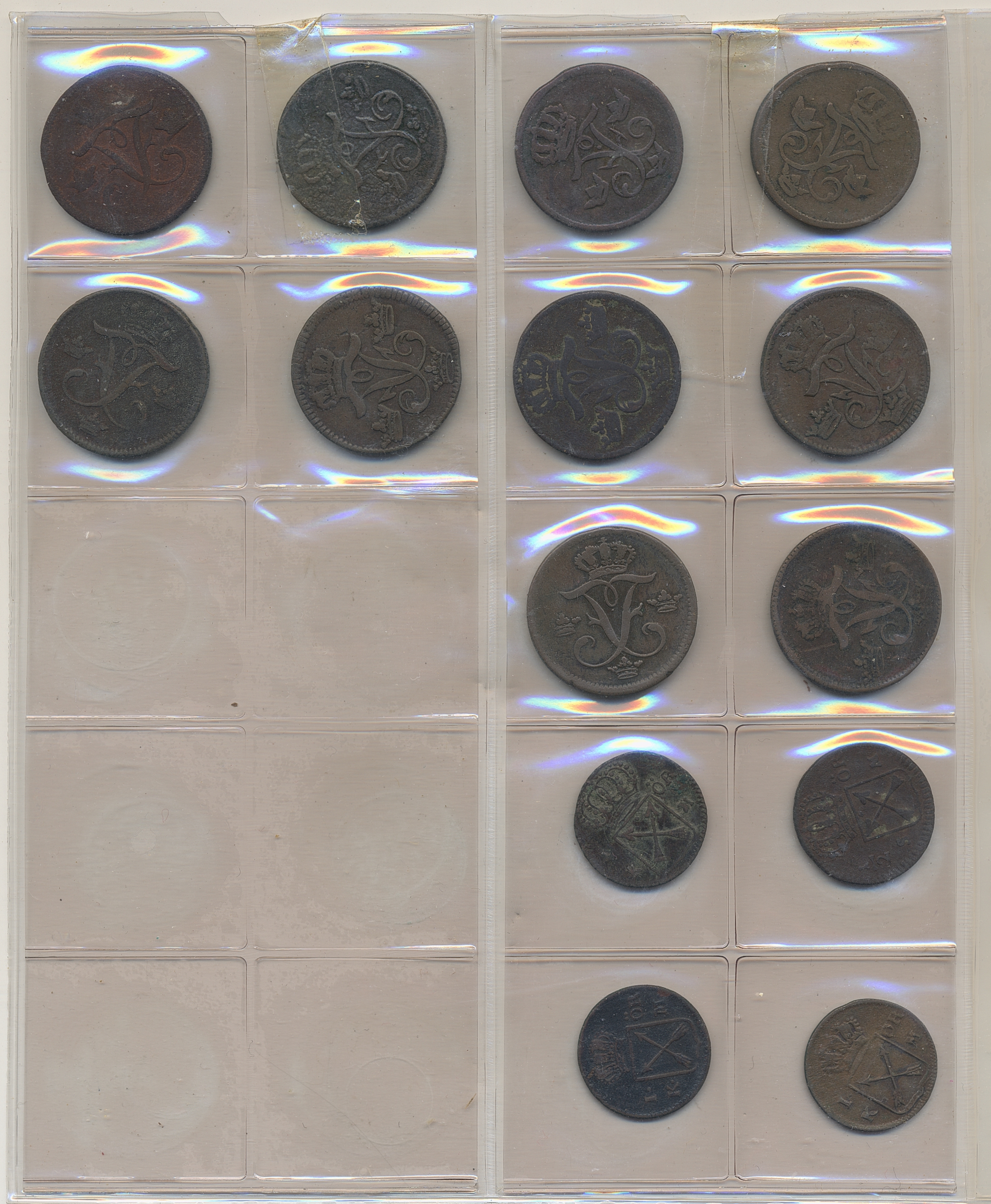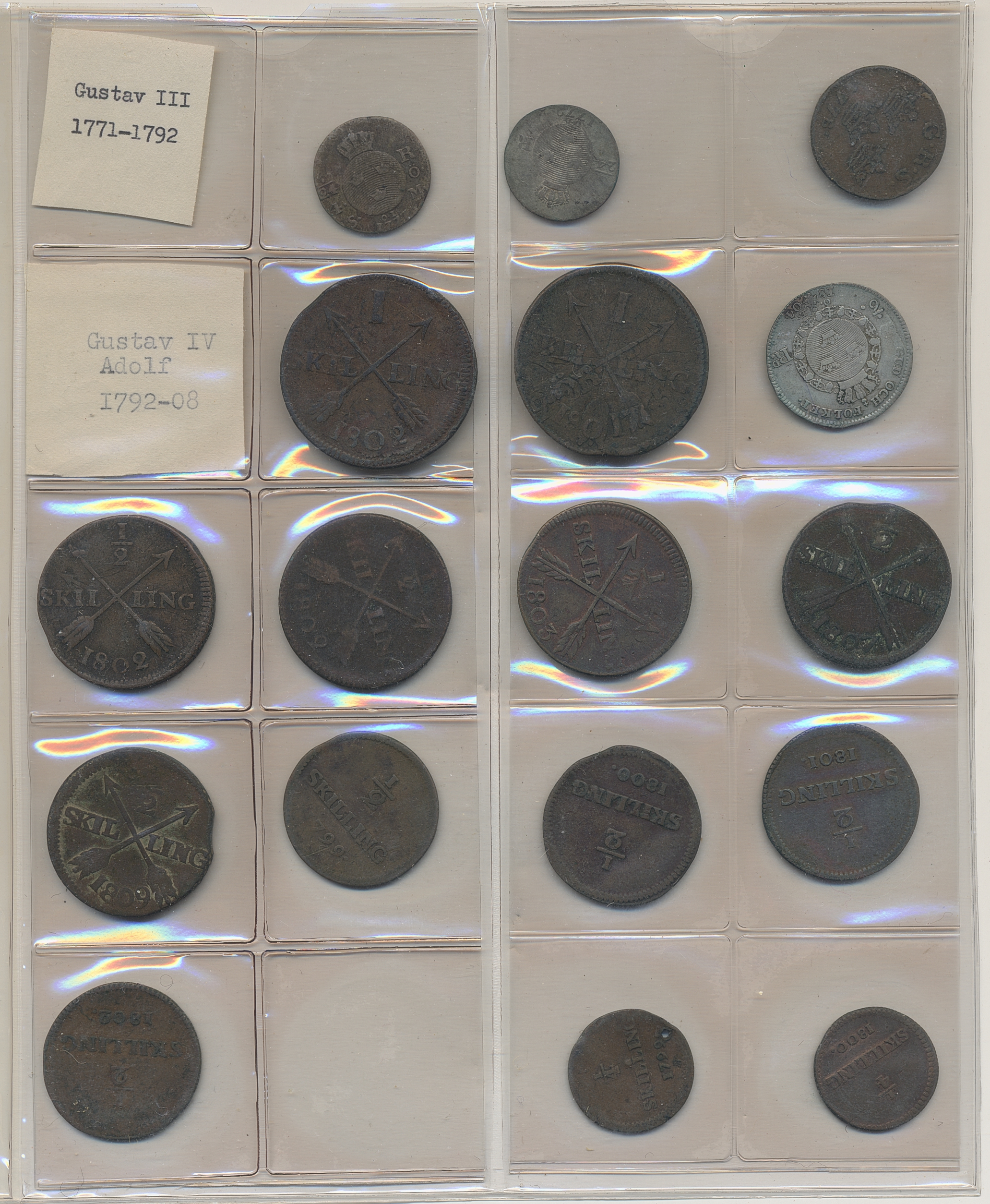 Coins, Sweden. Collection of mostly copper coins (but also some small denomination silvers) in album from Johan III to Carl XV. Please inspect! 2-1+.