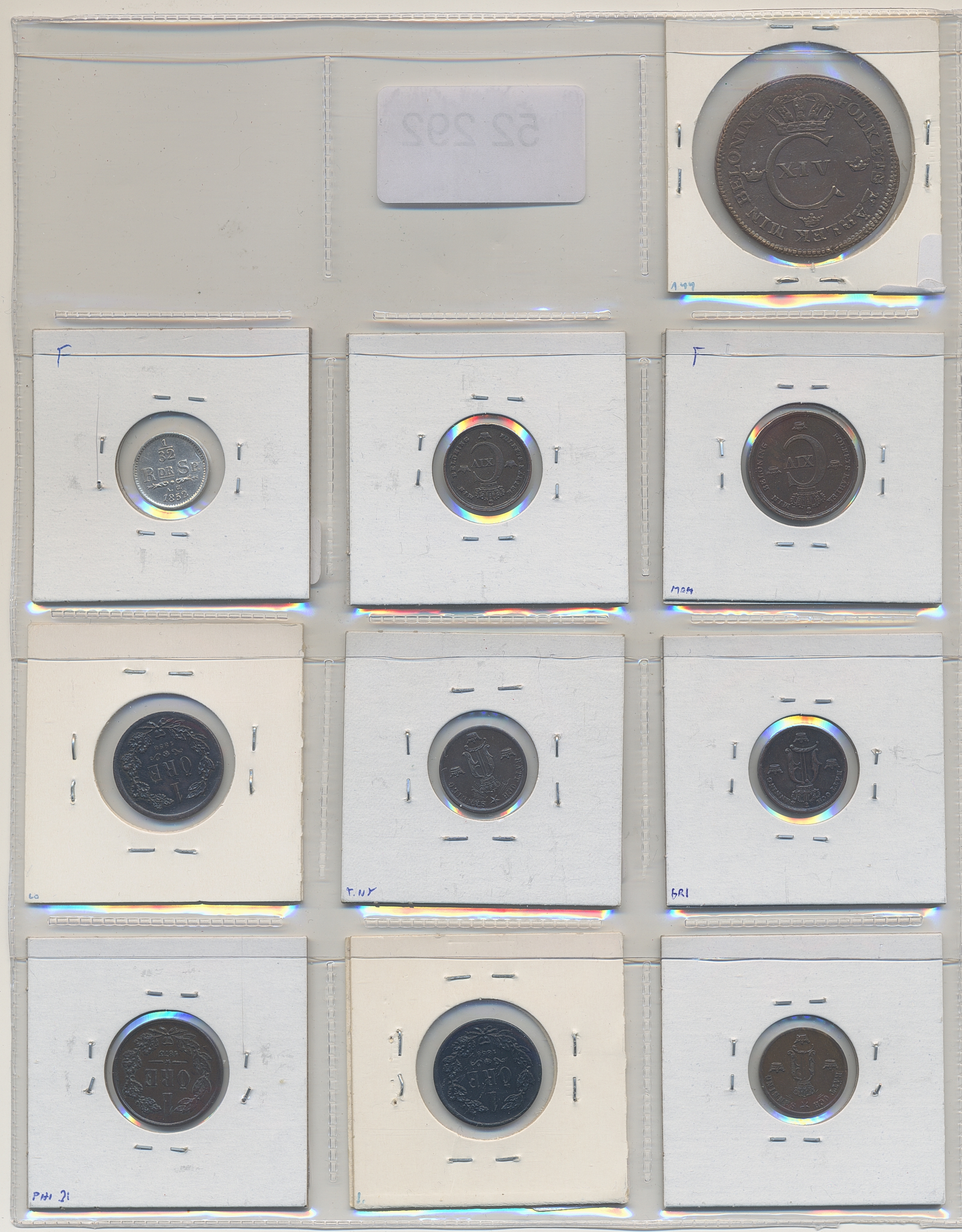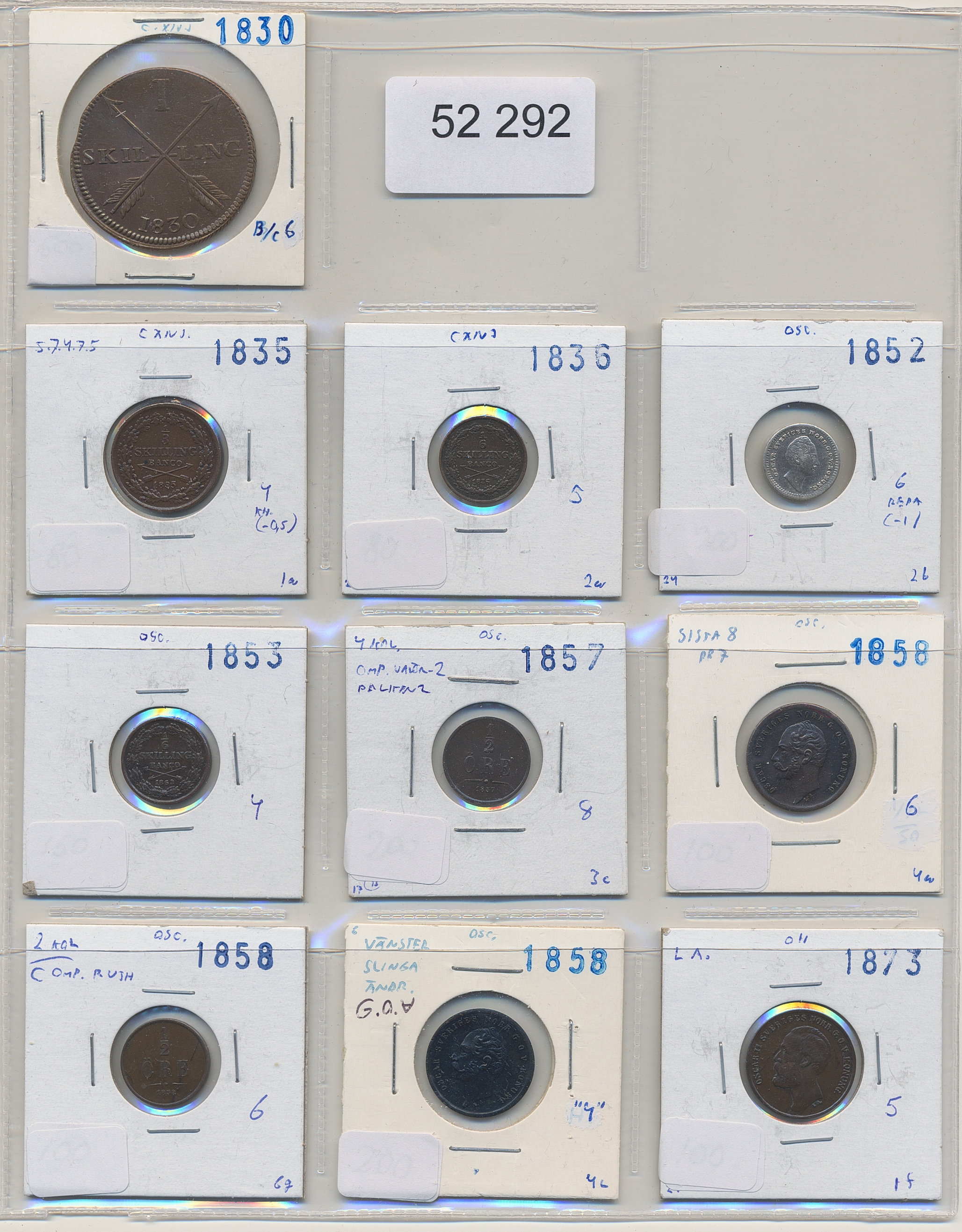 Coins, Sweden. Ten coins in silver and bronze, 1830–1873, high but mixed quality.