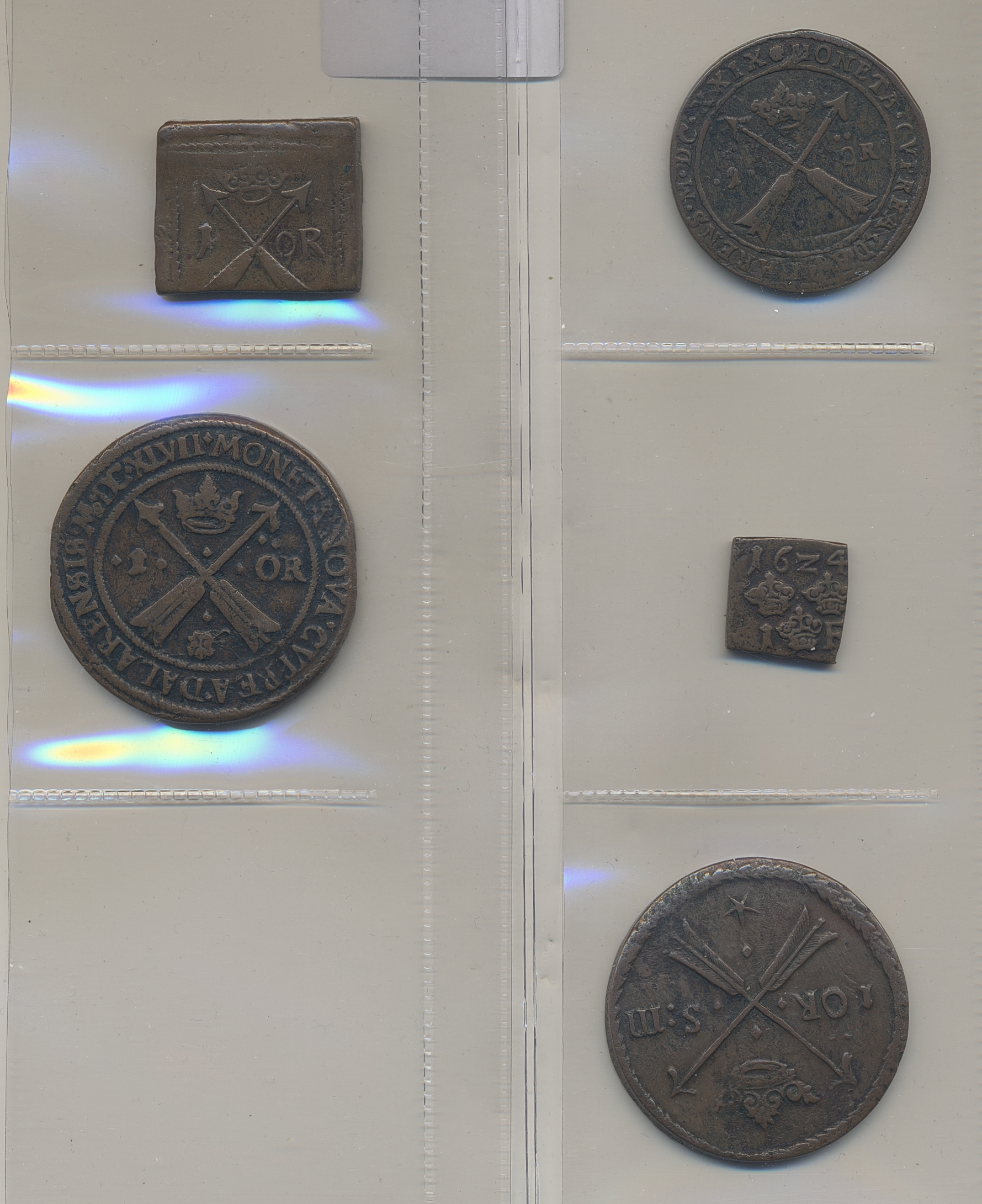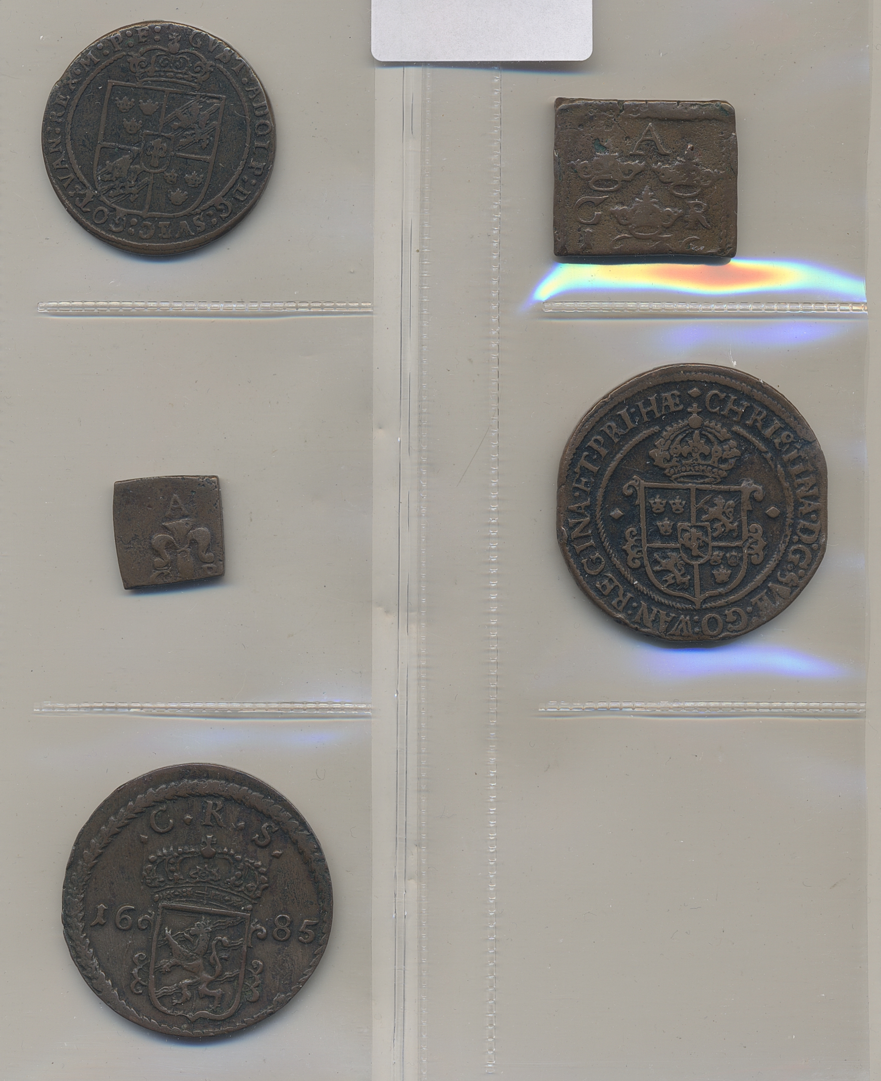 Coins, Sweden. Lot. G II A - K XI. Five copper coins. The entire lot is presented at www.philea.se.