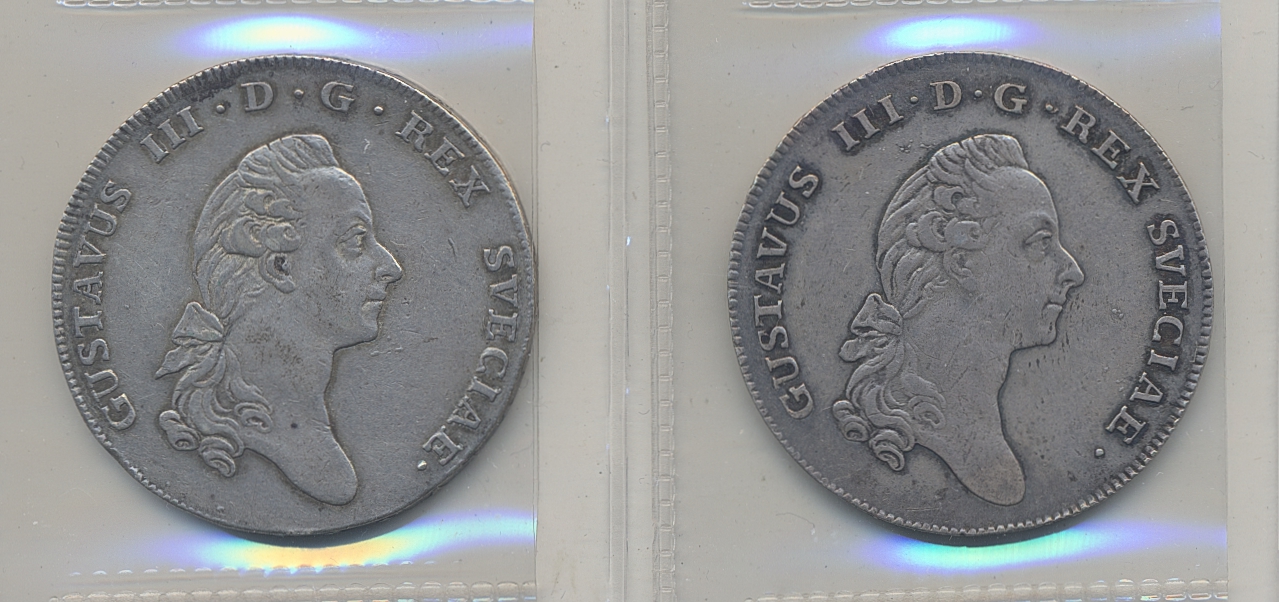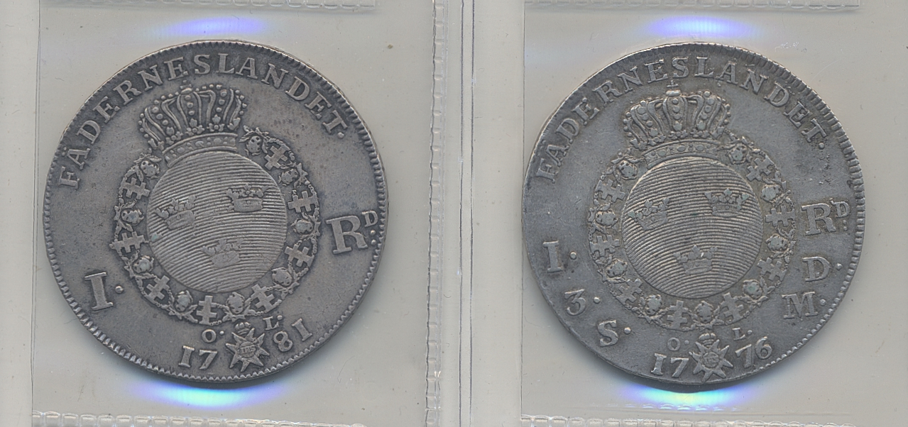 Coins, Sweden. SM 43, 47a, Lot. 1 riksdaler 1776 and 1781 (cleaned). 1.