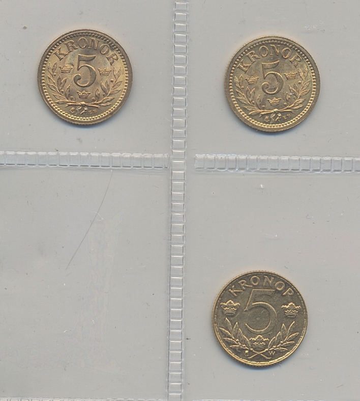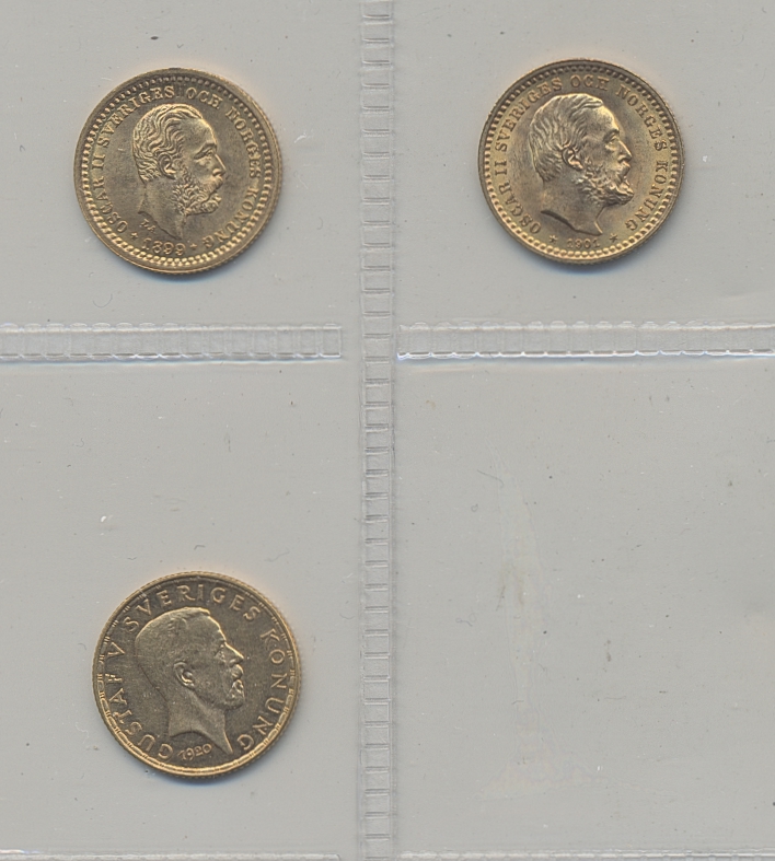 Coins, Sweden. MIS I.6, IIb, I, Lot. 5 kronor 1899, 1901 and 1920.