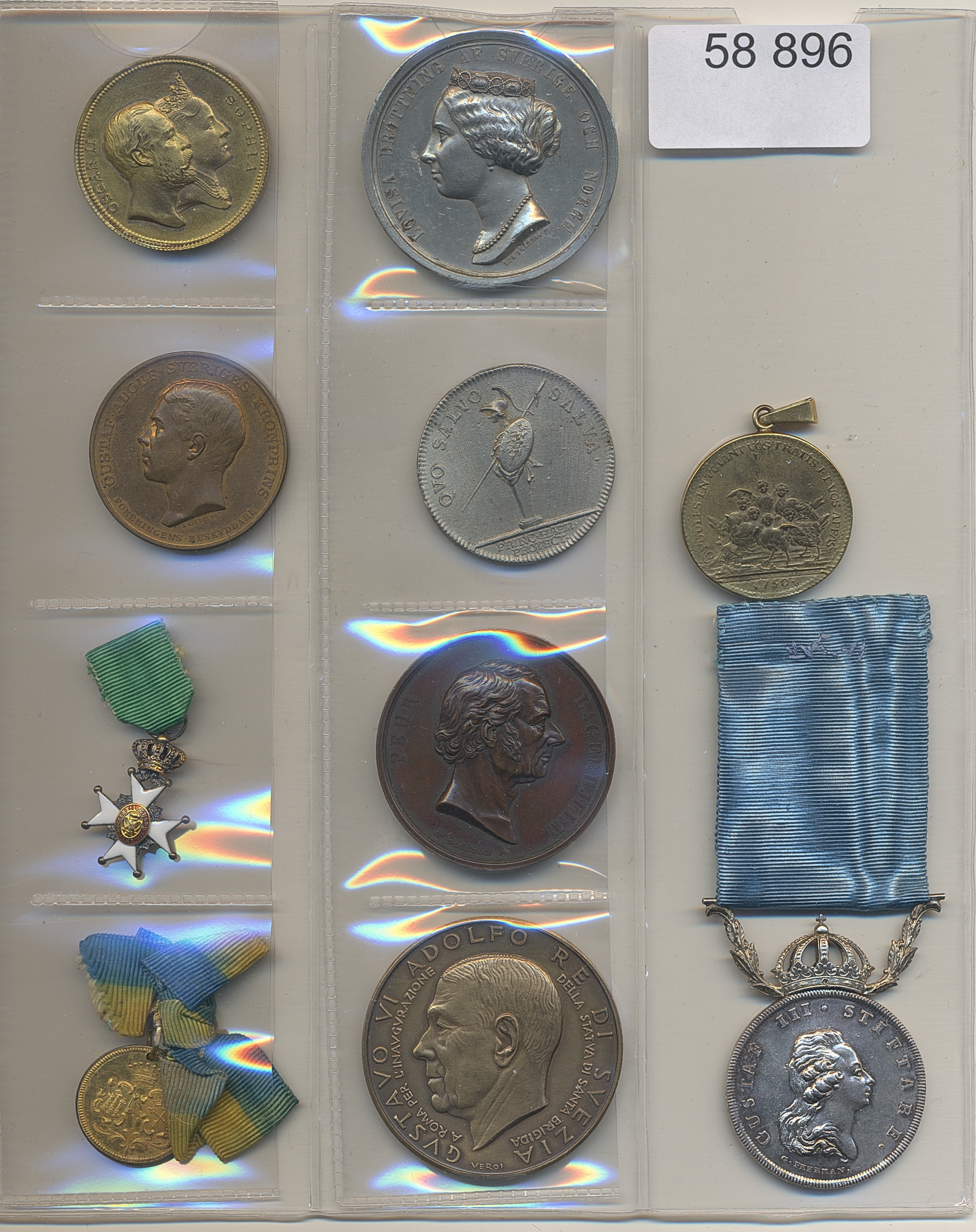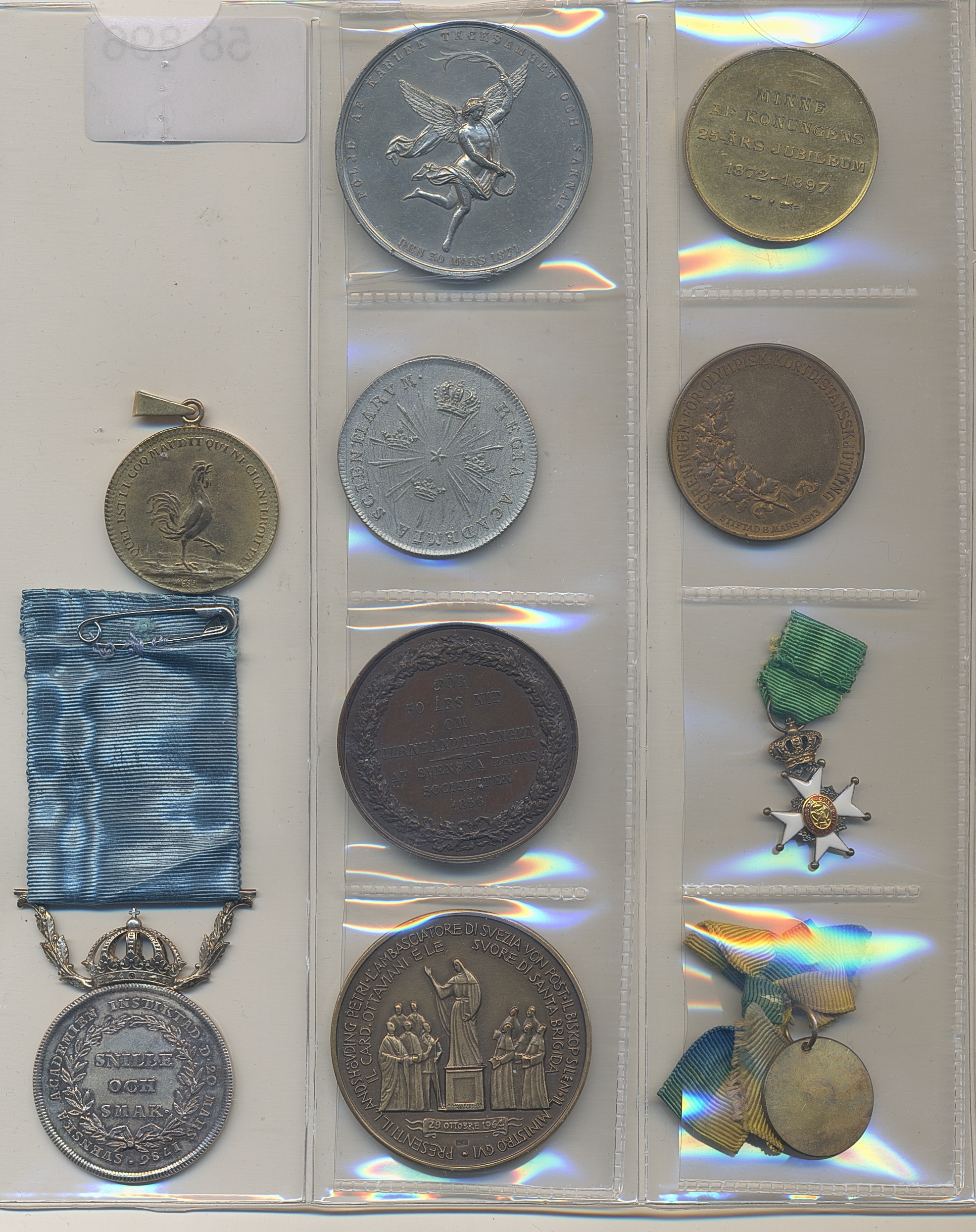 Medals, regal, Sweden. Lot. Nine medals in bronze, silver and tin, e.g. Föreningen för olympisk kortdistansskjutning + Vasaorden (miniature). The entire lot is presented at www.philea.se.