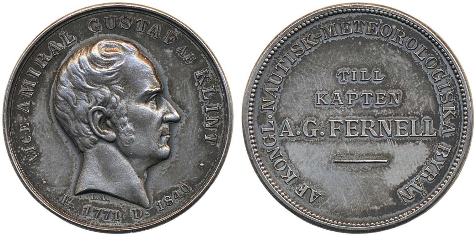 Medals, non-regal, Sweden. Gustaf af Klint (1771–1840). Vice admiral. Medal in silver, 31 mm, 14.9 g. Ex. Sven Svensson 11544. Nice patina! 01.