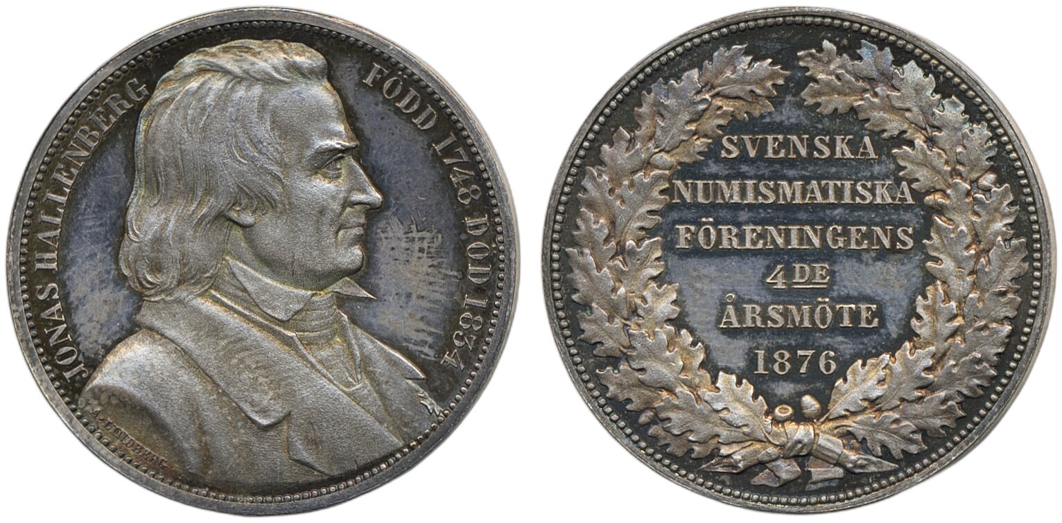 Medals, non-regal, Sweden. 1876. 12.91 g silver, Hallenberg, Jonas (1748–1834). Riksantikvarie, Numismatiker. A. Lindberg, Till SNF:s årsmöte 1876, Ex Misab 16:384. 01/0.