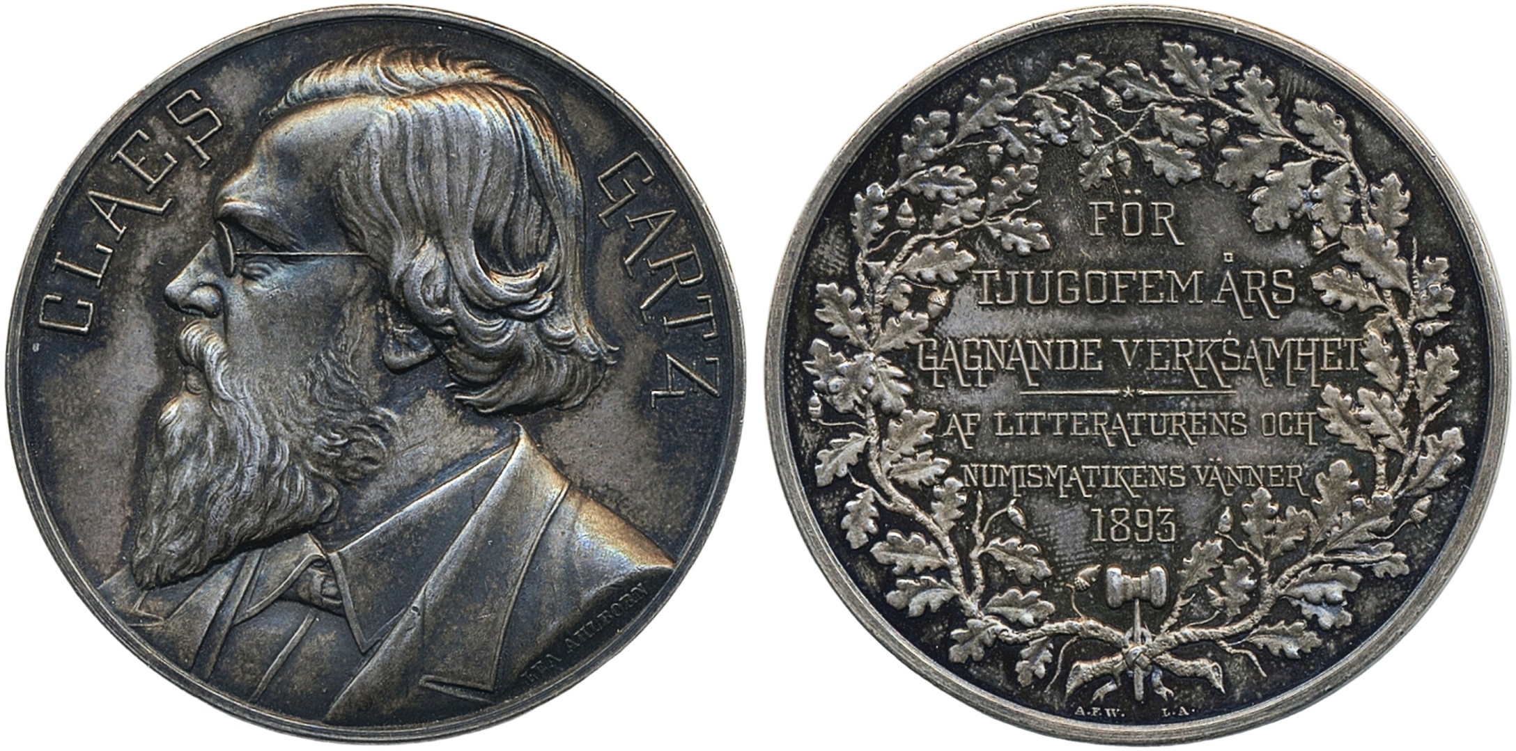 Medals, non-regal, Sweden. Hyckert II:243, Claes Gartz (1834–1891). Medal in silver, 44 mm, 47.12 g., by L. Ahlborn. Exquisite patina. Choice! 01/0.