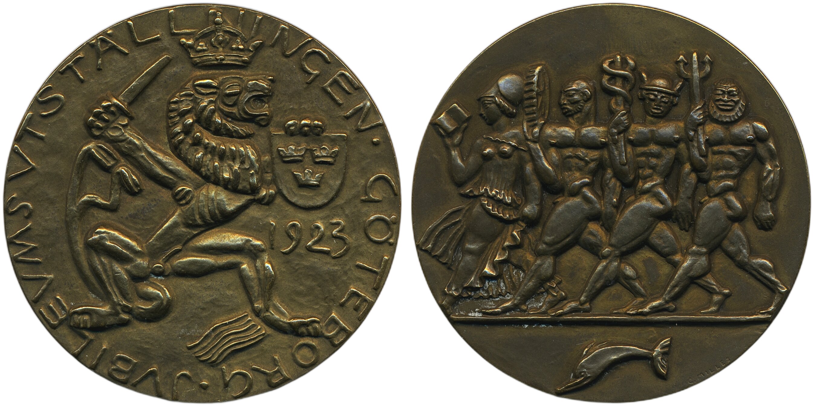 Medals, non-regal, Sweden. MKD 100, 1923. 80.85 g, bronze medal, Göteborgs utställningen 1923 in original box. 01/0.