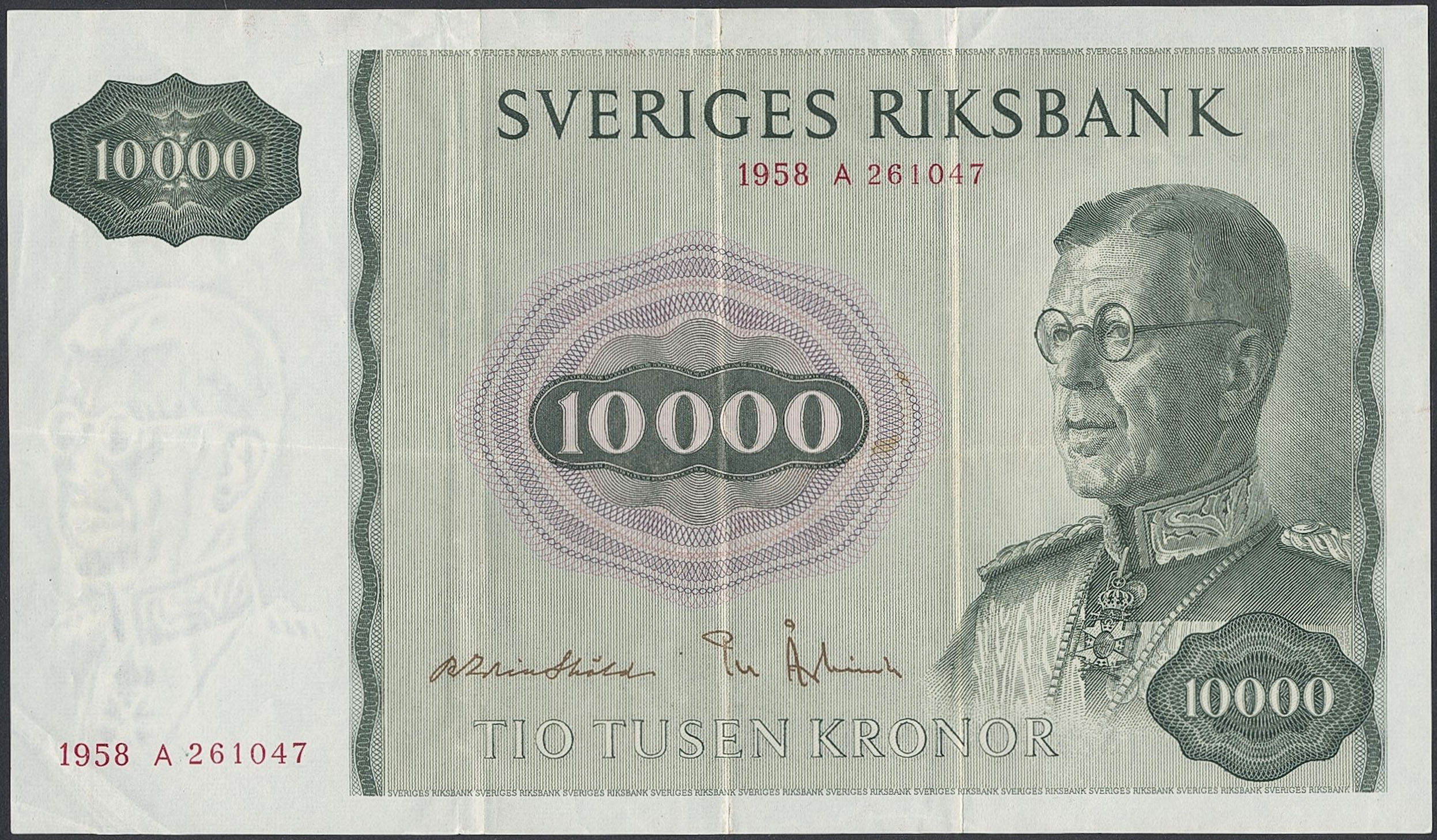 Banknotes, Sweden. SF Z2:1, 10000 kronor 1958. A261047. 1/1+.