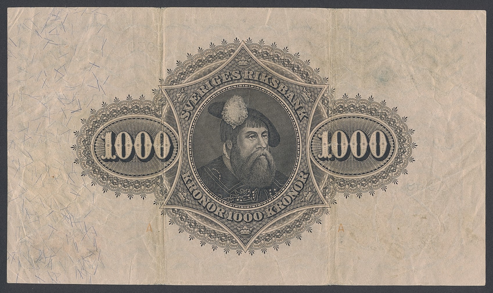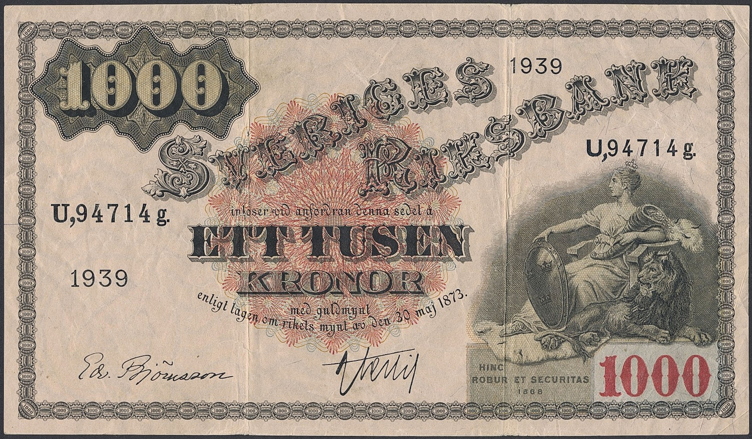 Banknotes, Sweden. SF X6:4, 1000 kronor 1939. U,94714g. 1/1+.