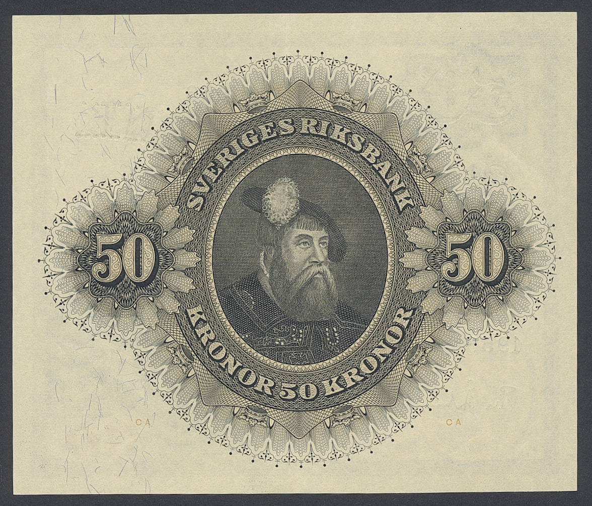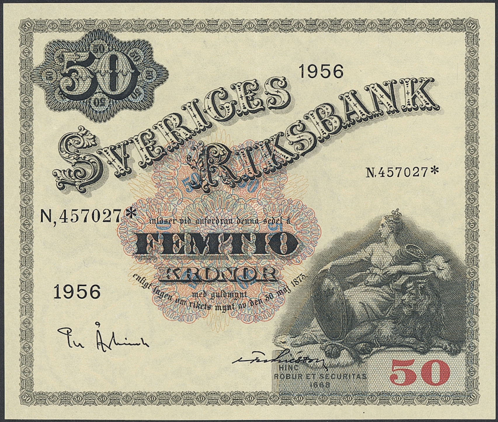 Banknotes, Sweden. SF T9:8, 50 kronor 1956. N,457027*. Replacement note. Light centre fold. 01.