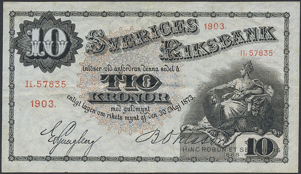 Banknotes. SF R3:13, 10 kronor 1903. Ii57835. 1/1+.