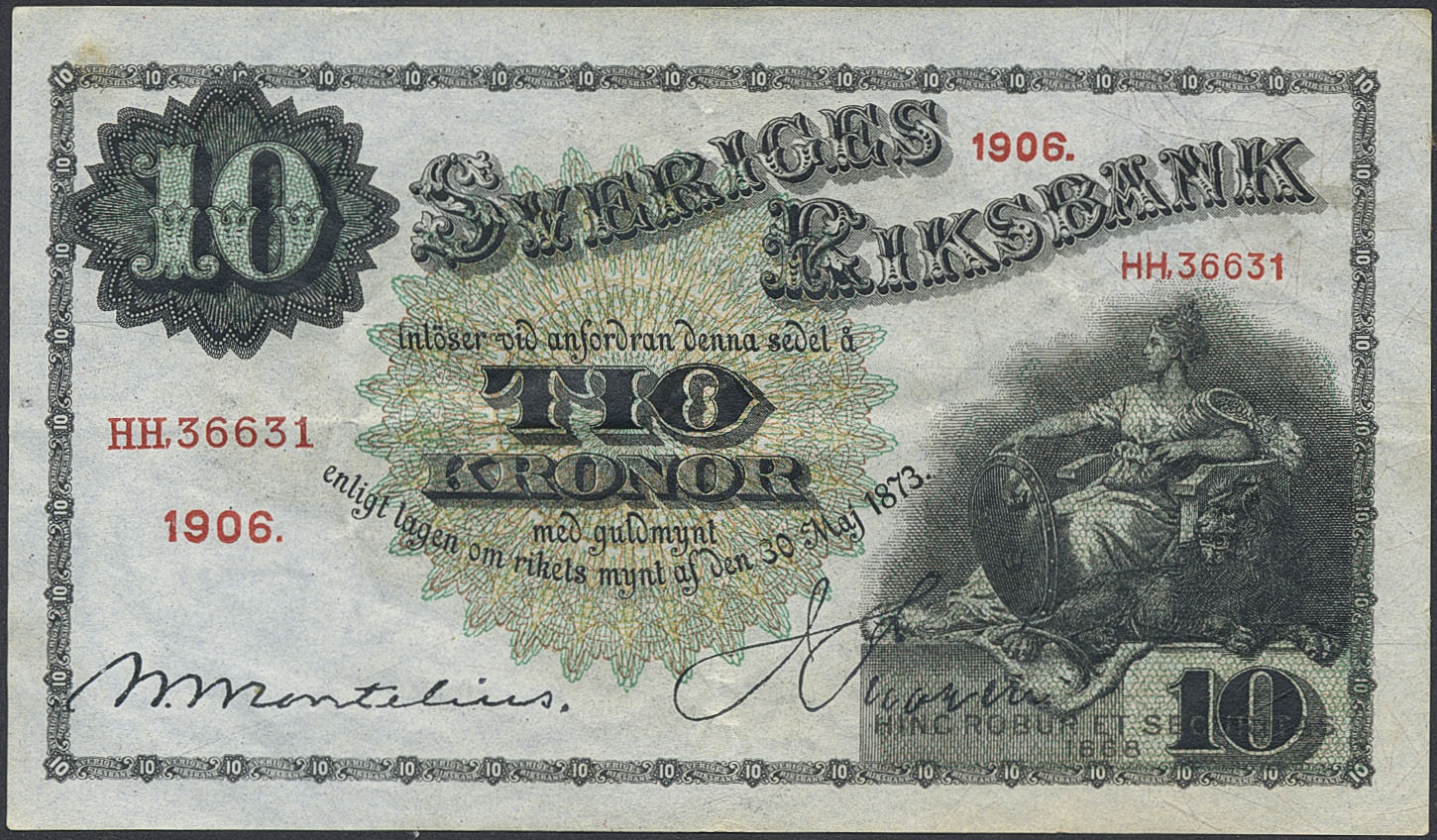 Banknotes, Sweden. SF R4:1, 10 kronor 1906. No: Ii 120681. 1+.