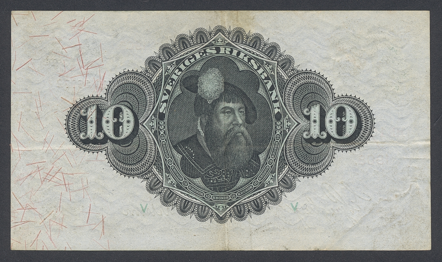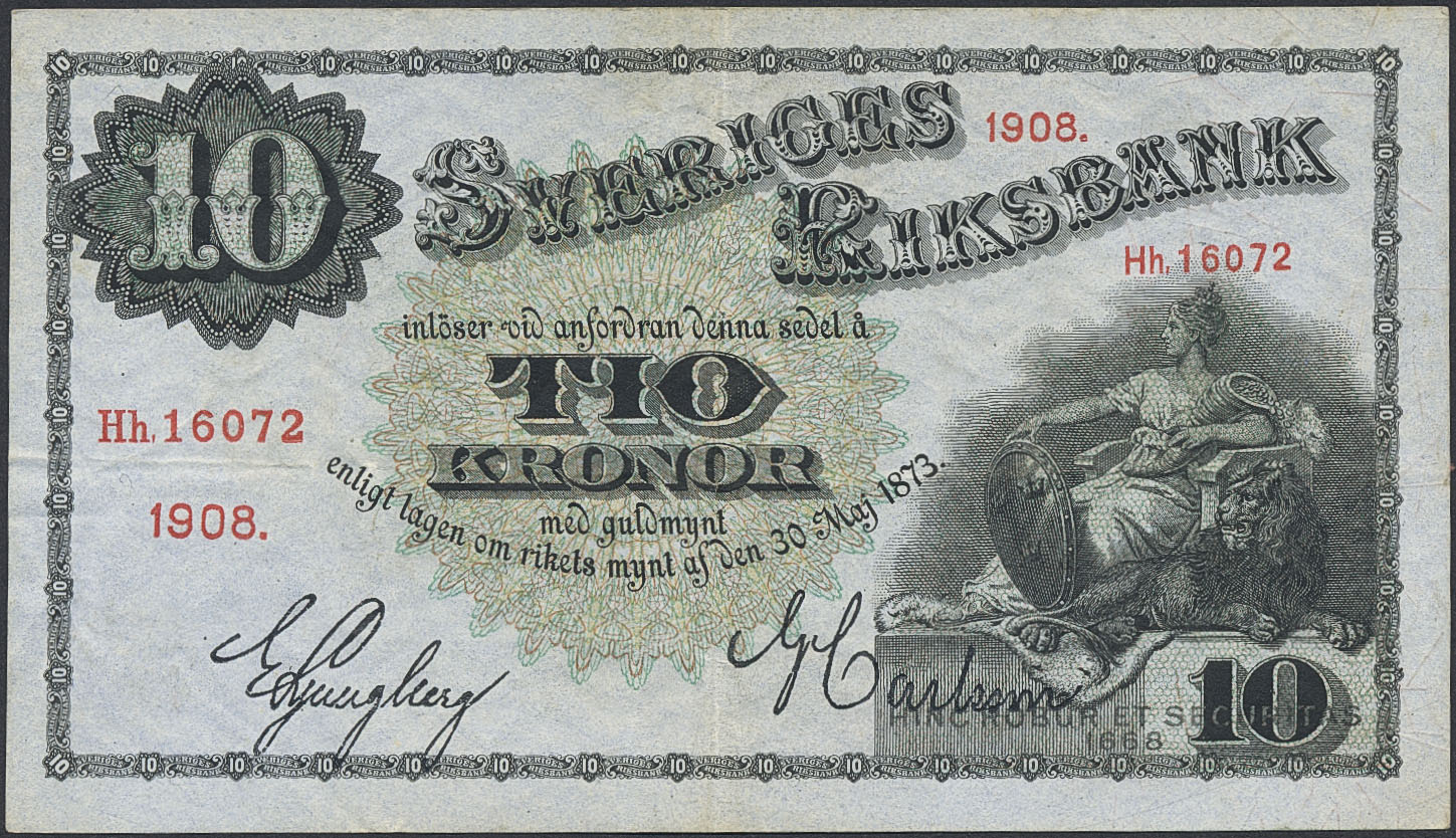 Banknotes, Sweden. SF R4:3, 10 kronor 1908. No: Hh 16072. 1+.