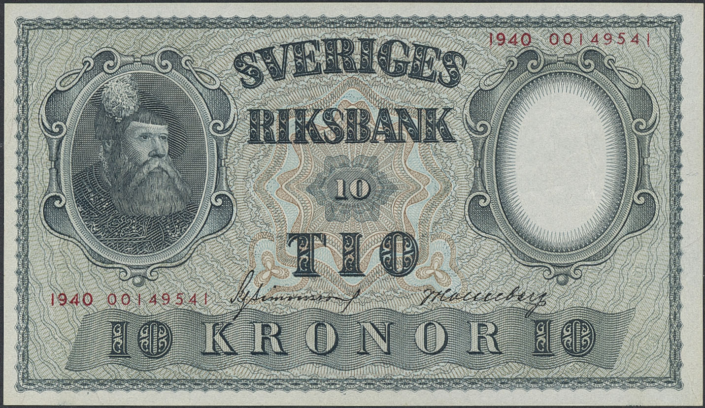 Banknotes, Sweden. SF R6:1, 10 kronor 1940. Pressed. Ex. MISAB 5 lot 127. 01.