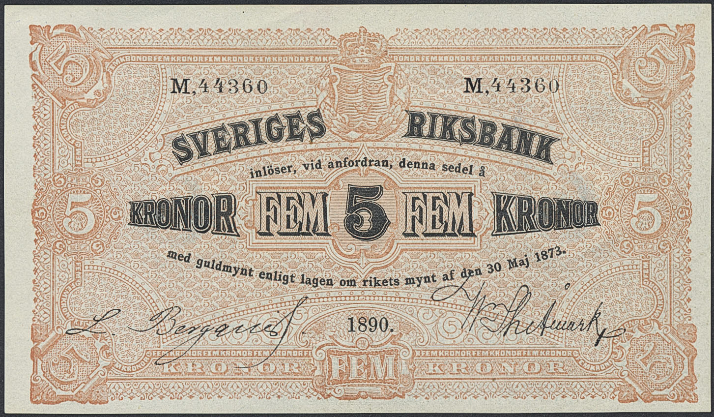 Banknotes, Sweden. SF Q4:3, 5 kronor 1890. M44360. 01/0.