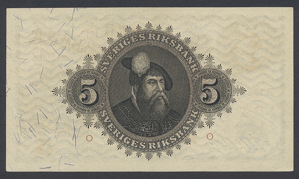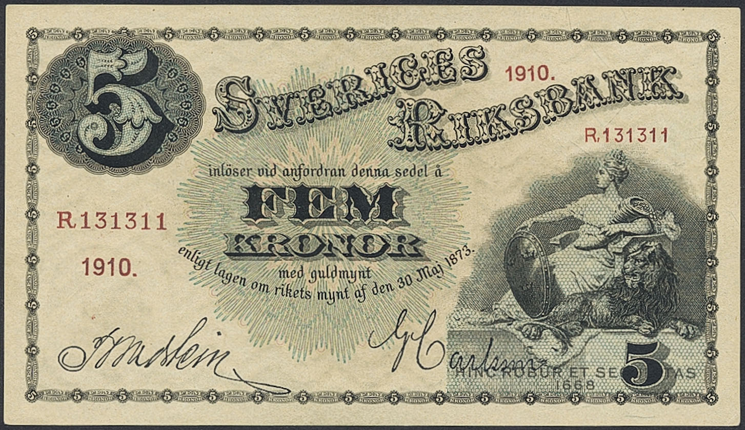 Banknotes, Sweden. SF Q6:5, 5 kronor 1910. R 131311. Ex. MISAB 5 lot 54. 01/0.