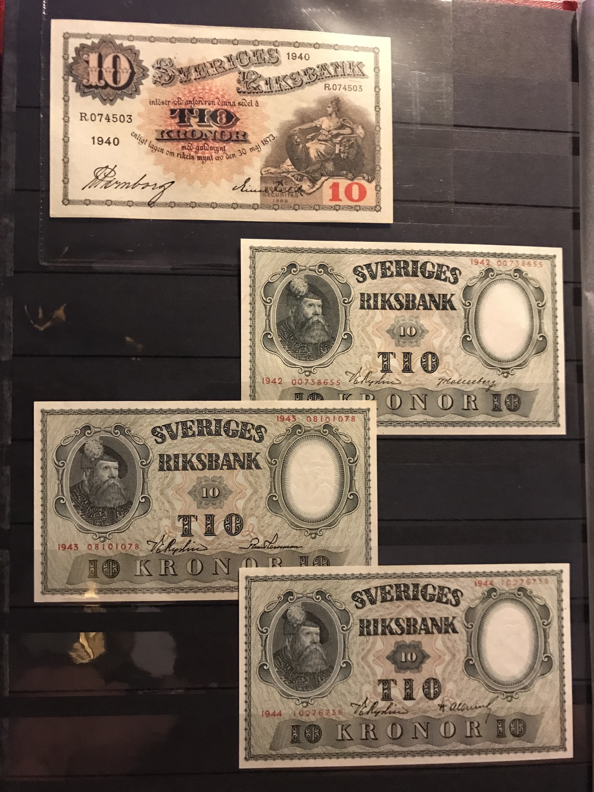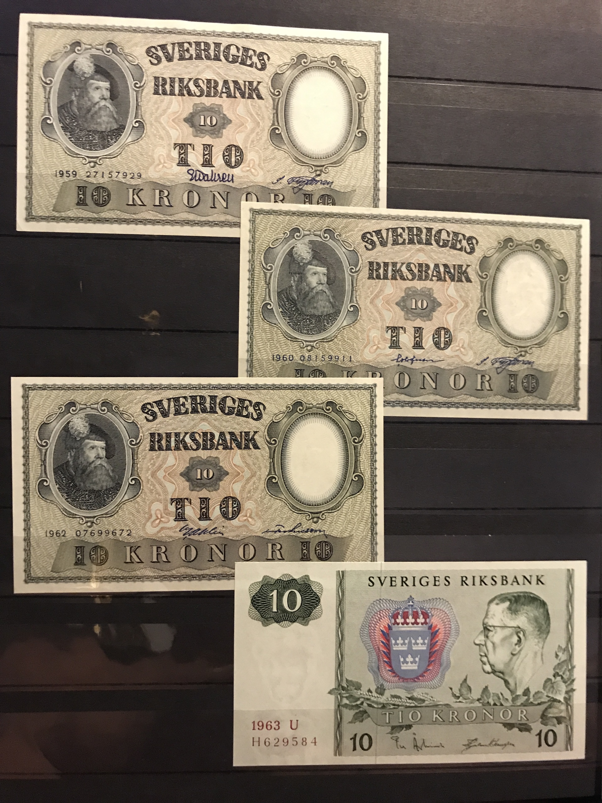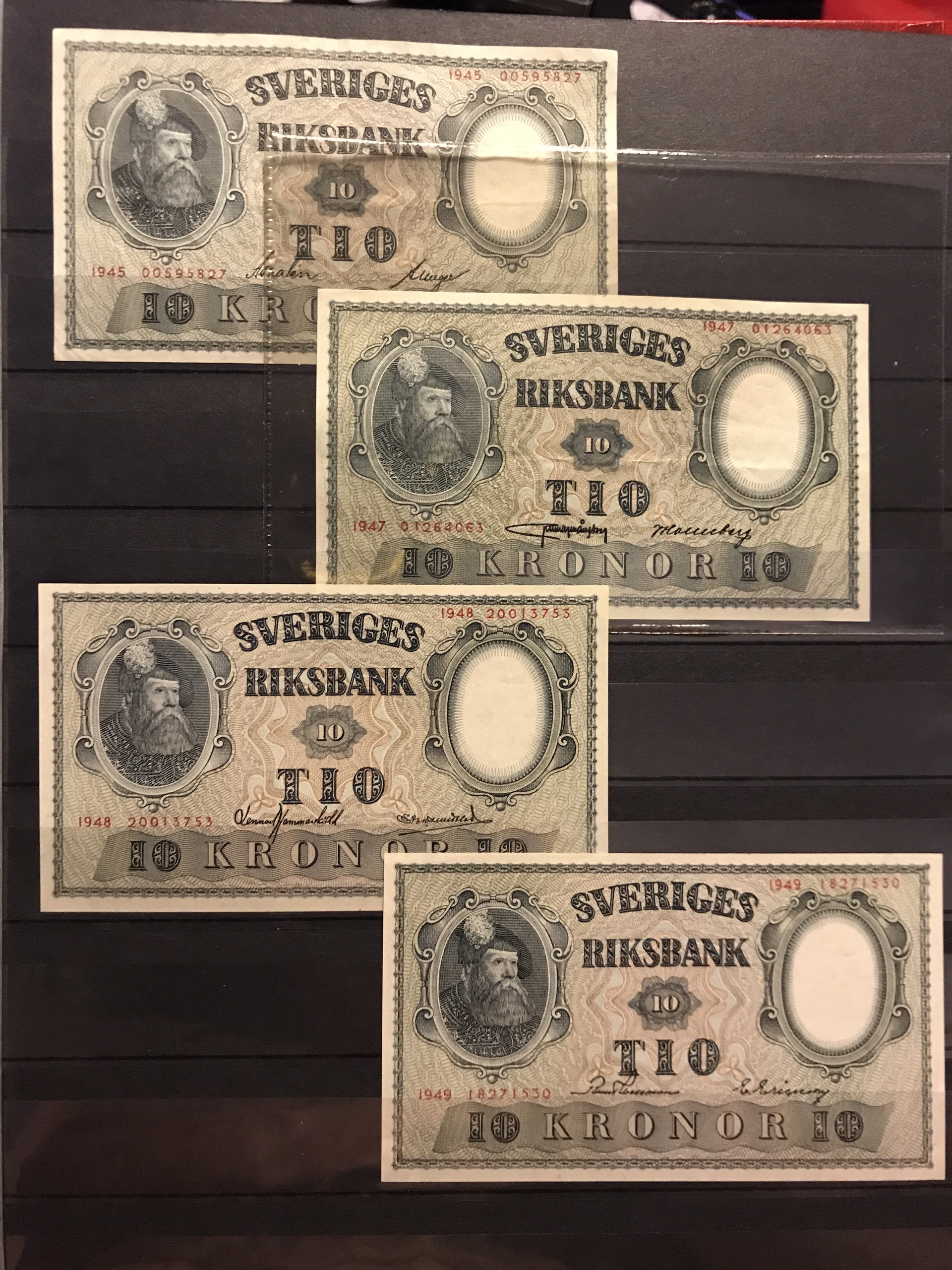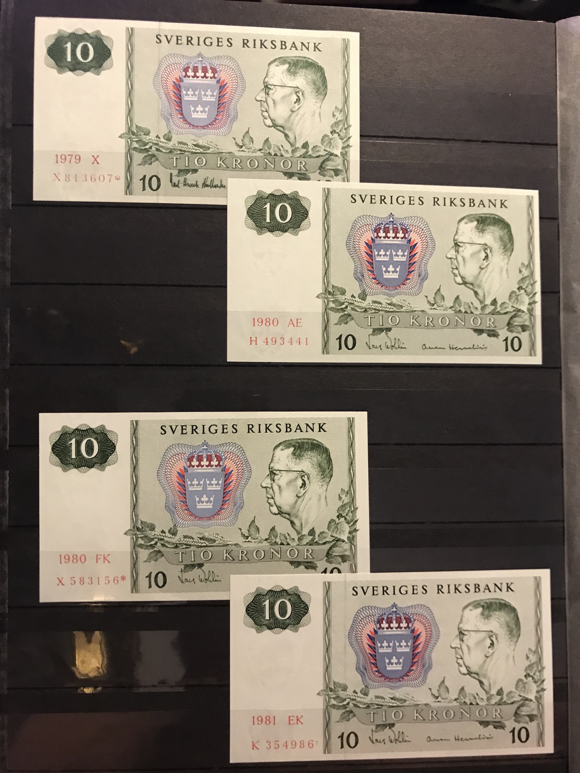 Banknotes, Sweden. Collection with 55 different 10 kr 1908–1990 incl. many uncirculated and some *. Mixed quality. Please see a selection of scans at www.philea.se.
