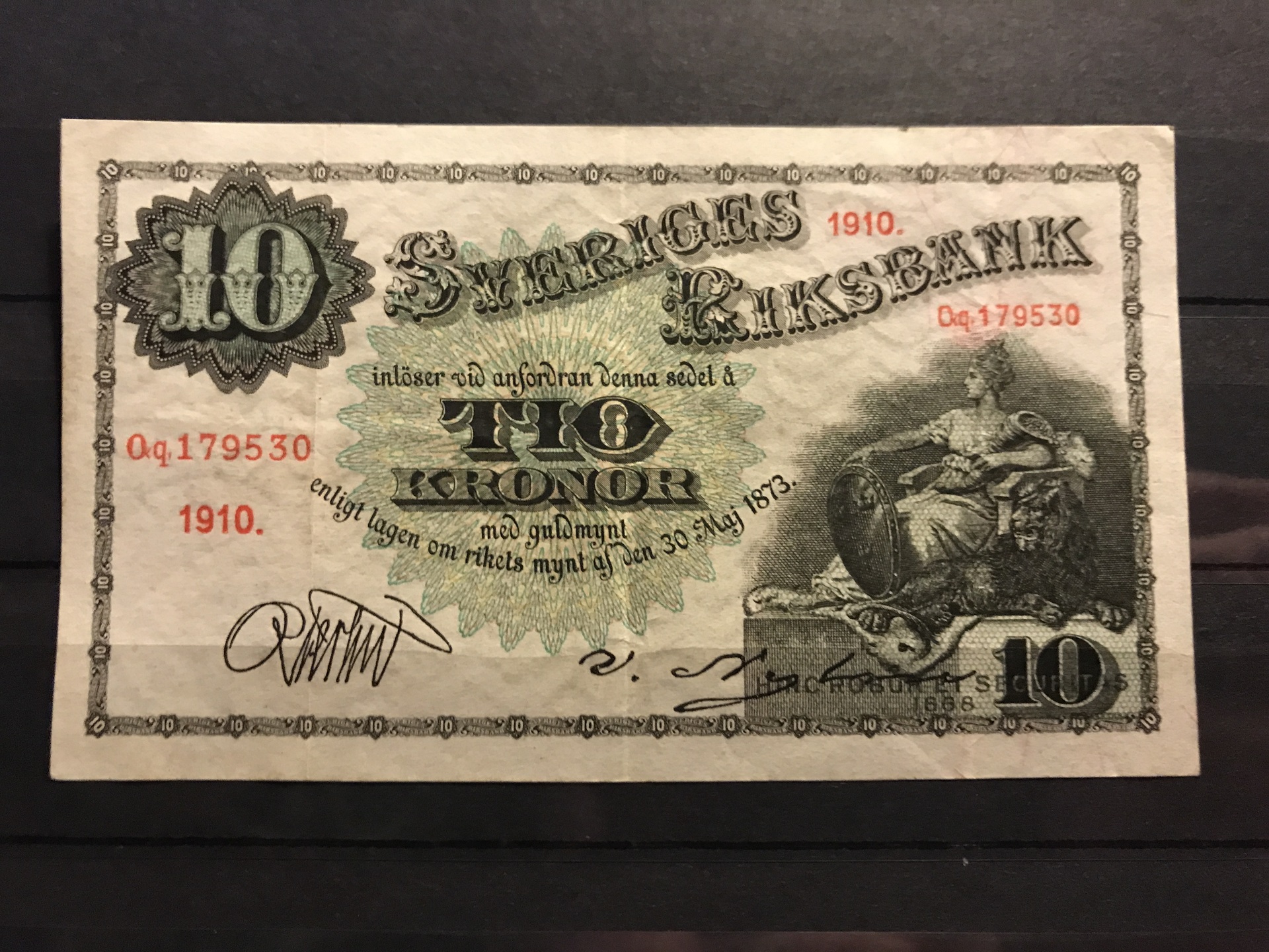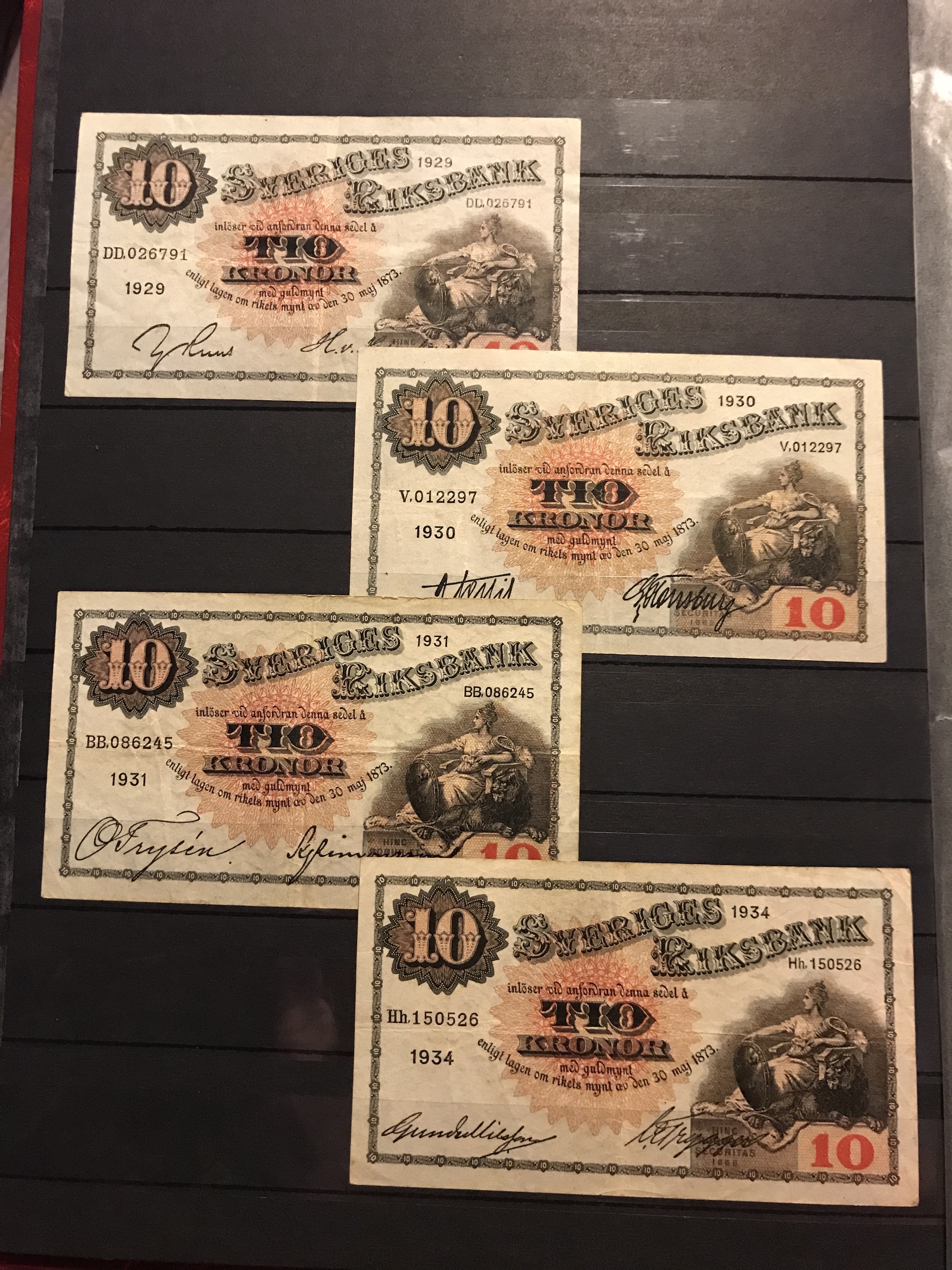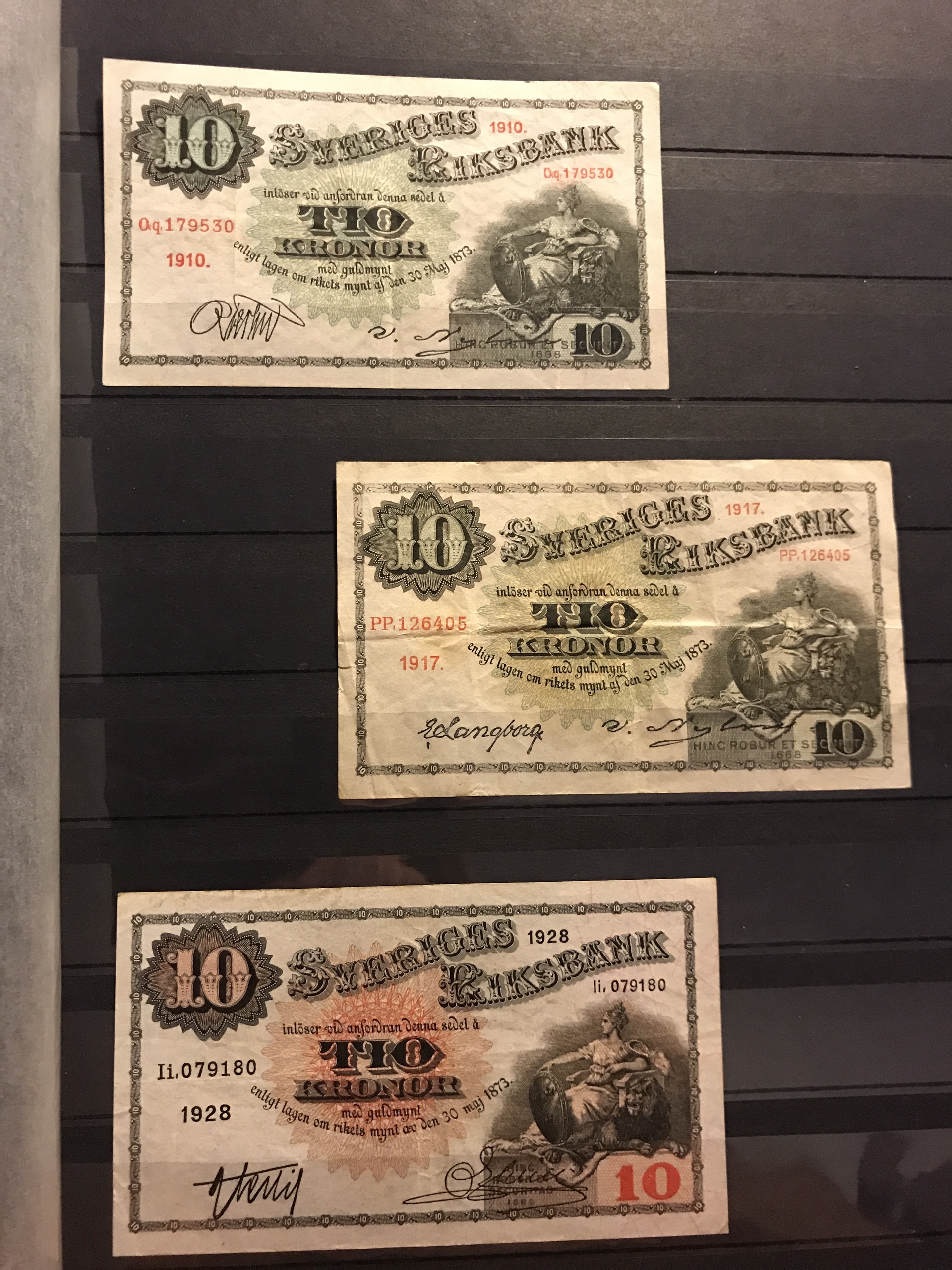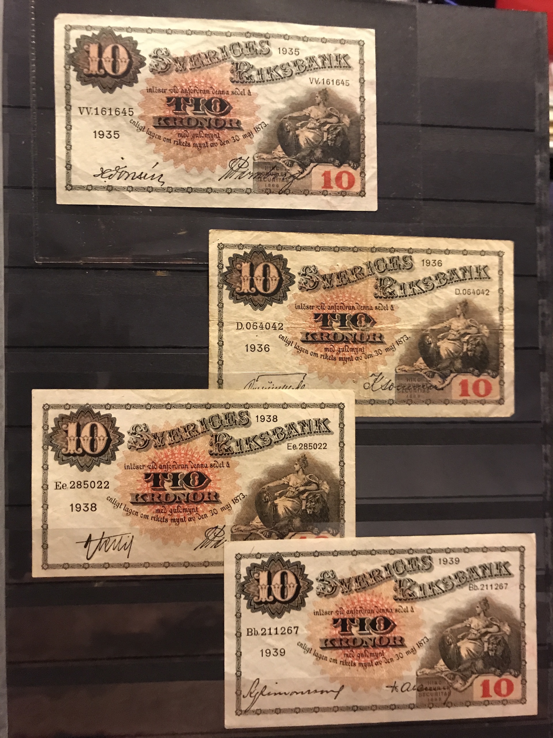 Banknotes, Sweden. Collection with 55 different 10 kr 1908–1990 incl. many uncirculated and some *. Mixed quality. Please see a selection of scans at www.philea.se.