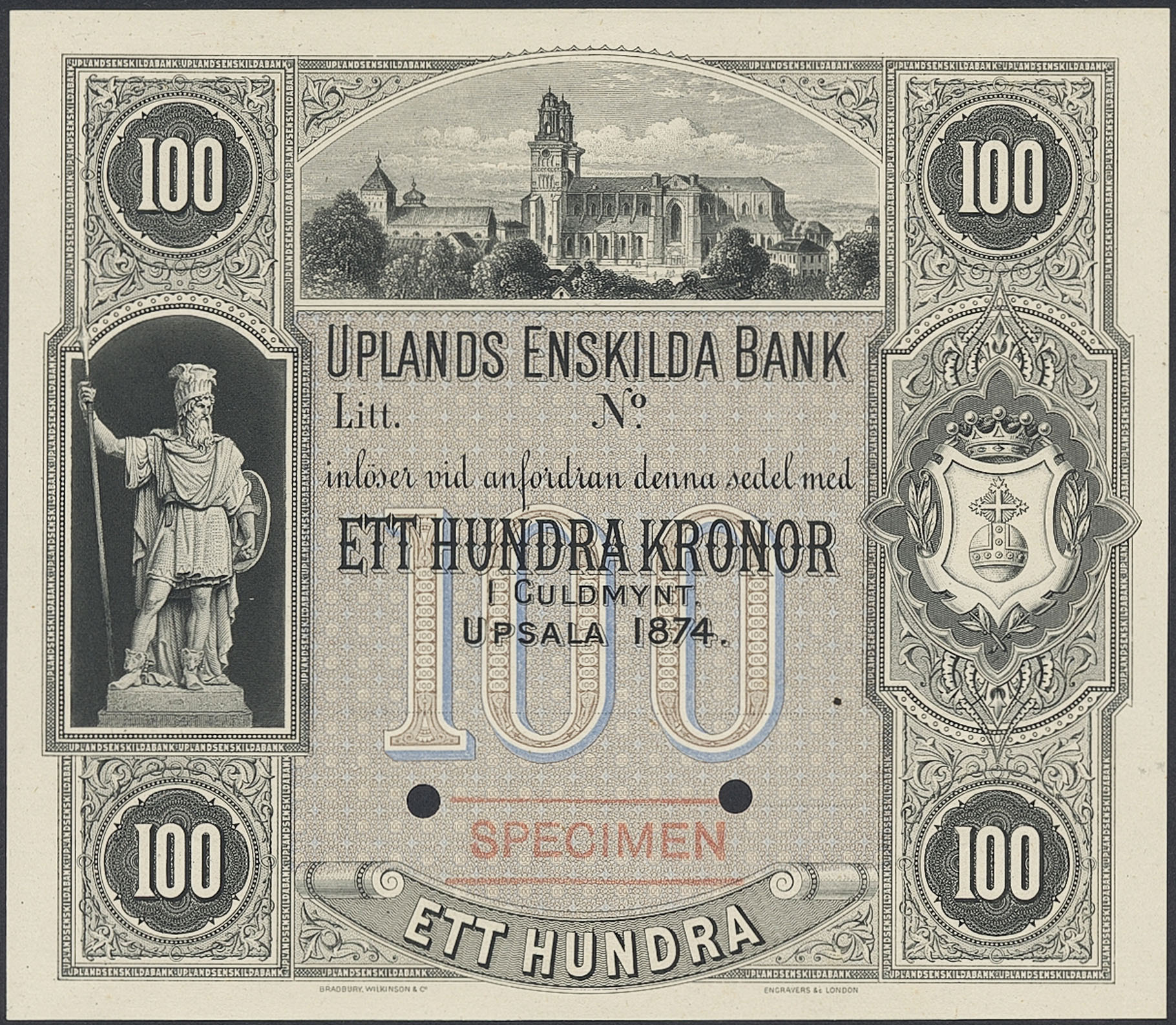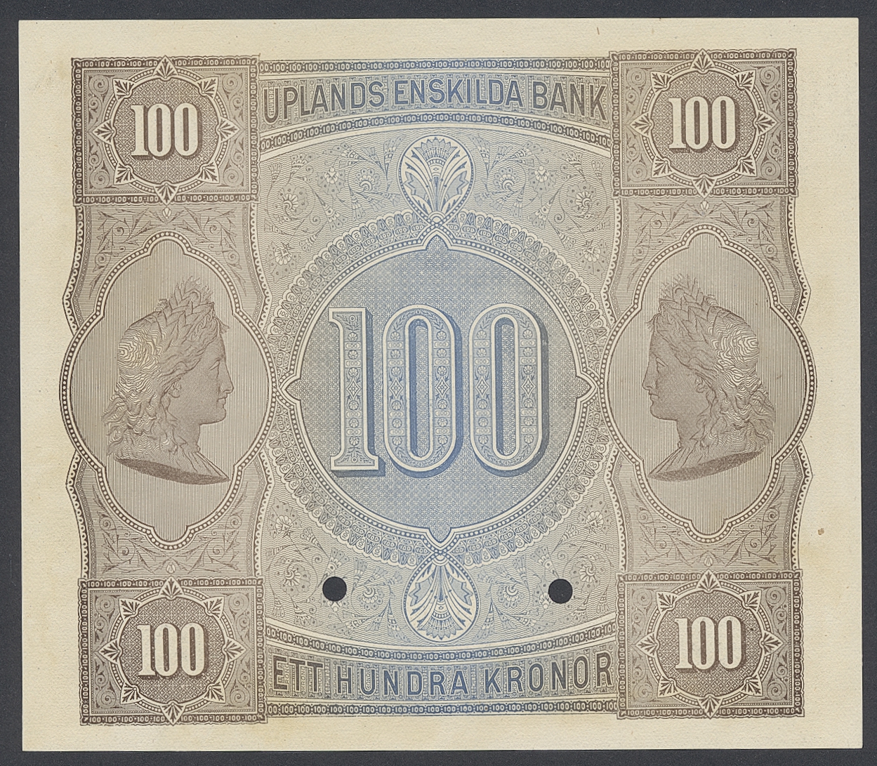 Private banknotes, Sweden. Pick S629s, 100 kronor 1874. Specimen note. 01/0.