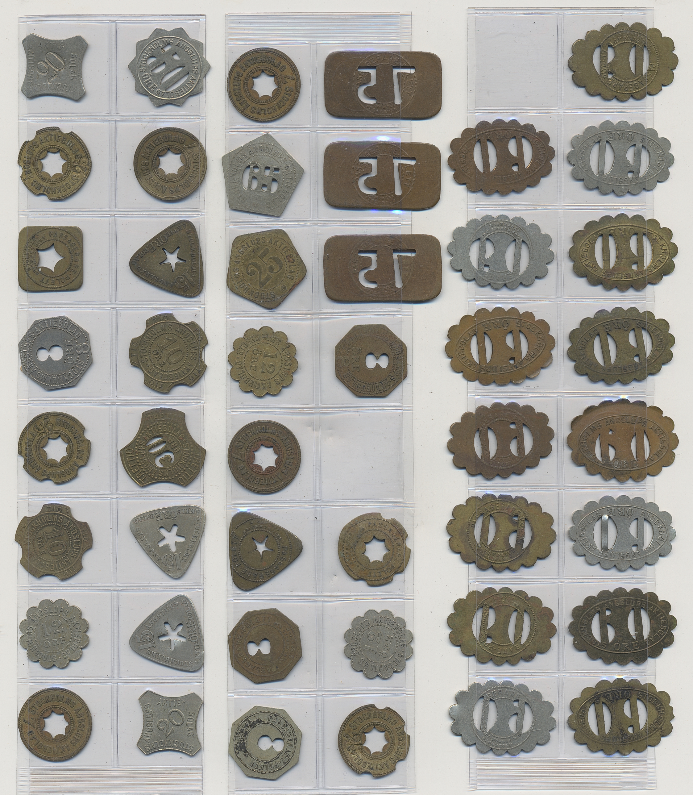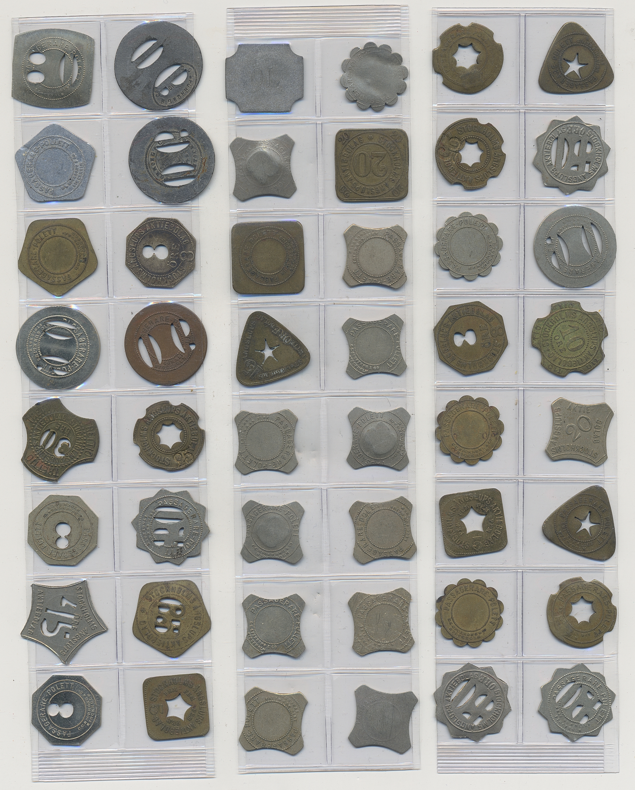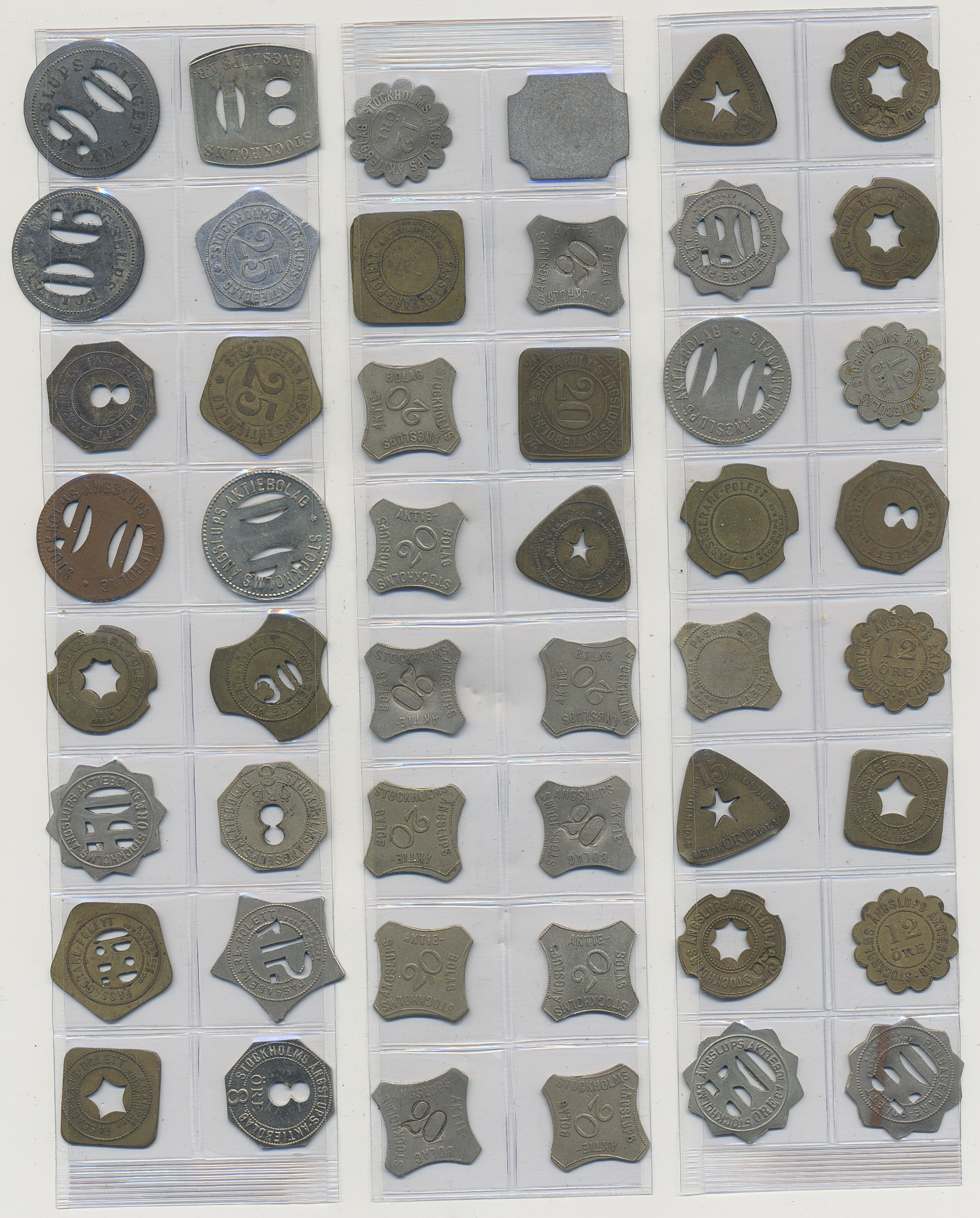 Tokens, Sweden. Tokens mostly from Sweden 1800s–1900s, mixed quality. Including Stockholms Ångslups AB and 15 Shell tokens. In total, around 350 including a lot of duplicates, please inspect.