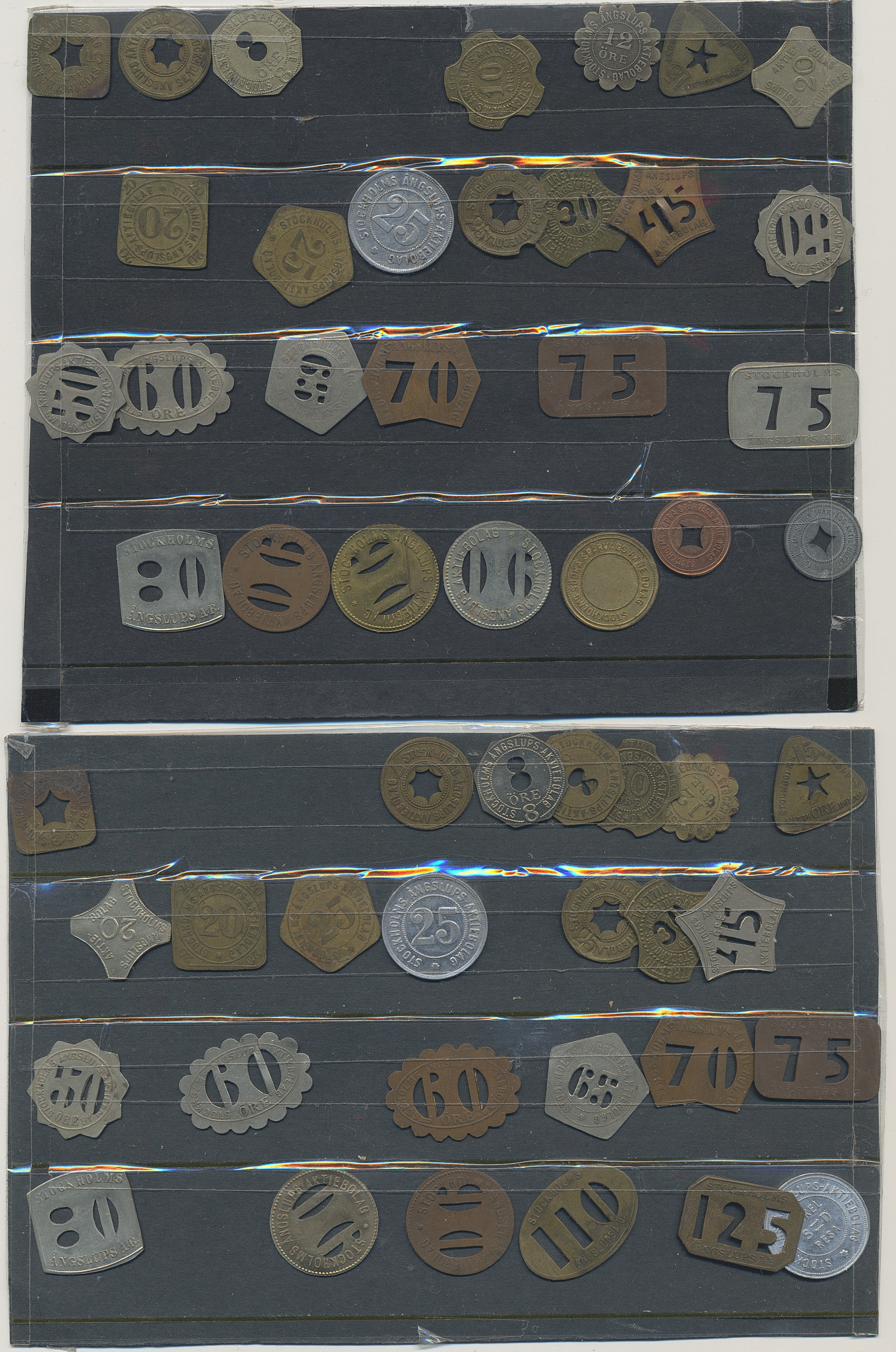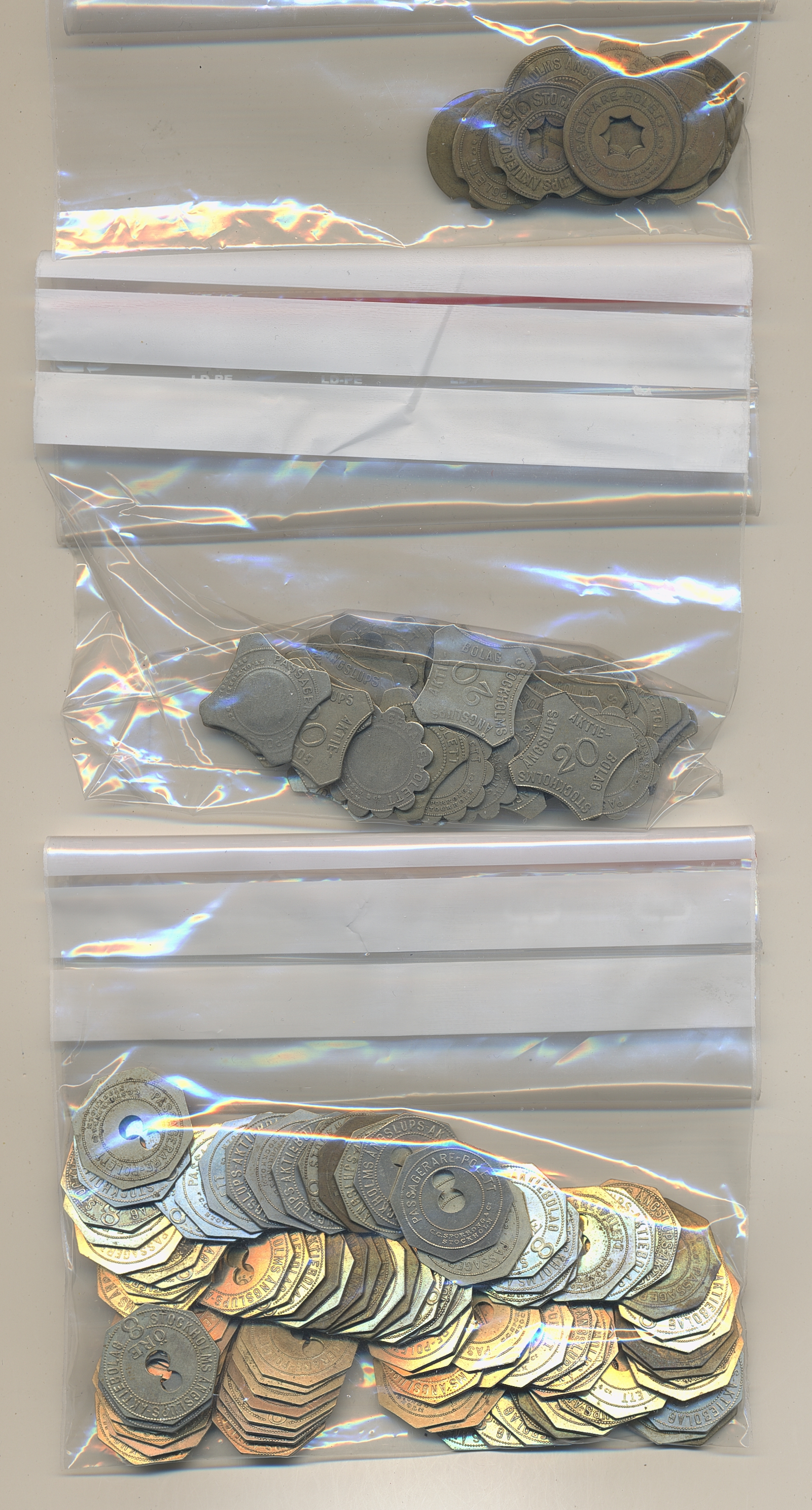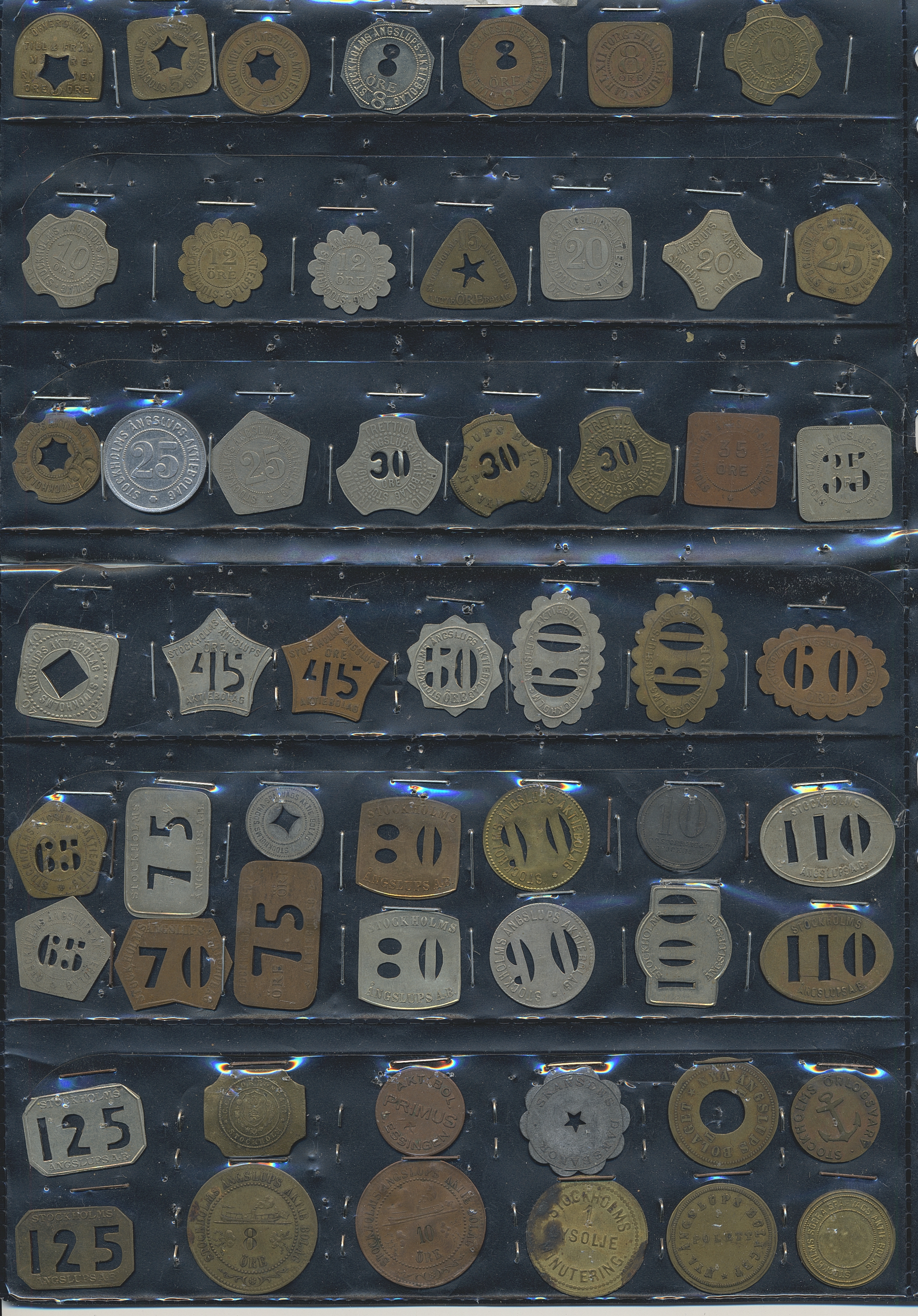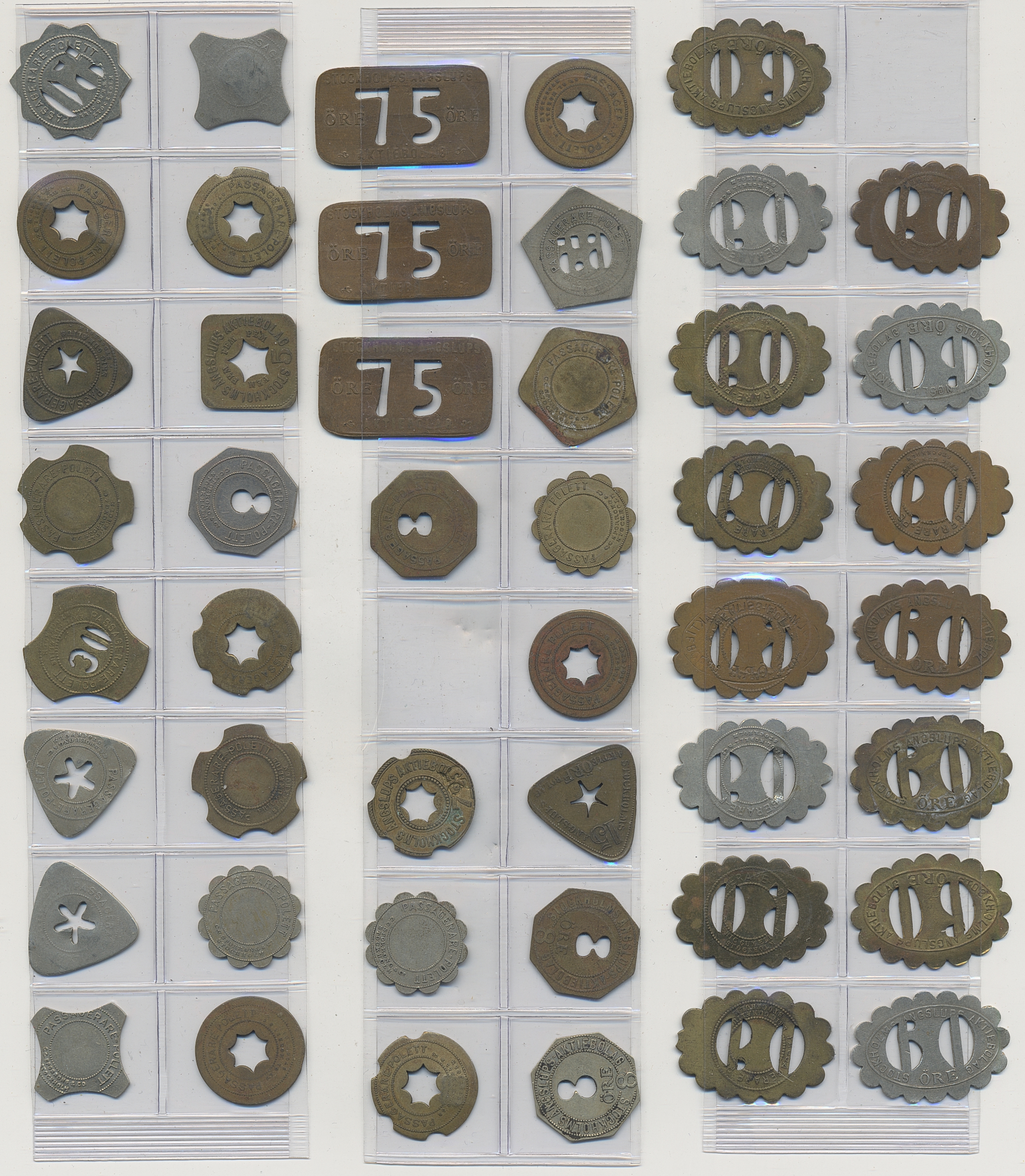 Tokens, Sweden. Tokens mostly from Sweden 1800s–1900s, mixed quality. Including Stockholms Ångslups AB and 15 Shell tokens. In total, around 350 including a lot of duplicates, please inspect.