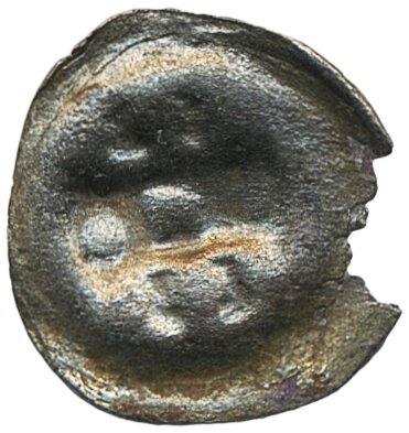 Coins, Norway. Haakon VI, NMB 7a var, 1 penning ND. 0.28 g. Bracteate with C or G between opposing crowns. A distinct dot to the left of the letter. A similar variety with a cross is catalogued as NMB 7b. Seemingly this is a different variety with a dot before the letter. Edge loss. LL XXIX:2. 1.
