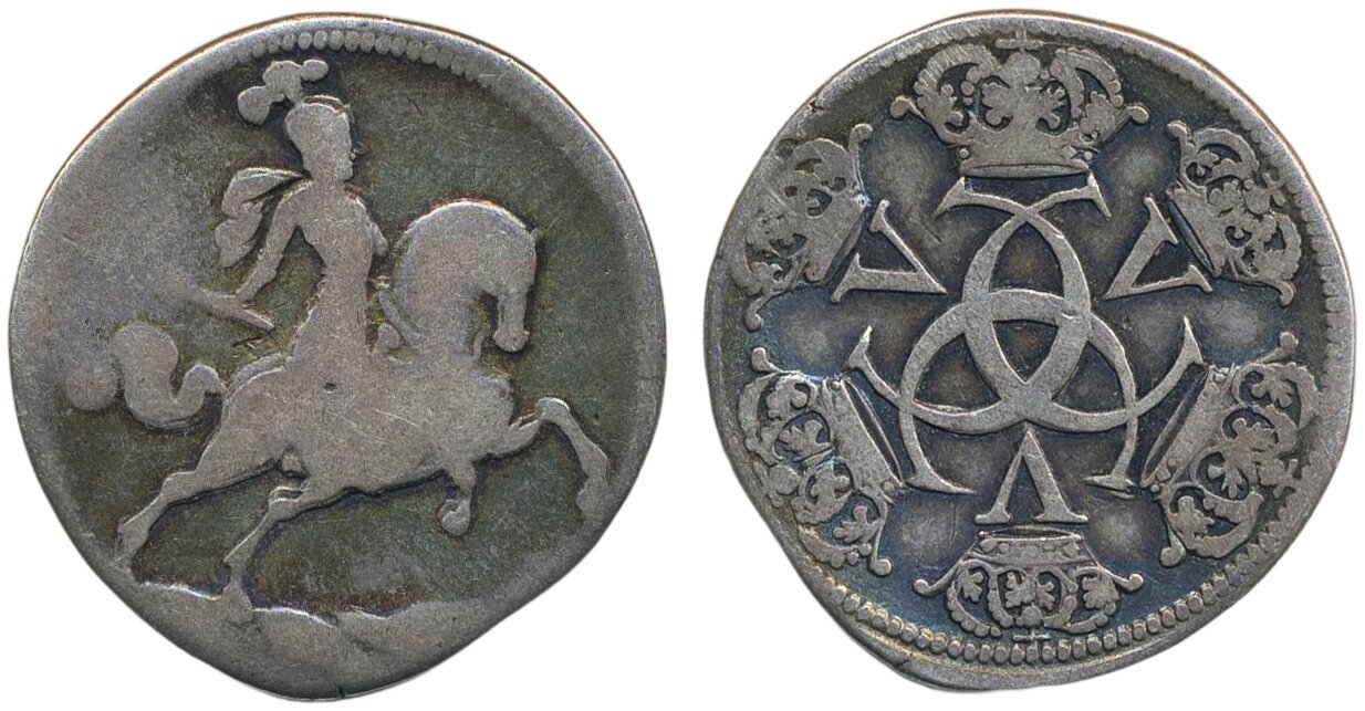 Coins, Norway. Christian V, NM 154B, 2 ducats ND. 6.73 g. Off-metal strike in silver. 1?/1.