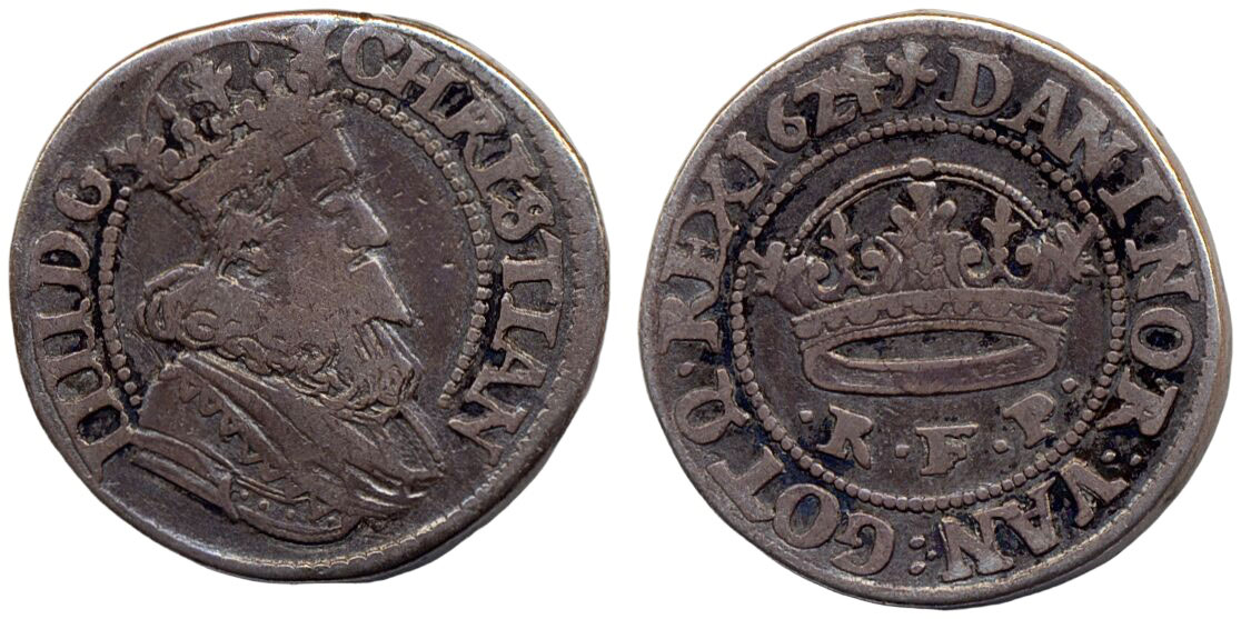Coins, Denmark. Christian IV, Sieg 81, ½ krone 1624. 9.13 g. Hede 128. 1/1+.