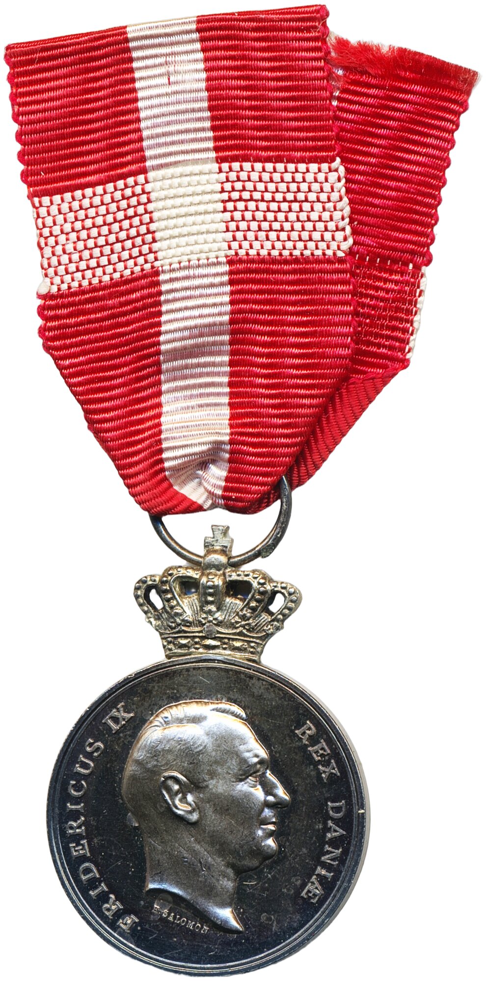 Medals, regal, Denmark. Frederik IX, Royal Medal of Recompense silver (with crown) medal with original ribbon. 12.47 g with ribbon. 01.