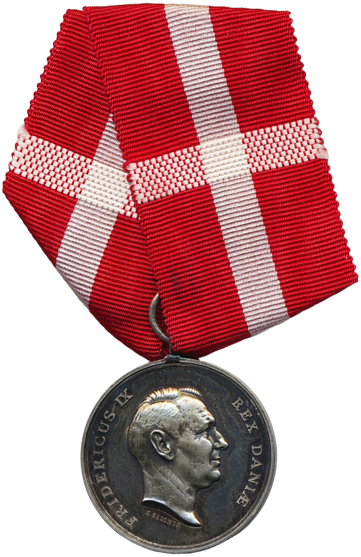Medals, regal, Denmark. Frederik IX, Royal Medal of Recompense silver (without crown) medal with original ribbon. 11.69 g with ribbon. 01.
