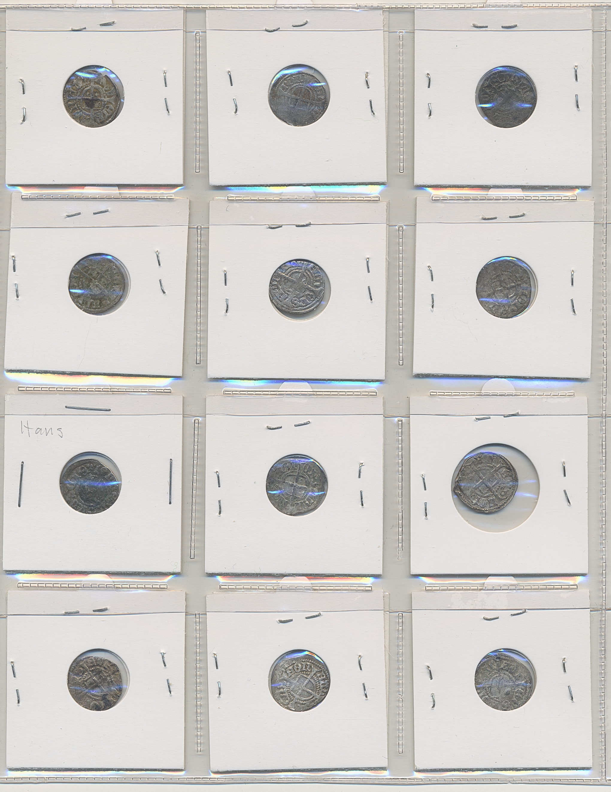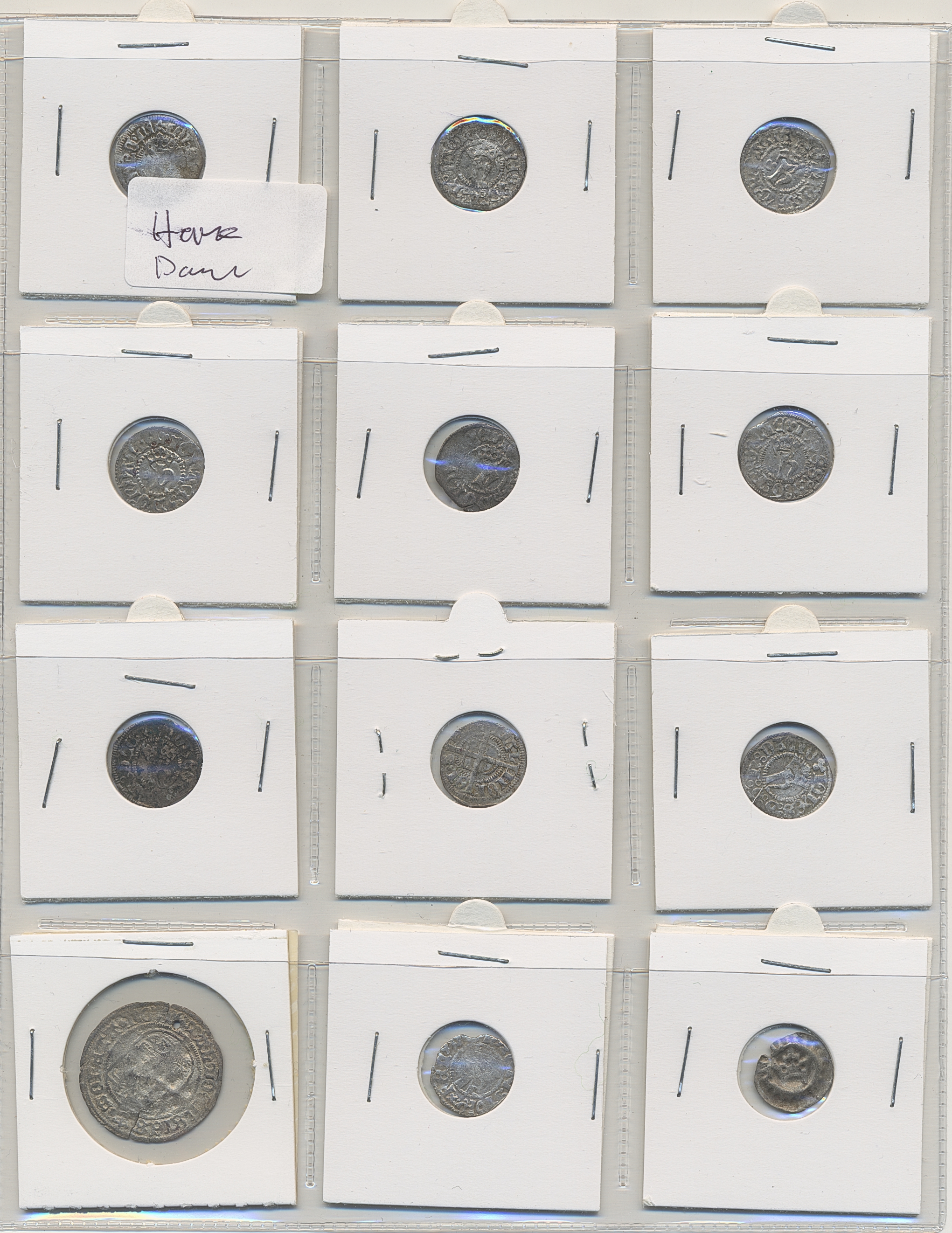 Coins, Denmark. Collection of 67 silver and copper coins of Denmark 1300s–1500s in very mixed condition with significant duplication. Please inspect! 2-1+.