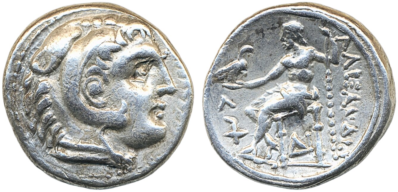 Coins, Ancient, Greek coins. Kingdom of Macedon. Alexander the Great (336–323 BC). Tetradrachm, 16.33 g. Amphipolis mint. Head of Herakles / Zeus seated. Cleaned. F-VF.