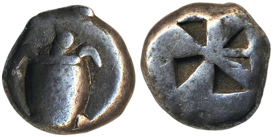 Coins, Ancient, Greek coins. Aegina, Attica. (ca. 520–480 BC). Stater, 12.32 g. Sea turtle seen from above, head facing left / Incuse 'mill sail' pattern. HGC 6, 430. Ex. Baldwin's, London. Good VF.