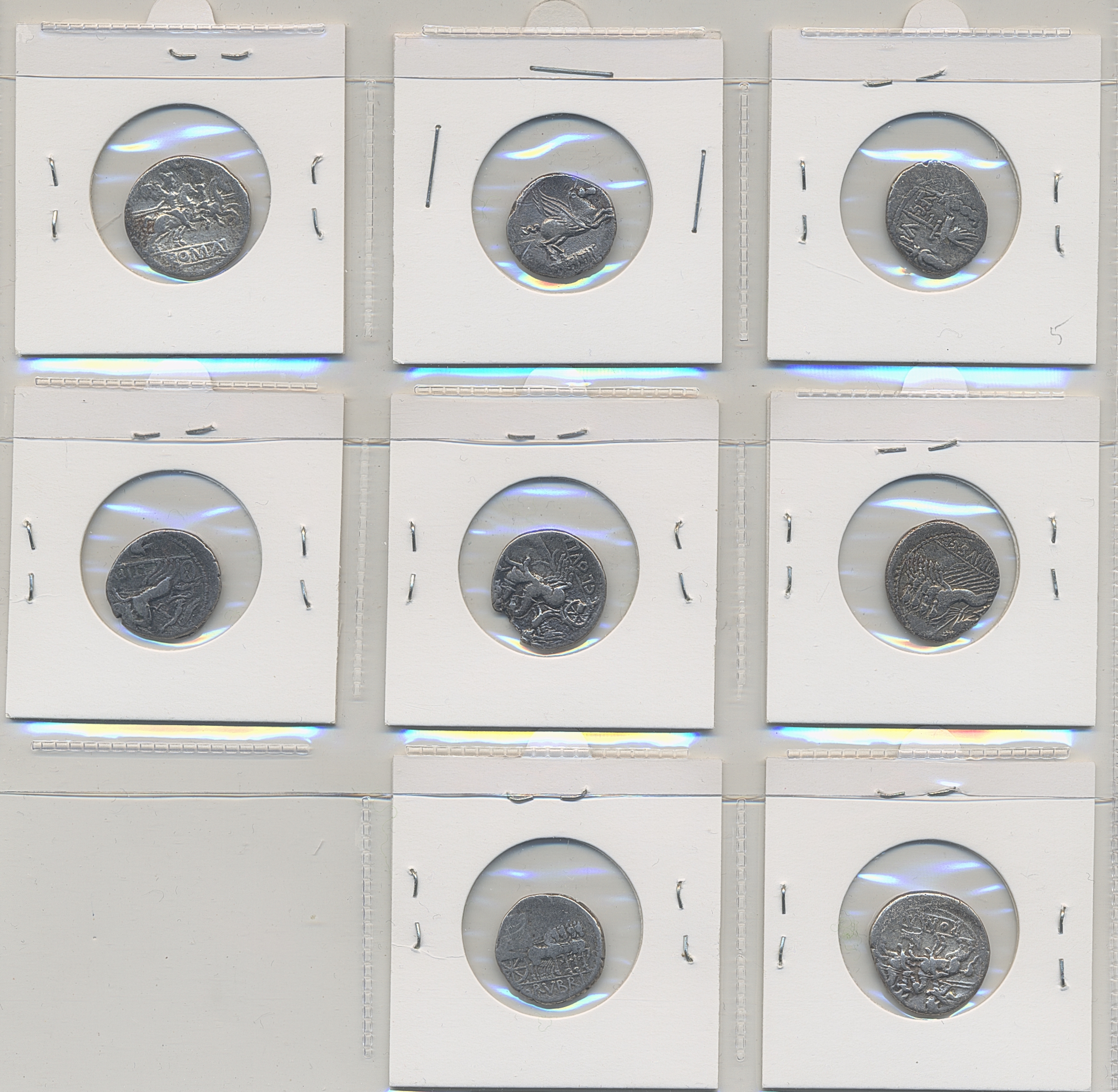 Coins, Ancient, Roman Republic. Lot. Eight different denarii. The entire lot is presented at www.philea.se. Mixed quality.