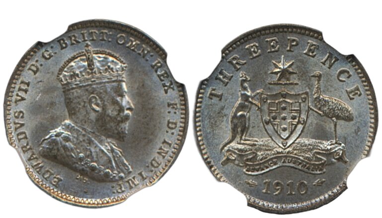 Coins, Australia. Edward VII (1901-1910), KM 18, 3 pence 1910. Graded by NGC as MS64. XF-UNC. See certification at NGC