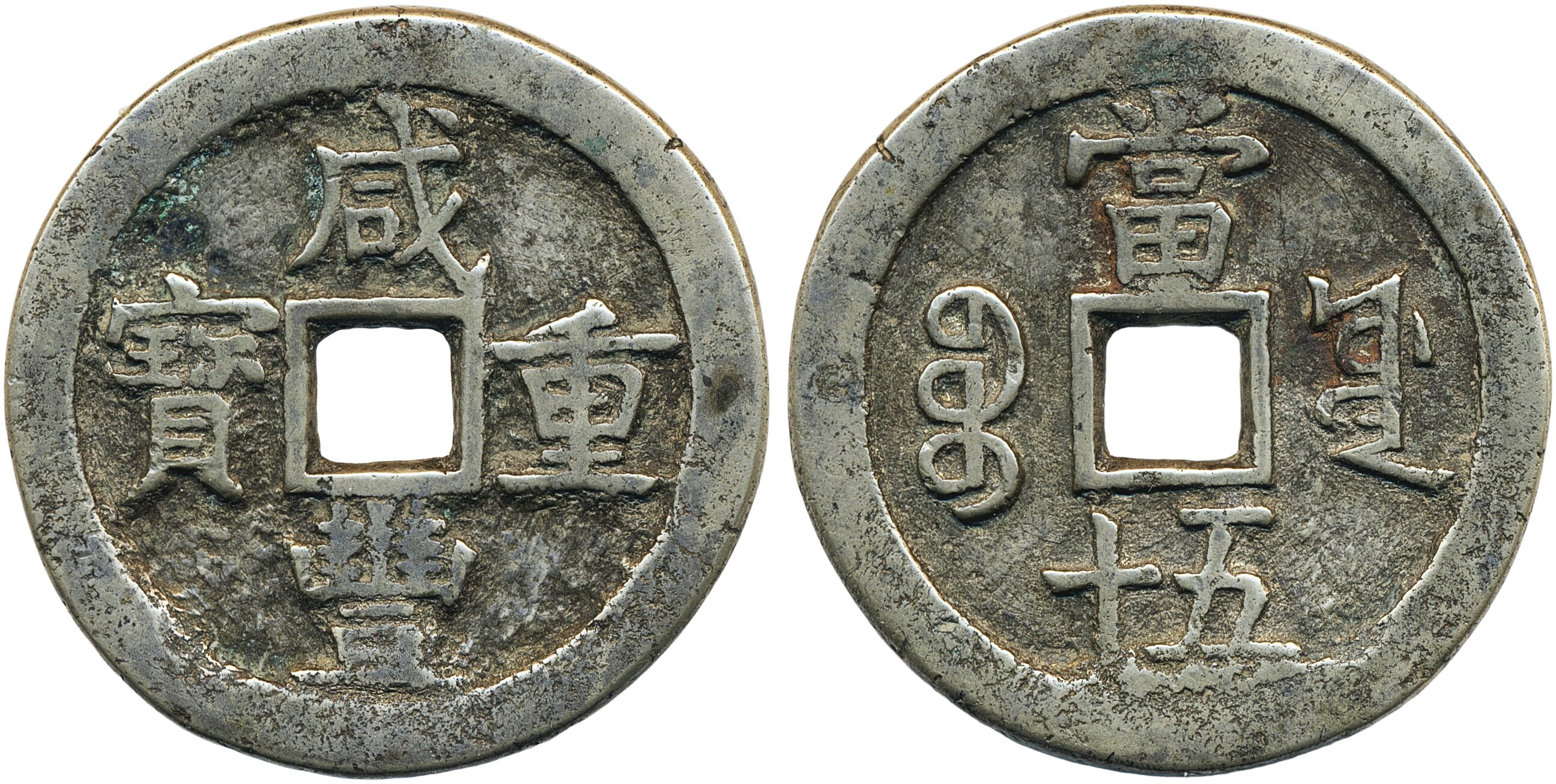 Coins, China, Ancient. Qing Dynasty - Emperor Wen Zong (1851-61), Hartill 22.759, 50 cash ND(1853-54). The Board of Works mint. 53.00 g. 54 mm. Cleaned, tooled. VF.