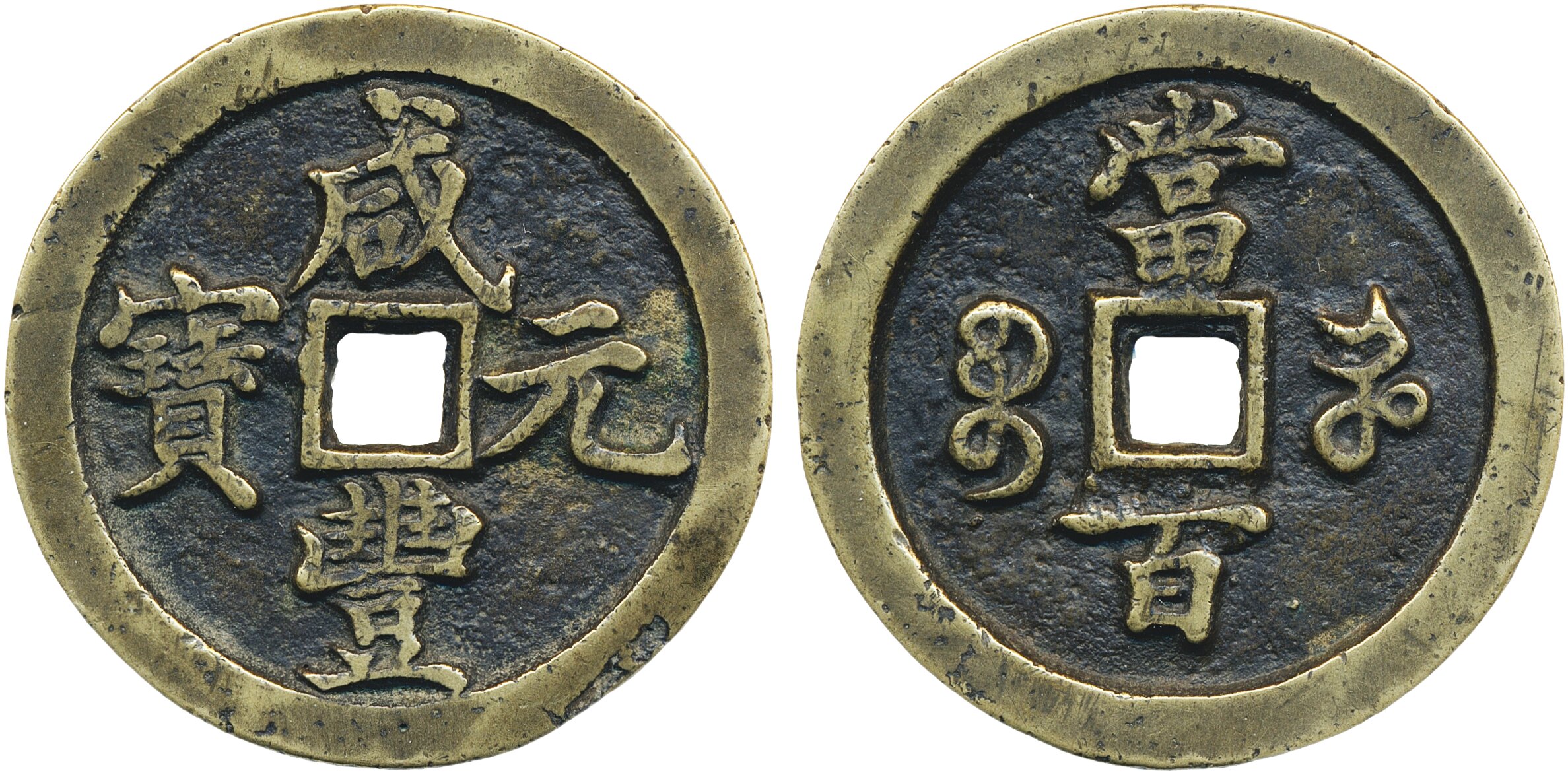 Coins, China. Emperor Wen Zong (1851-61), Hartill 22.849, 100 cash ND (1854–55). 47.56 g. 50 mm. Honan Province, Kaifeng or other mint. Attractive example with minor casting flaw on obverse rim. Ex. Antikören auction 4 lot 932. VF.