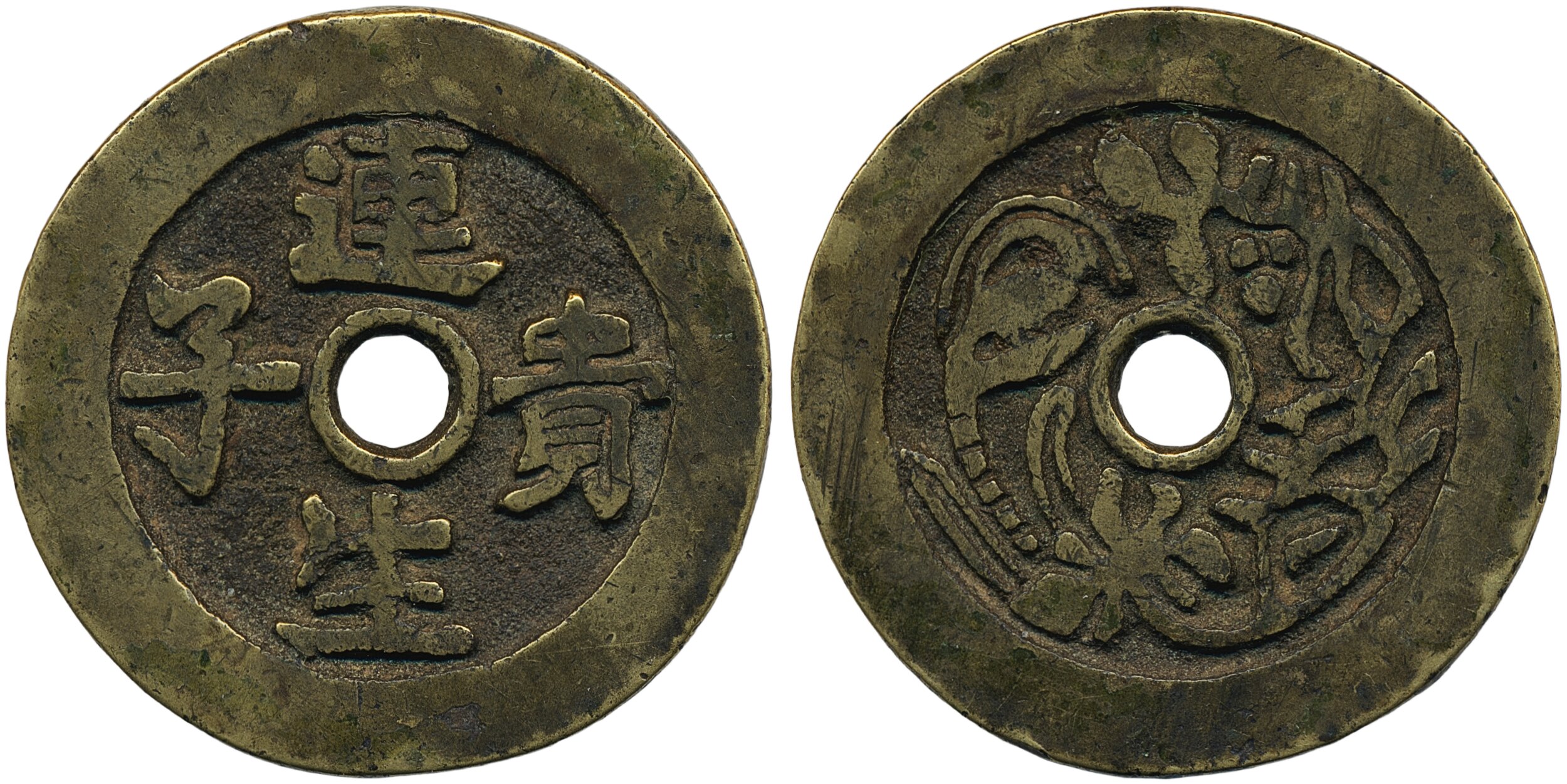 Medals, regal, China, Ancient. Qing Dynasty charm in brass, 48.01 g, 51 mm. Obverse imitating a cash coin. VF.
