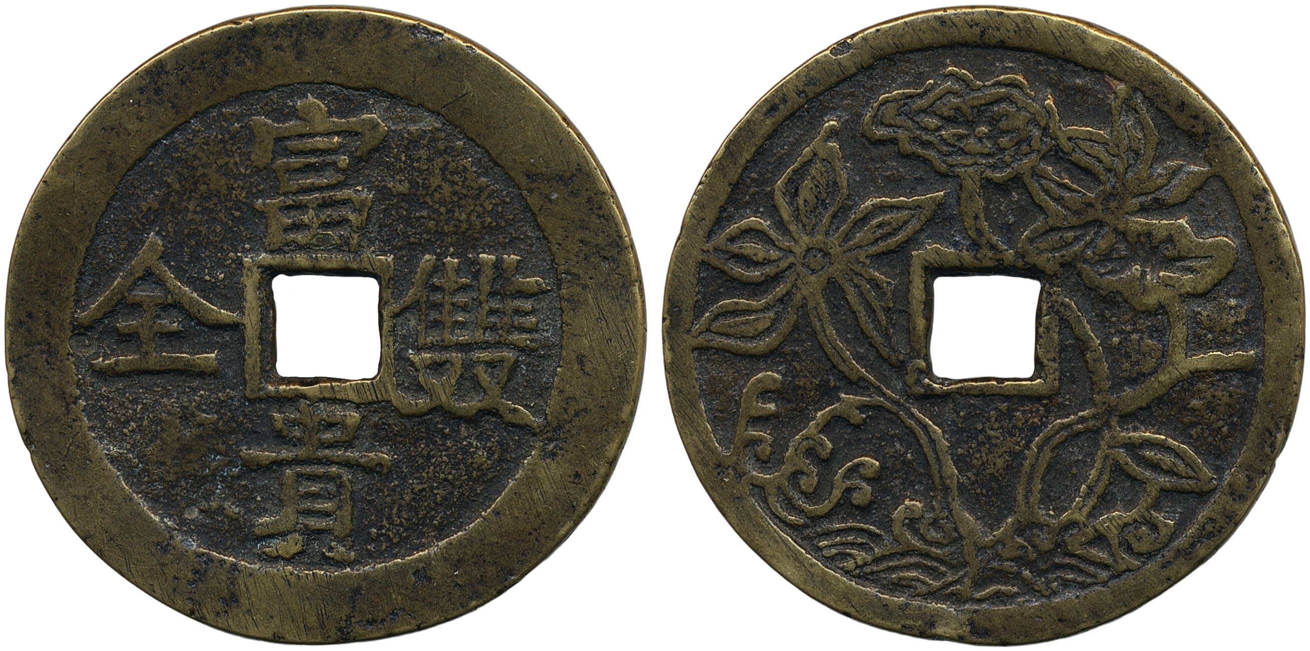 Medals, regal, China, Ancient. Qing Dynasty, bronze charm in style of cash coin on obverse, reverse floral design. 34.90 g. 54 mm. F-VF.
