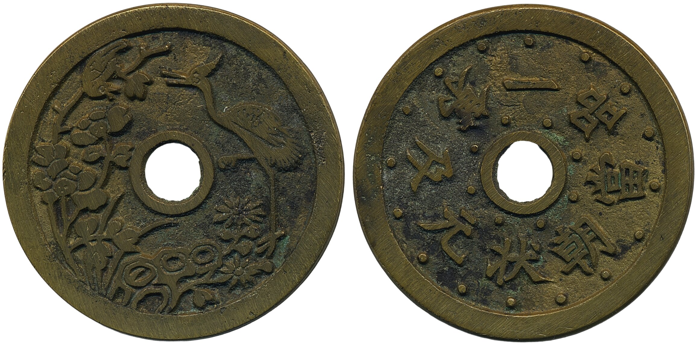 Medals, regal, China, Ancient. CCH- 812, Qing Dynasty charm in brass, 24.83 g, 47 mm. High grade example. XF.