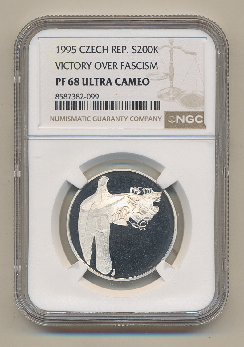 Coins, Czech Republic. KM 15, 200 korun 1995. Graded by NGC as PF68 ULTRA CAMEO. Low mintage. Proof. See certification at NGC