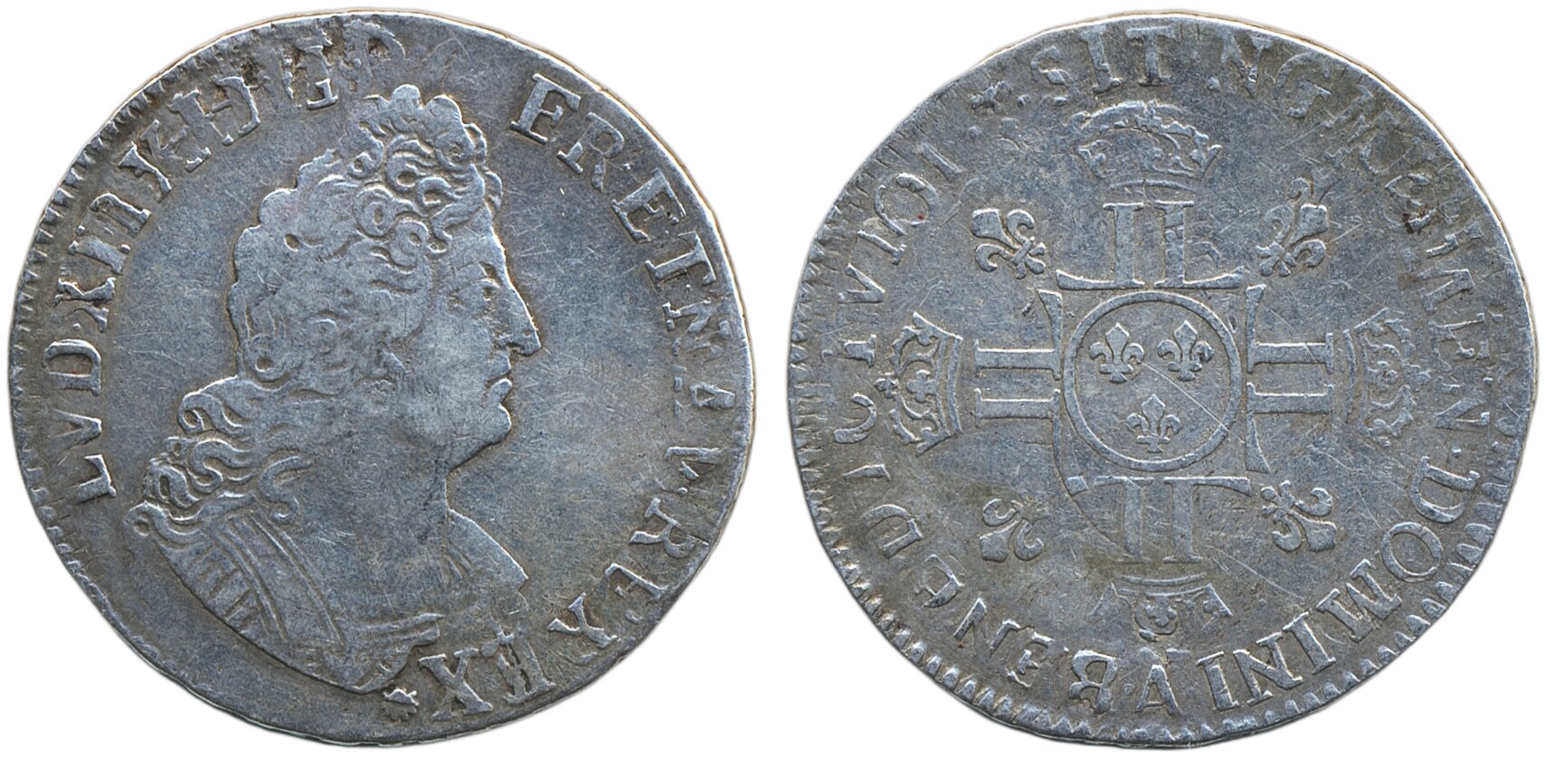Coins, France. Louis XIV, KM 355.1, ½ ecu ND (1704-05). 13.48 g. Paris mint. Cleaned. Date not clear. F.