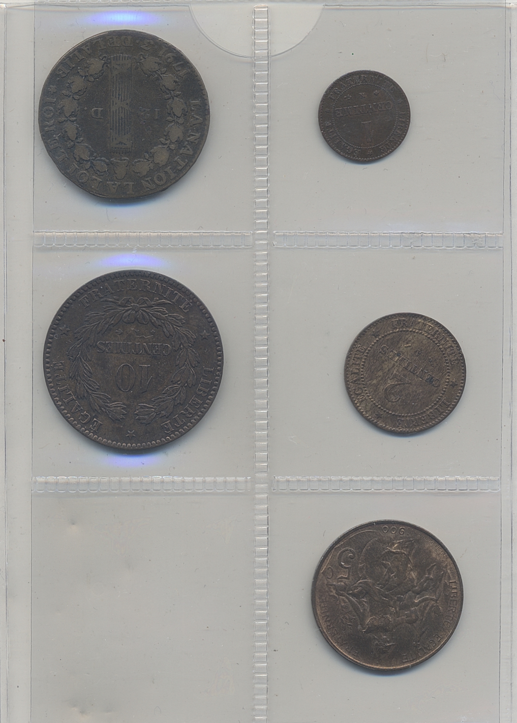 Coins, France. Small lot of mostly high grade copper coins. Please inspect! F-XF/UNC.