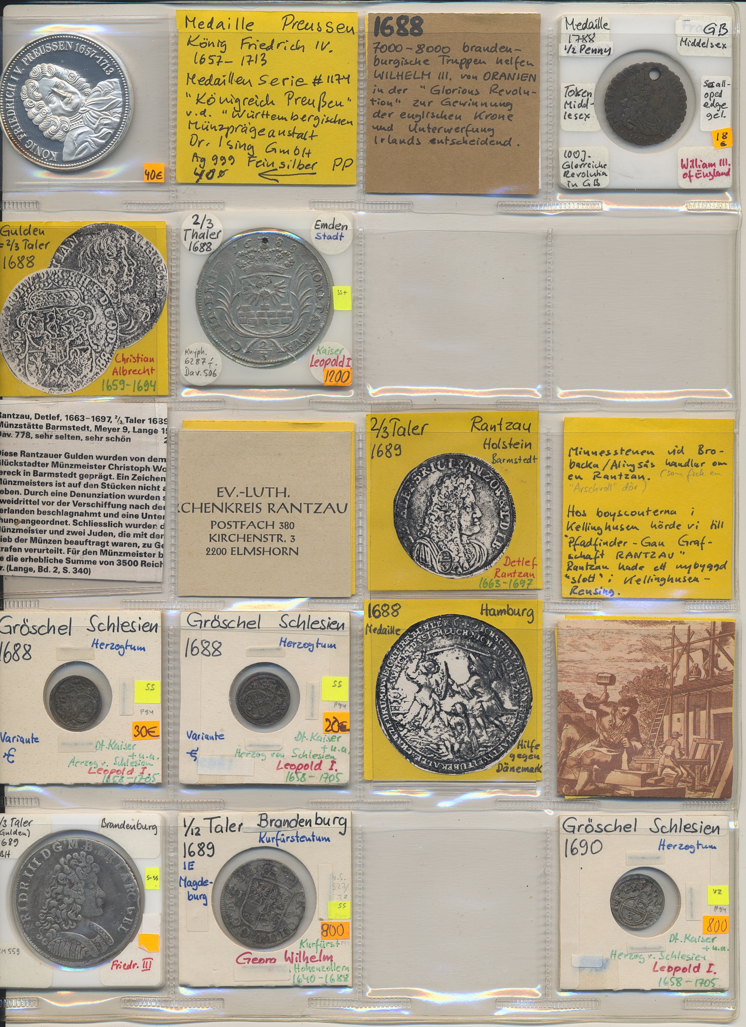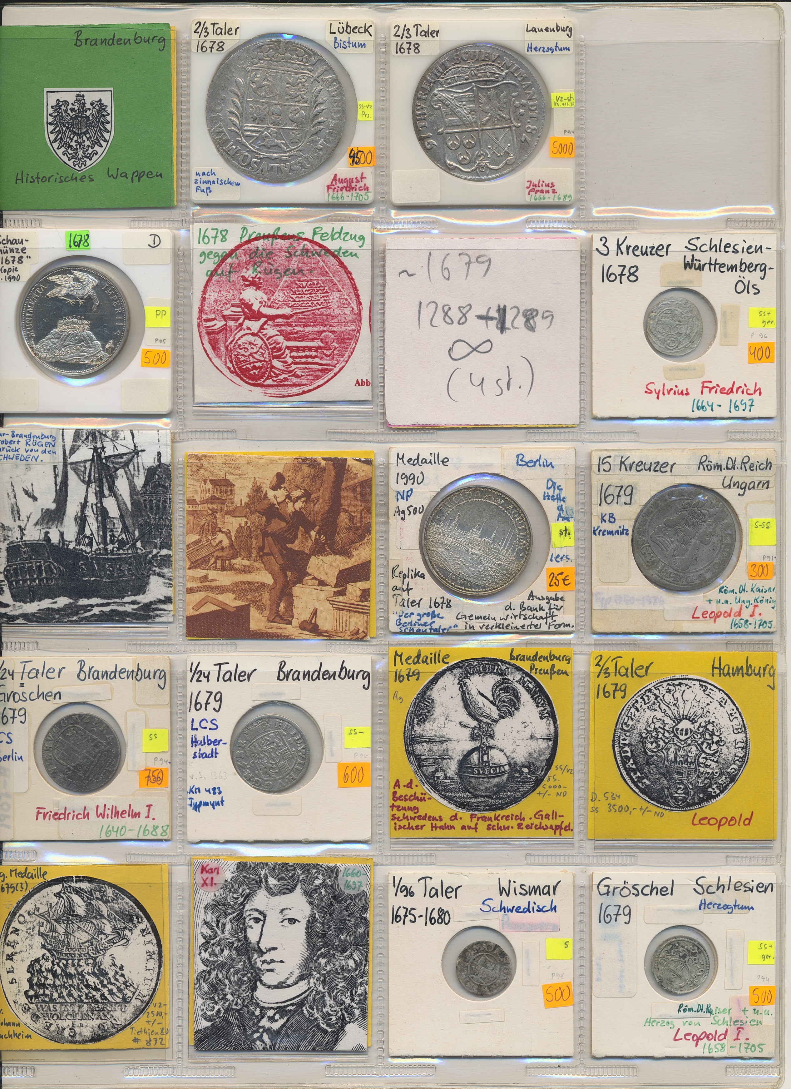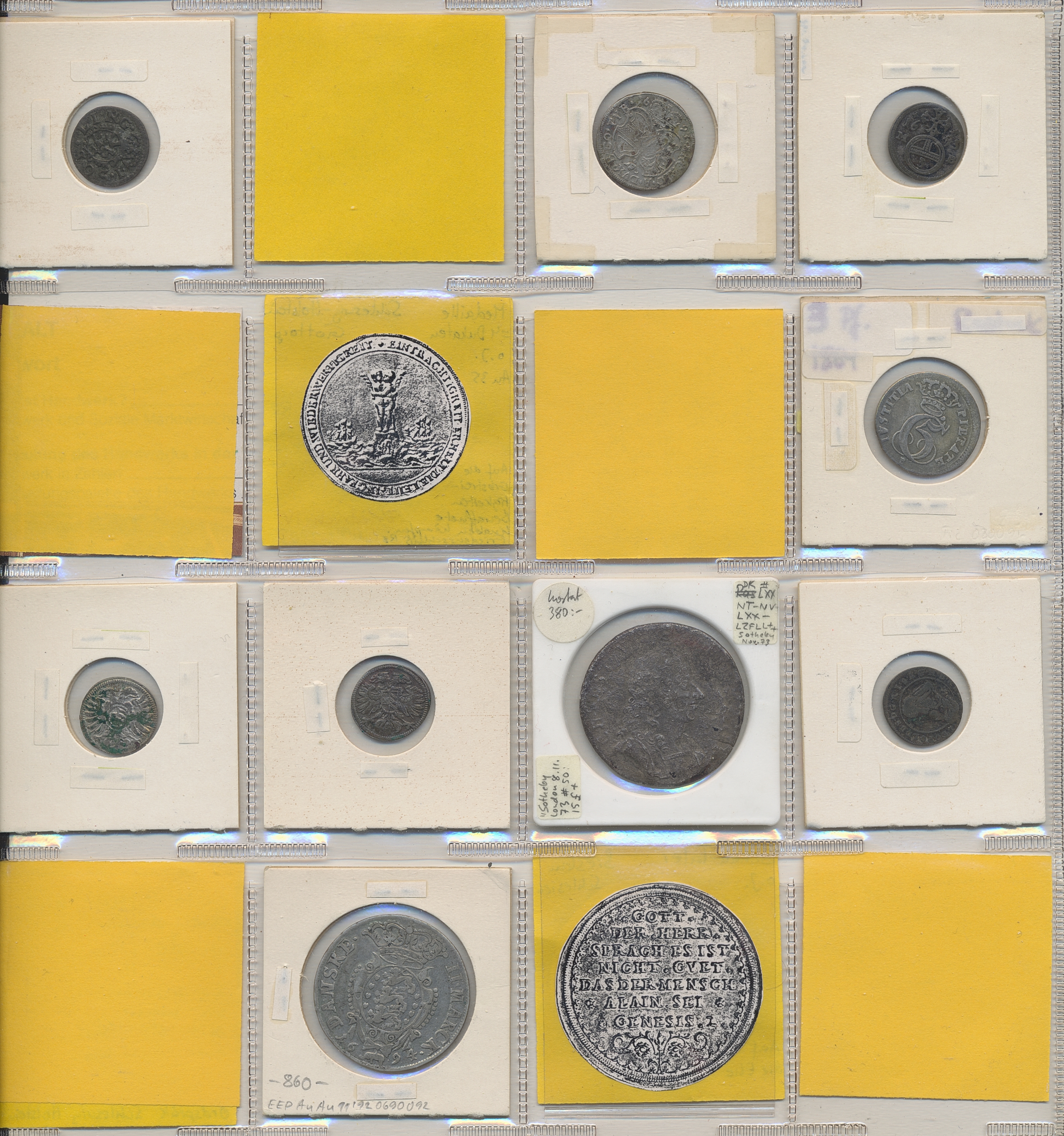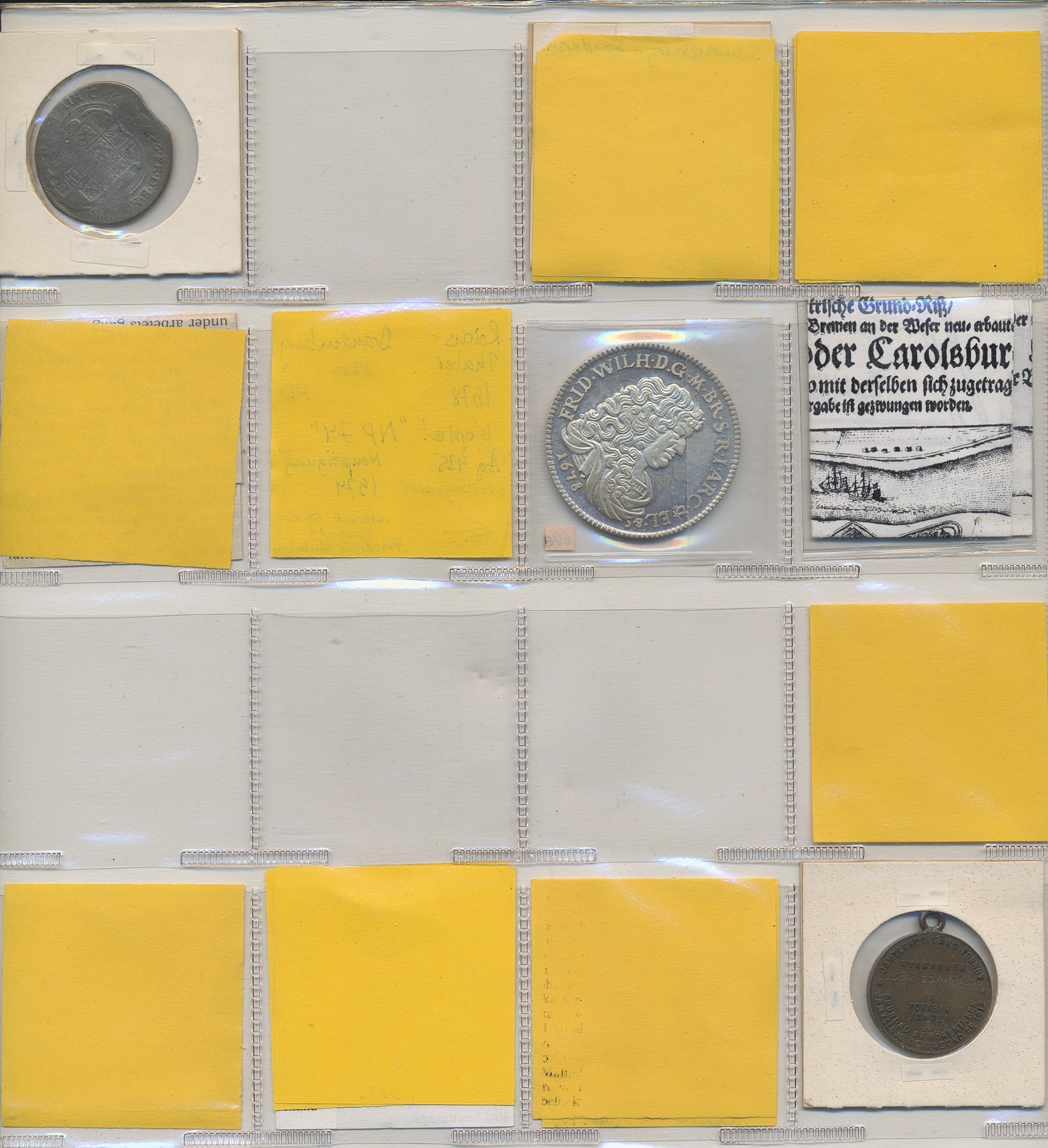 Coins, Germany, mixed. Collection of medals and coins including many in silver from ca. 1600s–1800s including taler sized coins. Most items are from Germany or related to Germany – Scandinavian also noted. Please inspect! VG-XF/UNC.