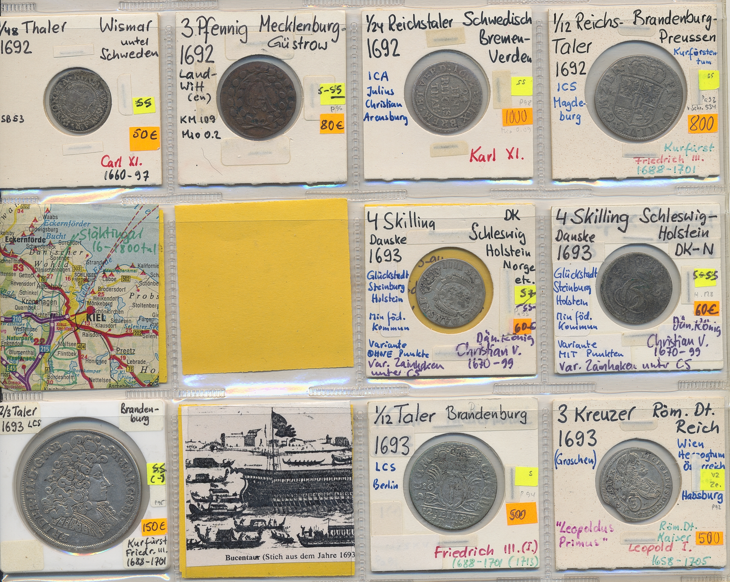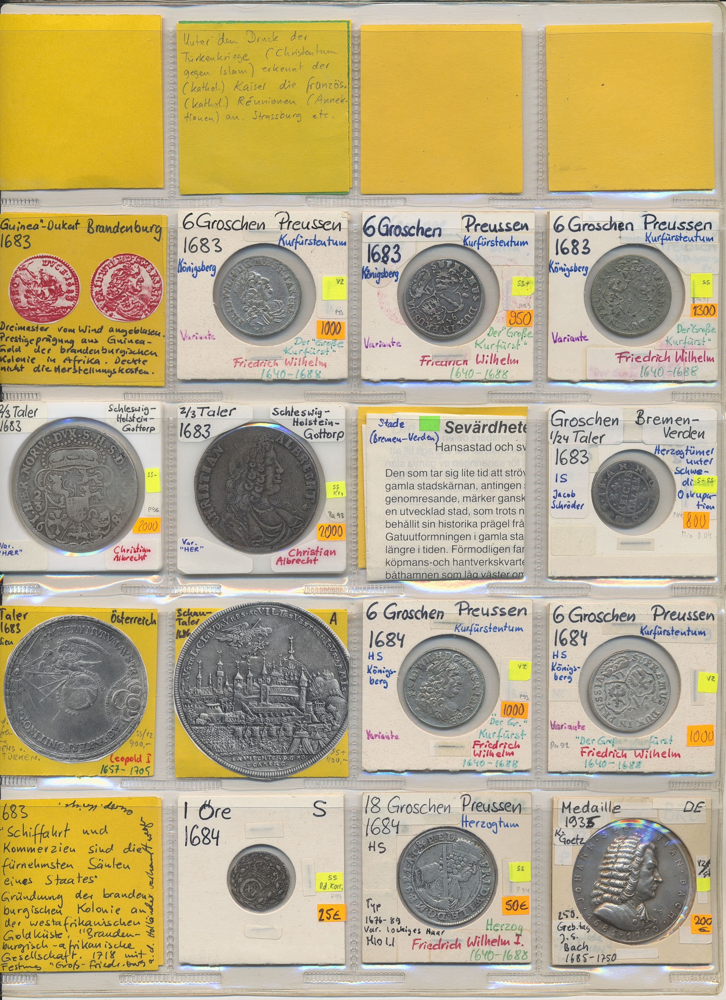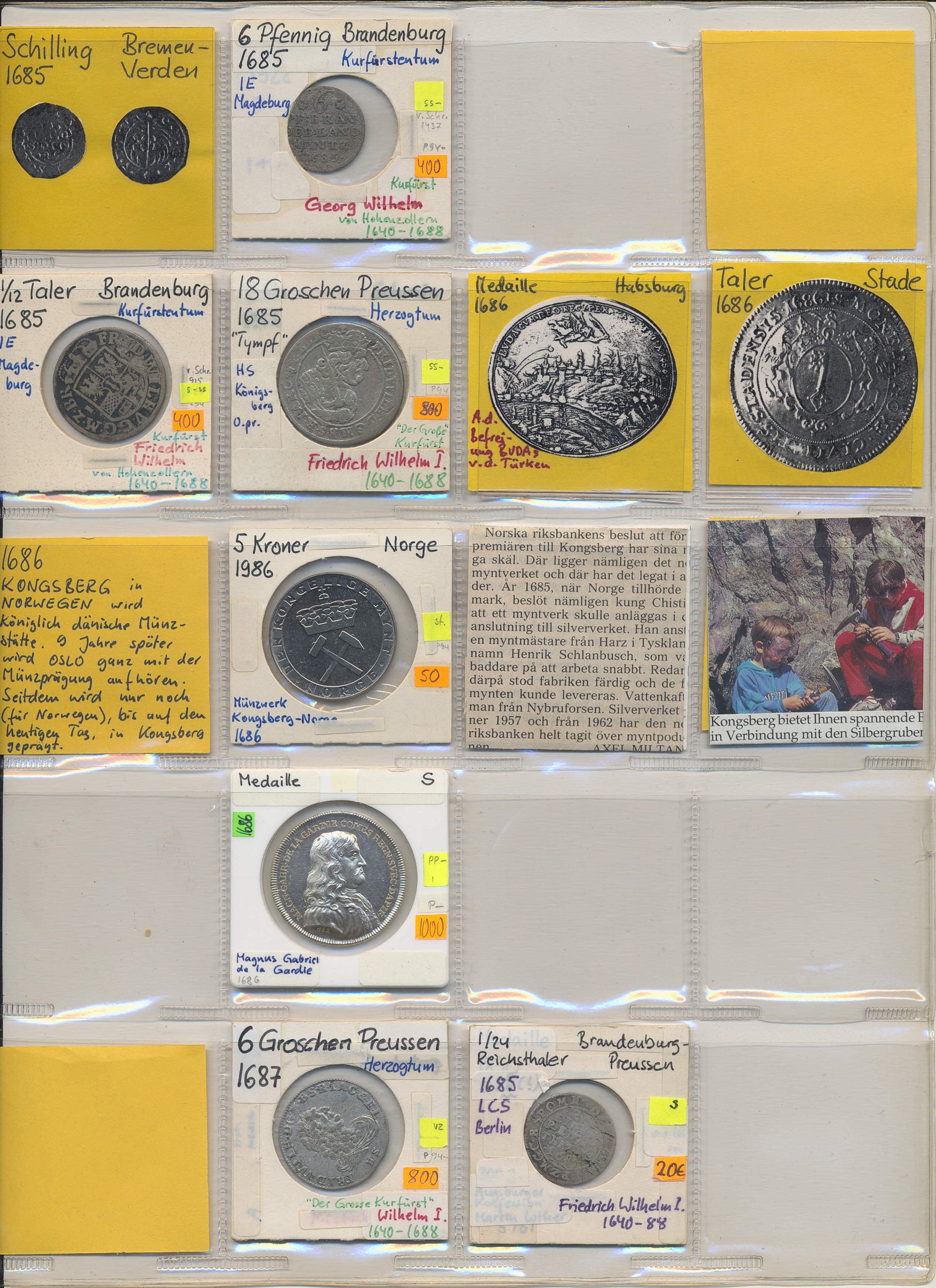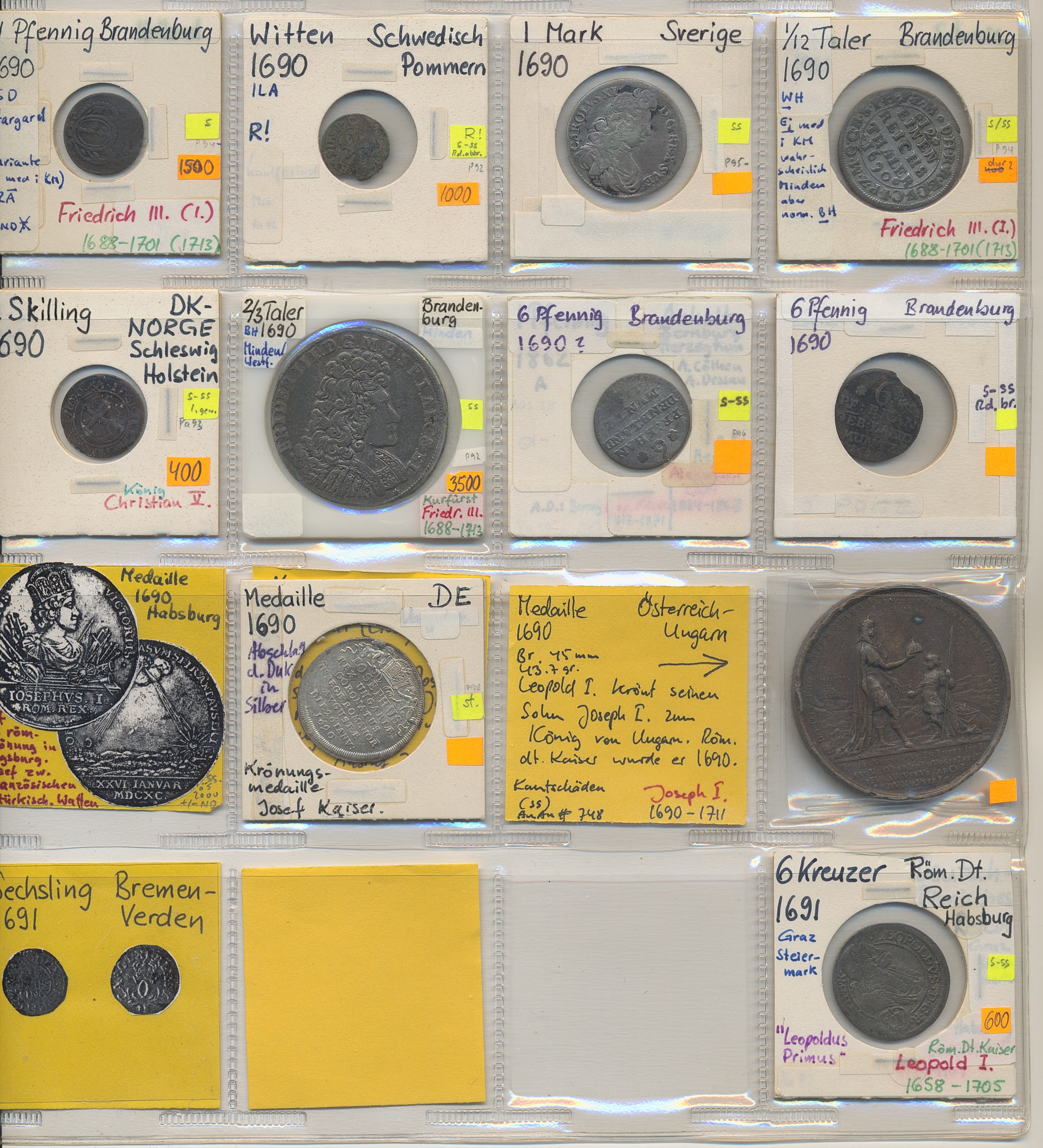 Coins, Germany, mixed. Collection of medals and coins including many in silver from ca. 1600s–1800s including taler sized coins. Most items are from Germany or related to Germany – Scandinavian also noted. Please inspect! VG-XF/UNC.